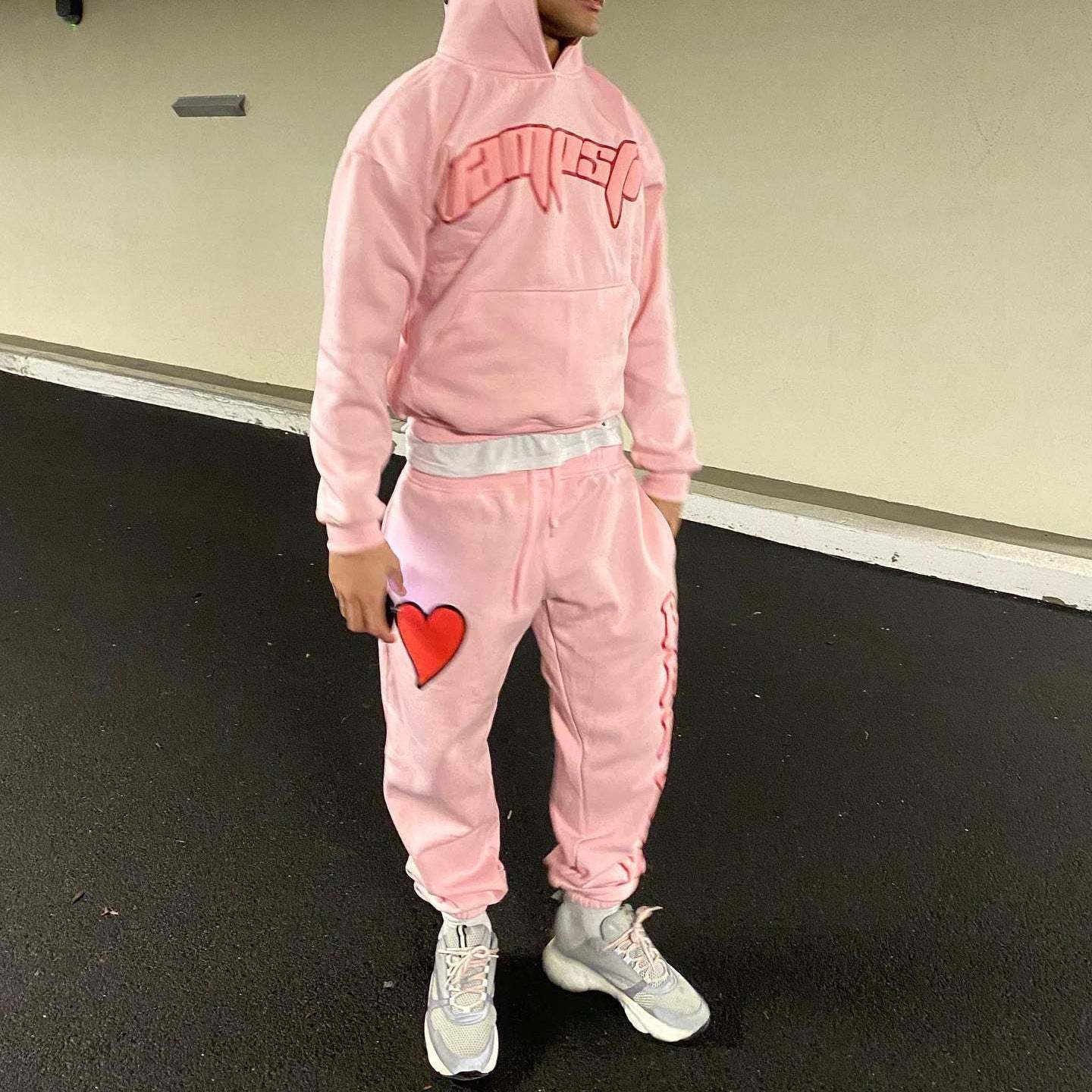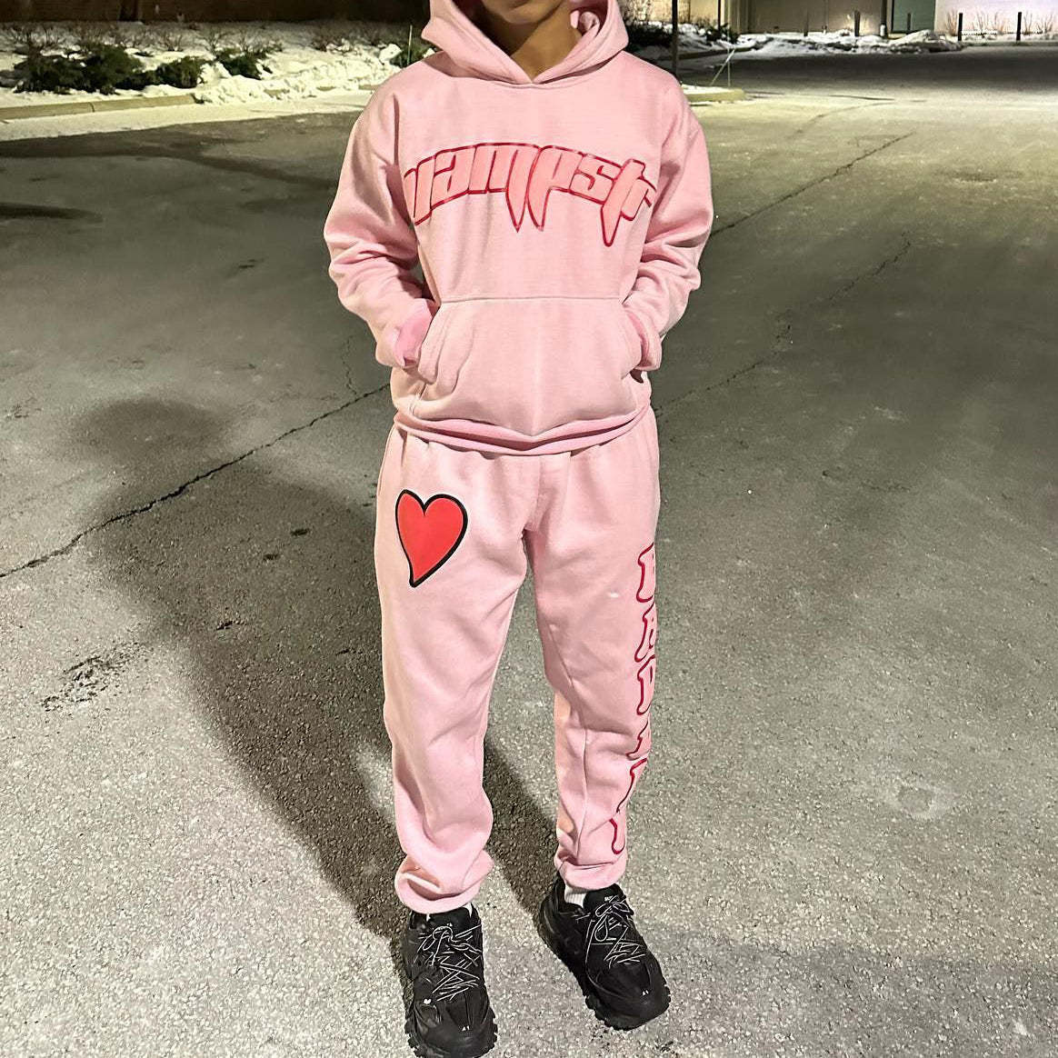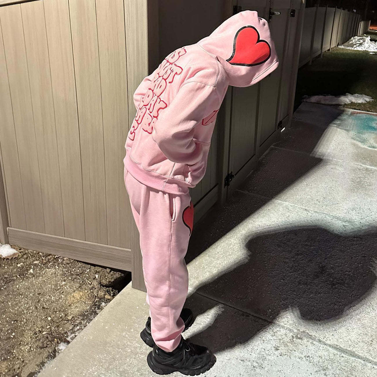 Letter Heart Print Hoodie Sweatpants Two Piece Set