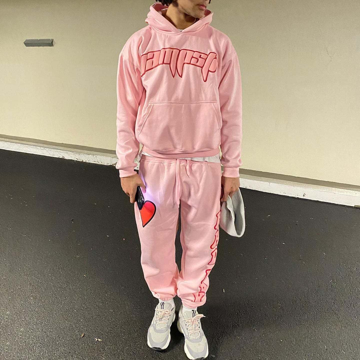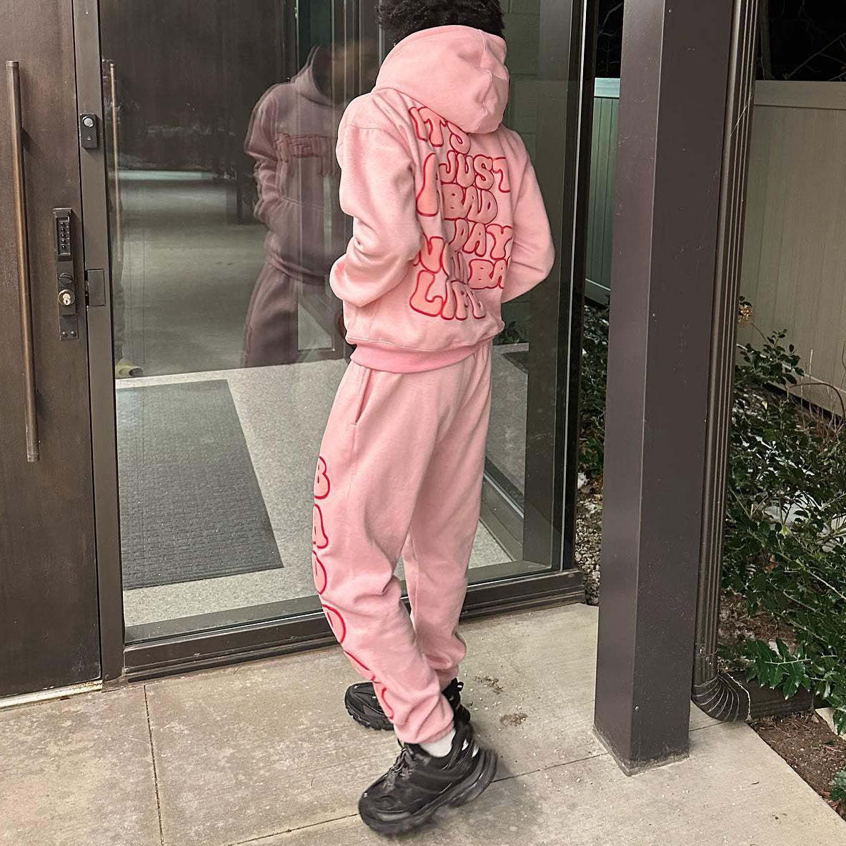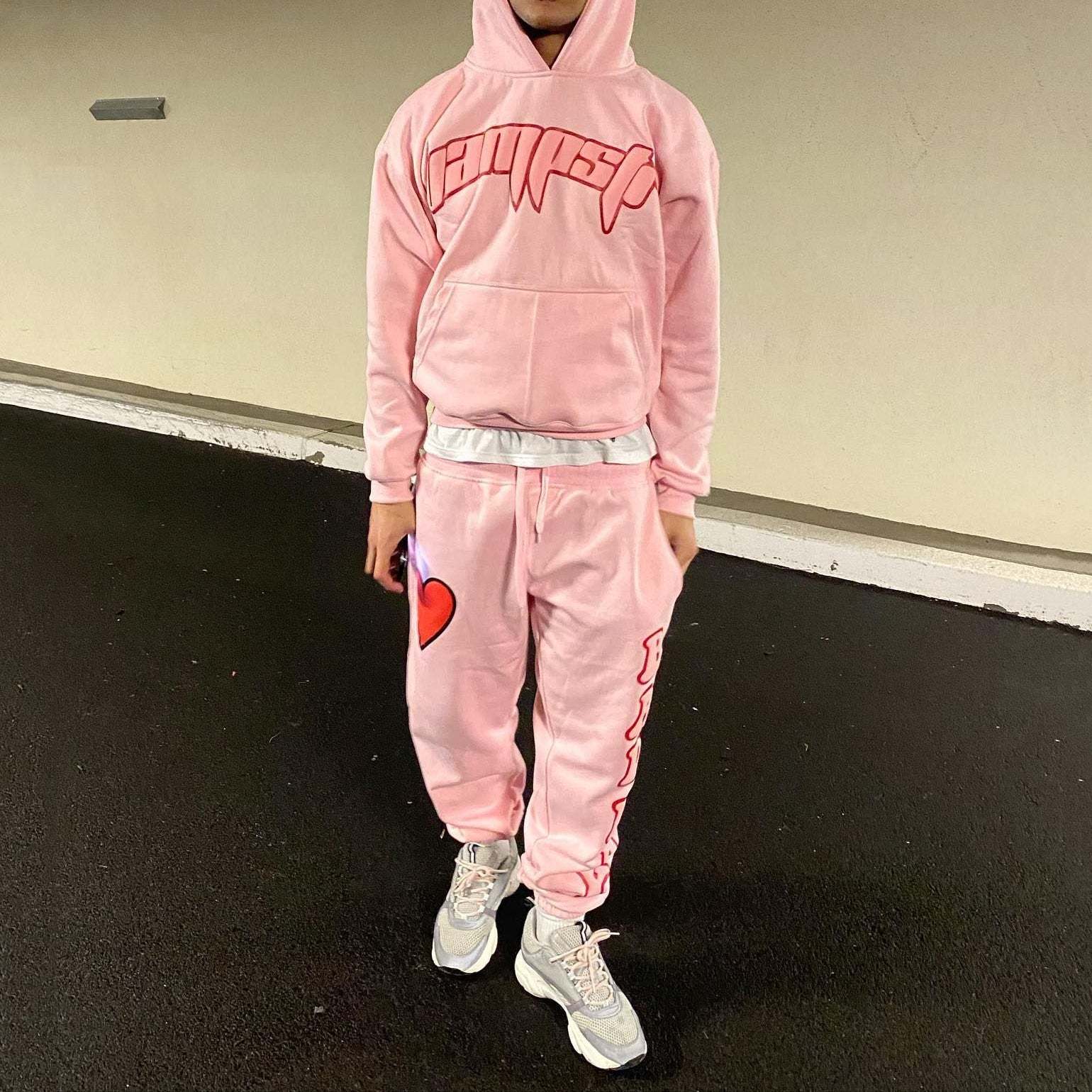 Letter Heart Print Hoodie Sweatpants Two Piece Set