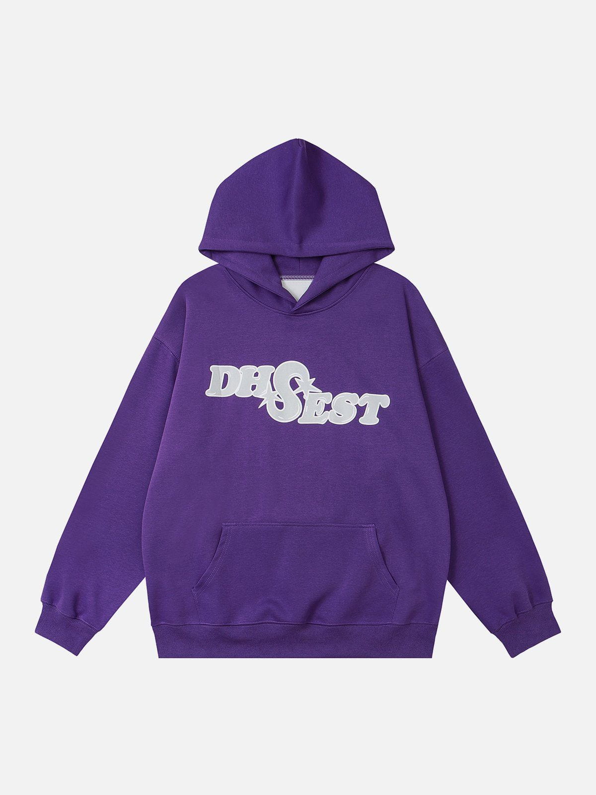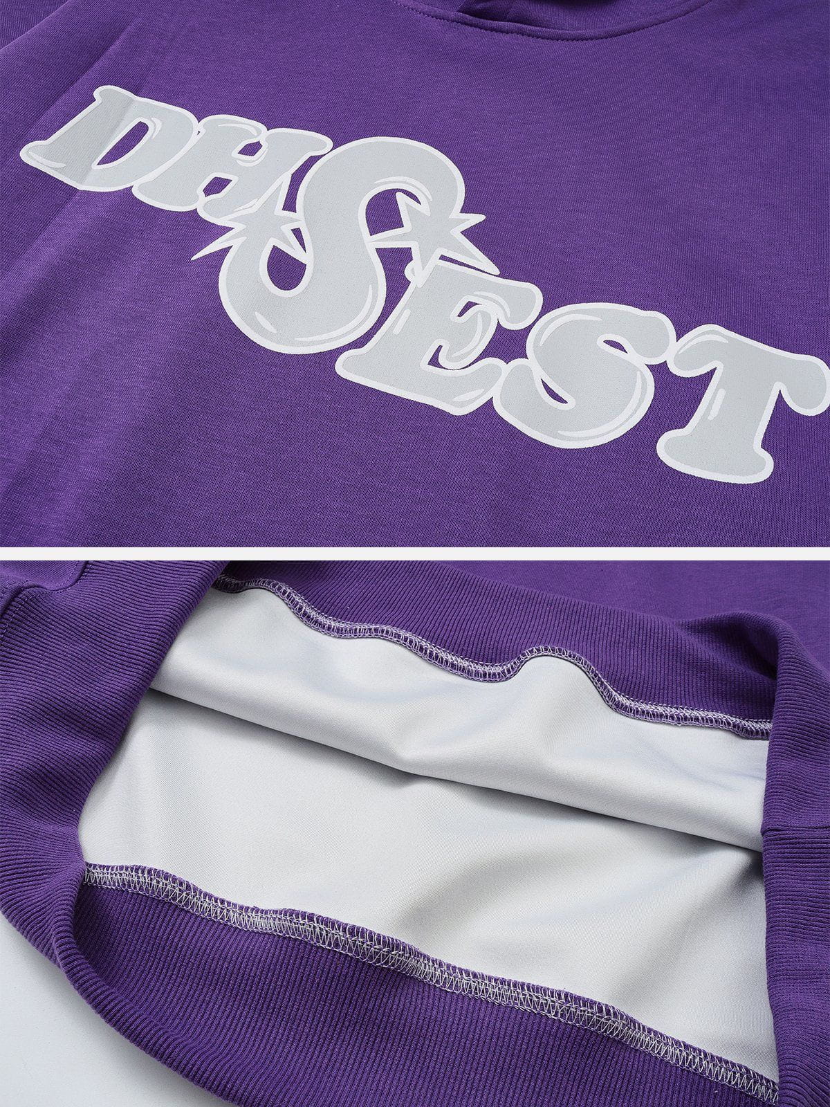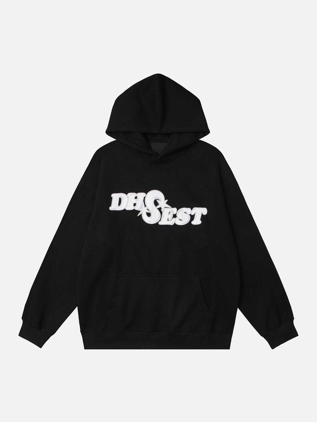 The striking letters "DHSEST" in a standout plastic solvent print, instantly draw attention and add a touch of urban style. A single "S" is on the back, accentuated with star details at both ends, creating a visually striking and modern aesthetic.