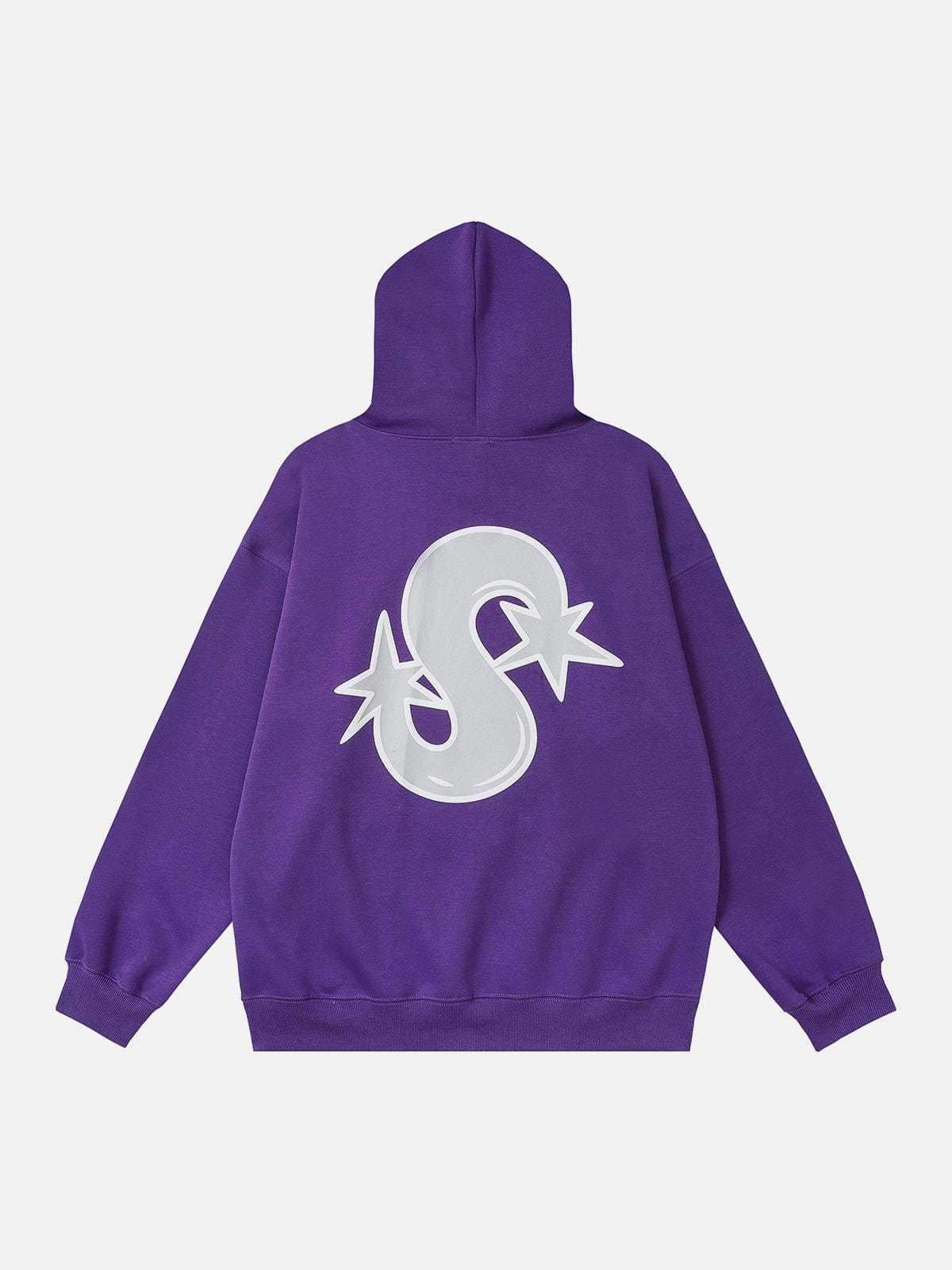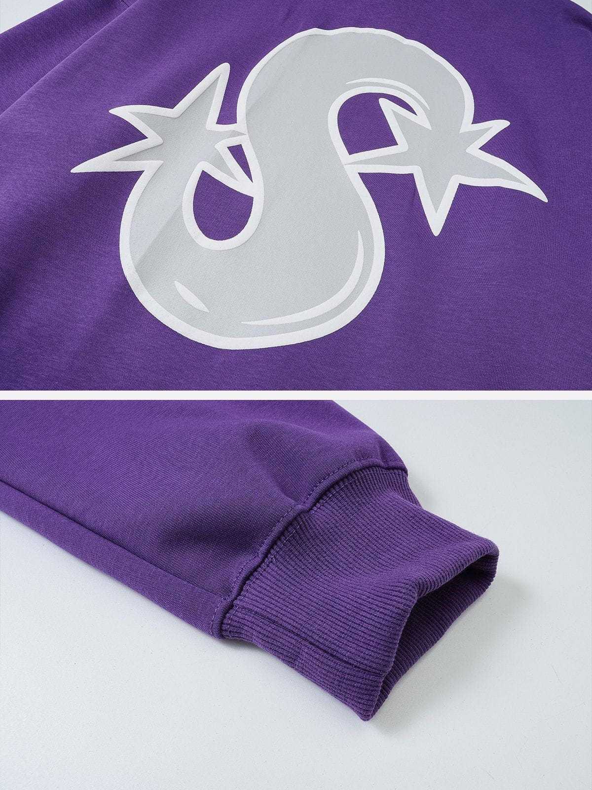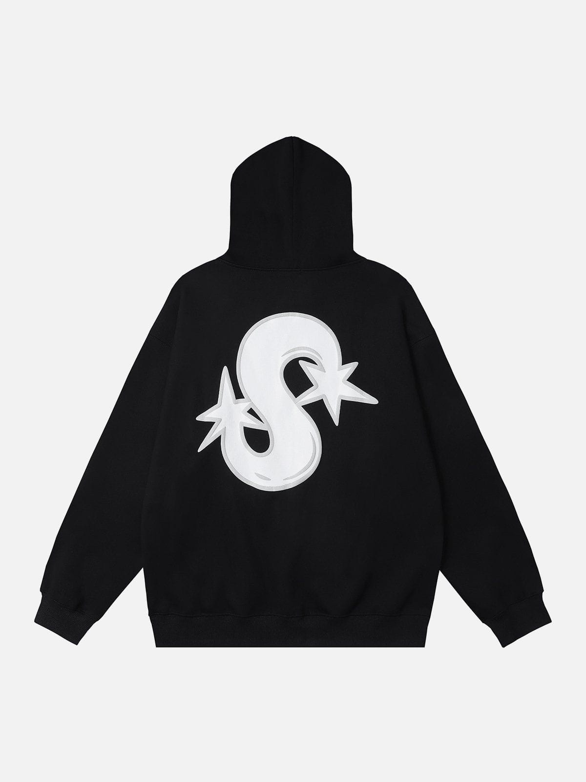 The striking letters "DHSEST" in a standout plastic solvent print, instantly draw attention and add a touch of urban style. A single "S" is on the back, accentuated with star details at both ends, creating a visually striking and modern aesthetic.