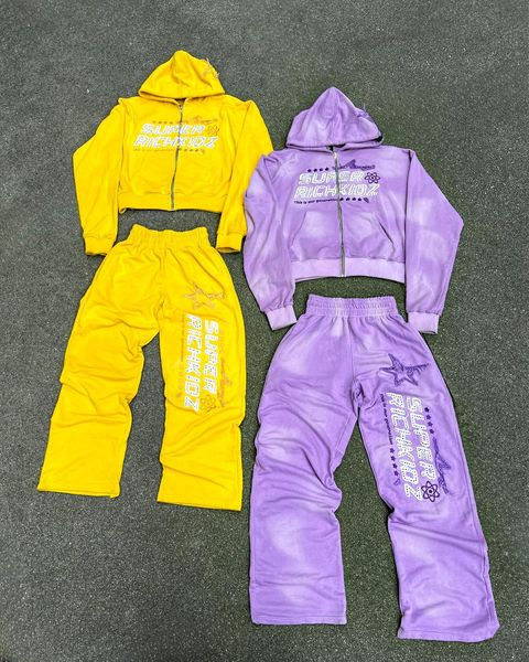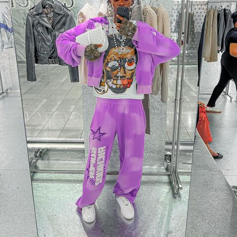 Lettering and Stars Print Gradient Hoodie Two-Piece Set