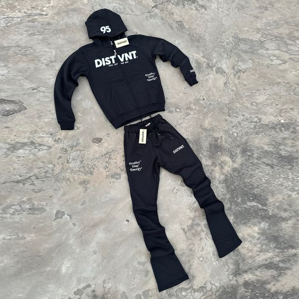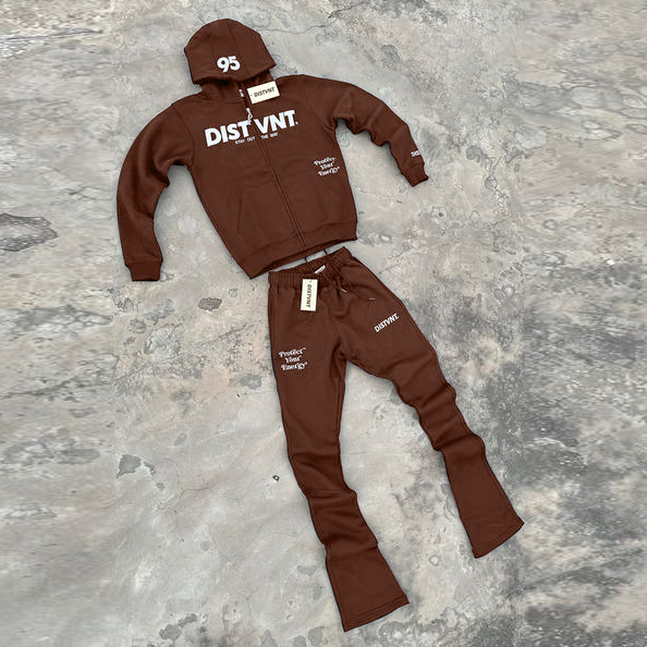 Lettering Print Zip-Up Hoodie Set