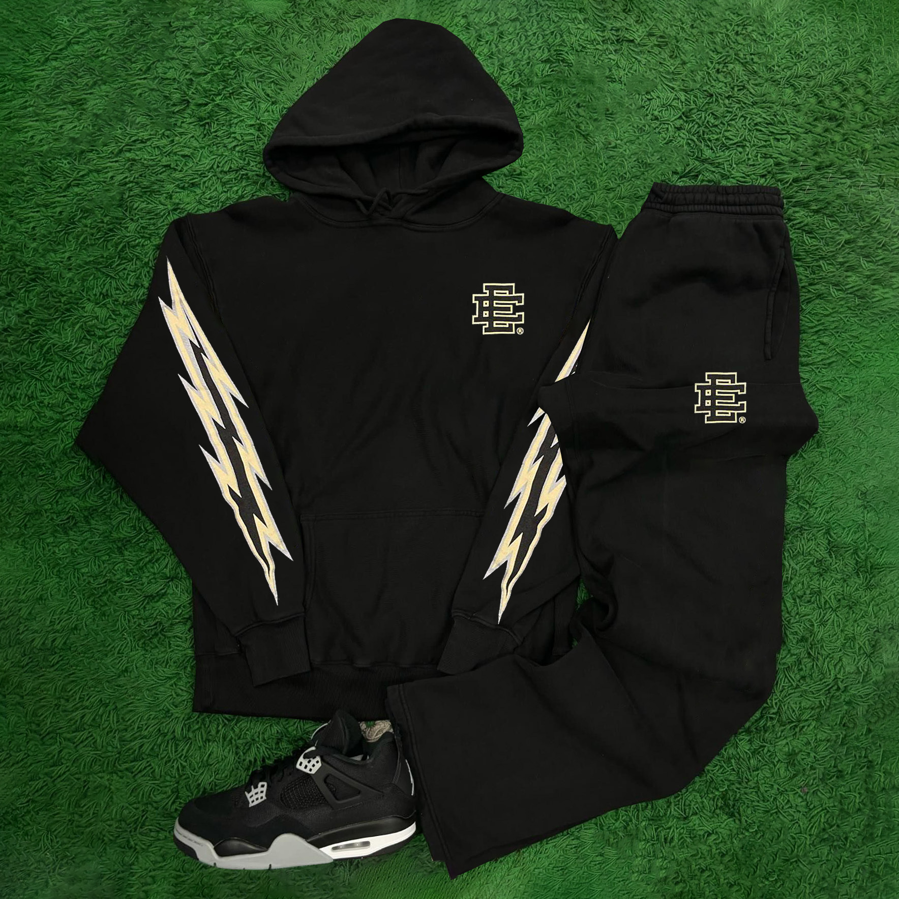 Lightning Word Print Two Piece Hoodie Set