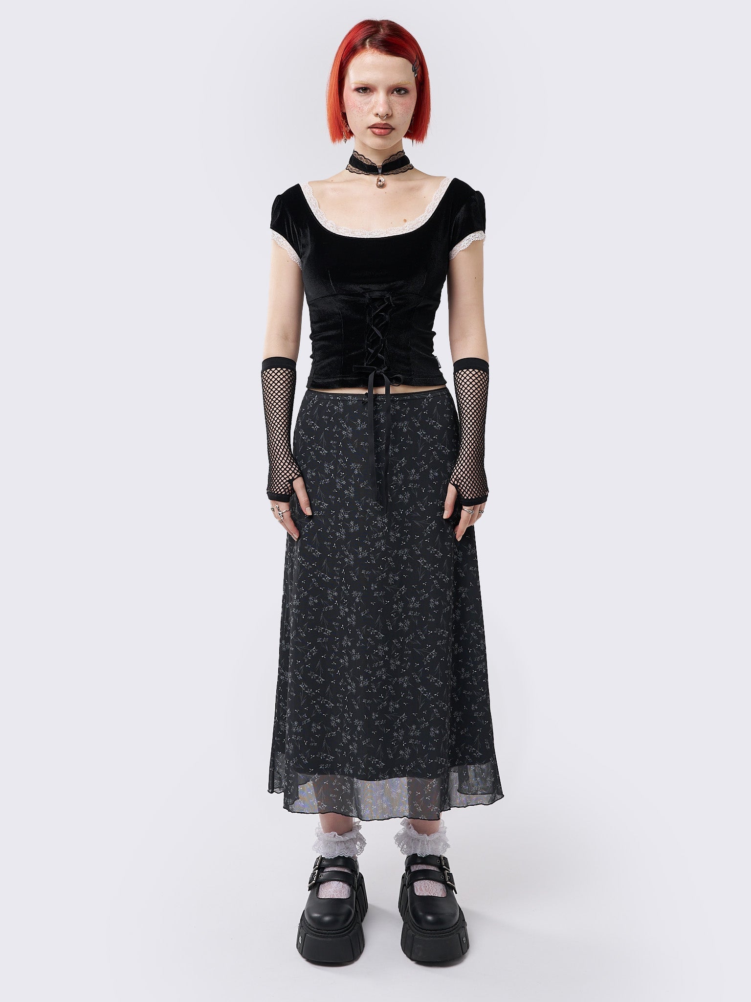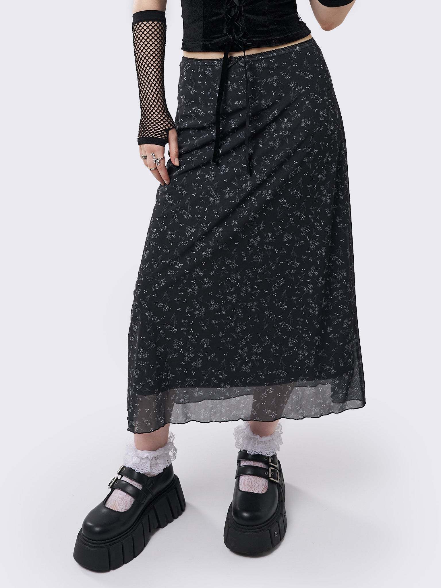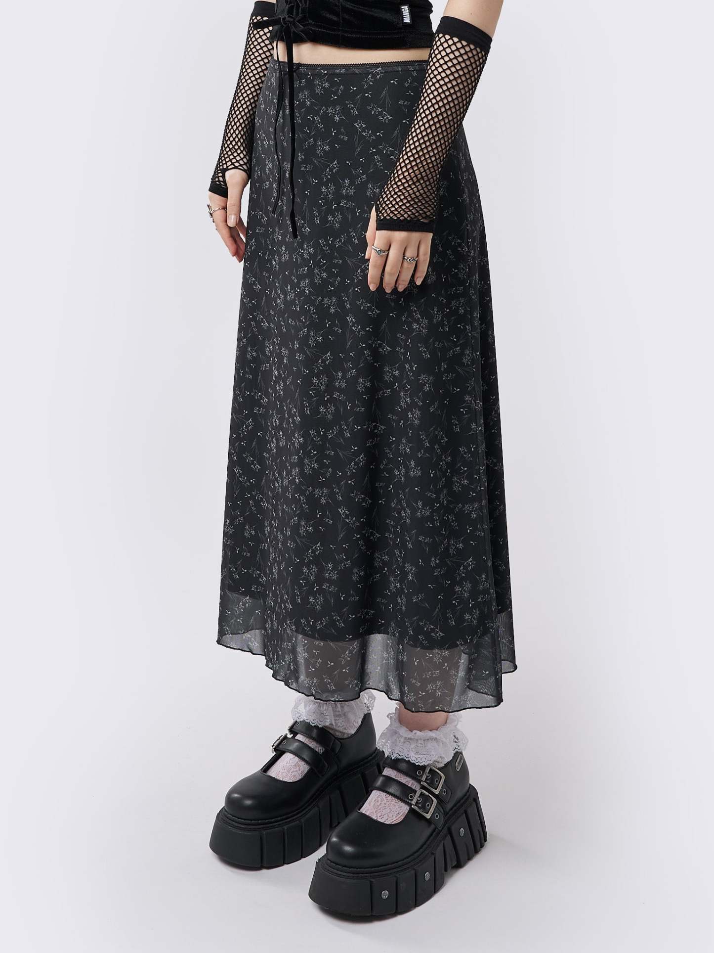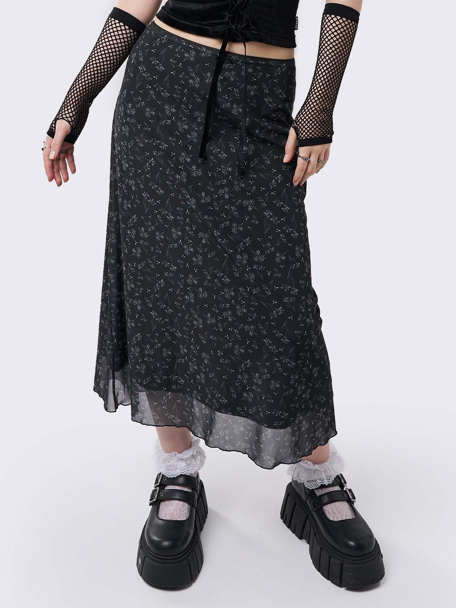 Lila Floral Print Midi Skirt