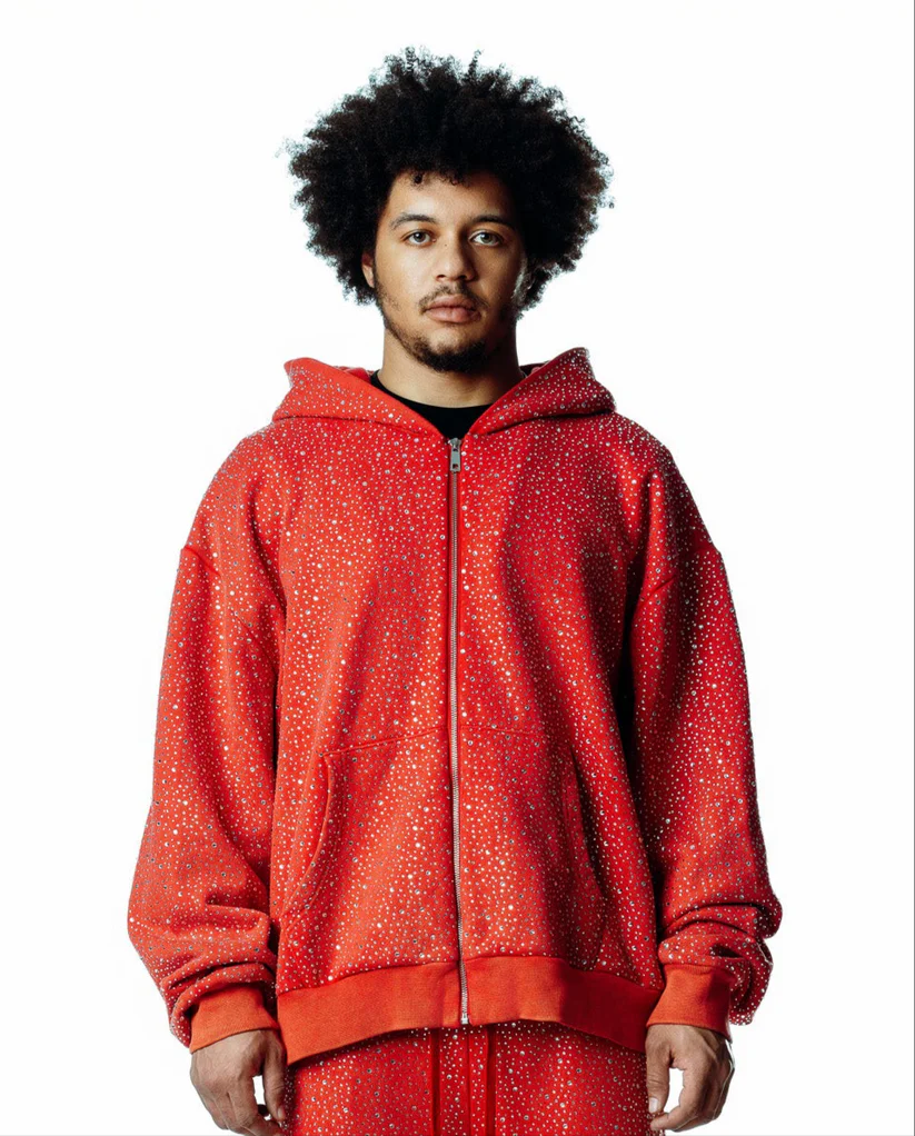 Hell-Level Handmade Diamond Zipper Hoodie