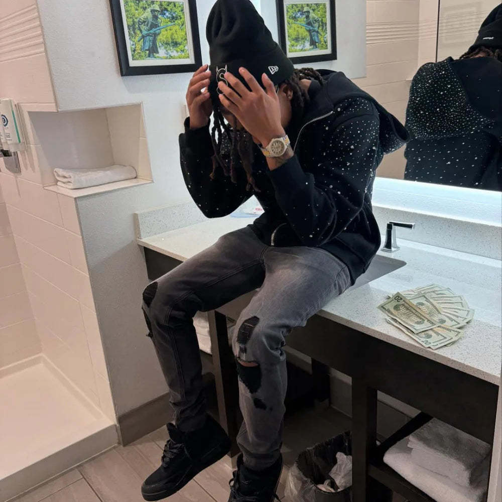 Rhinestone All Over Zip Up