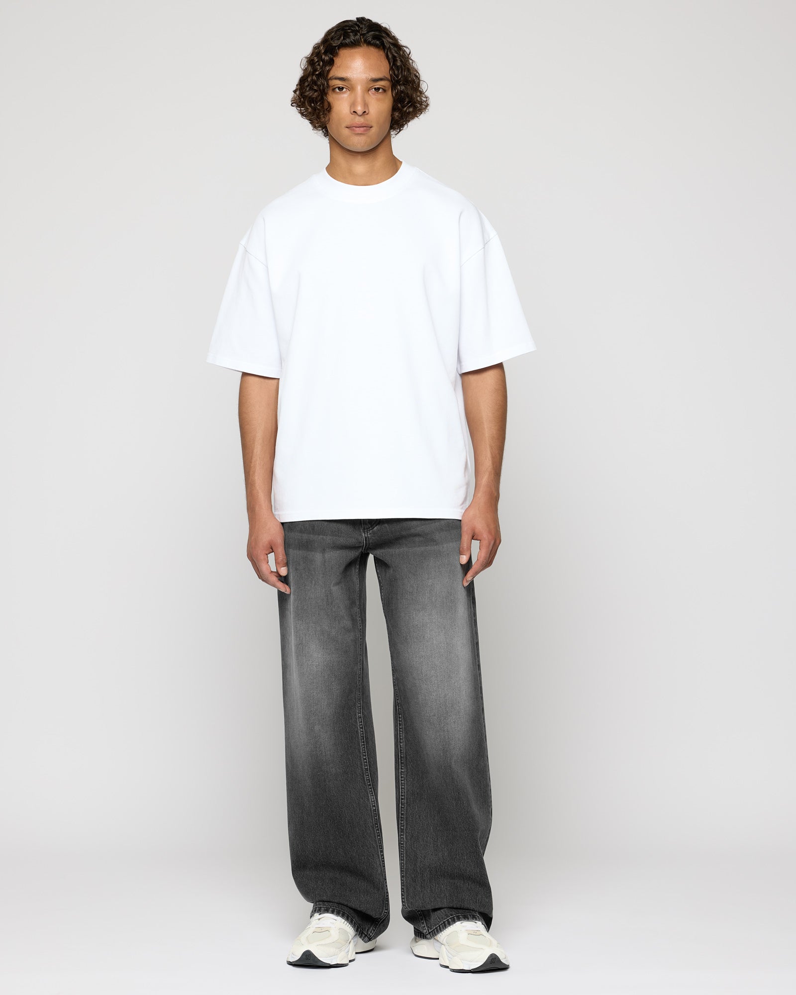 The model is 186 cm tall, weighs 70 kg and wears size 31