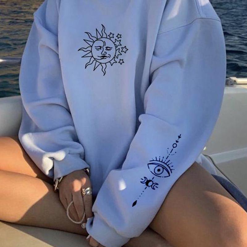 Loose Celestial Sun Moon Print Sweatshirt