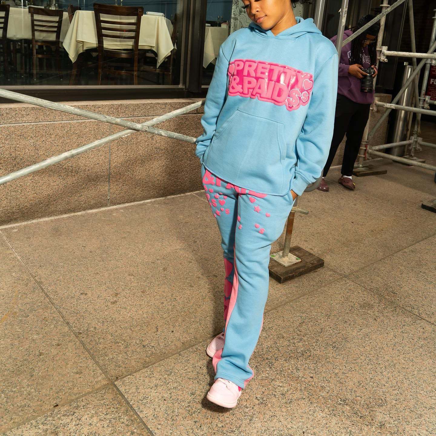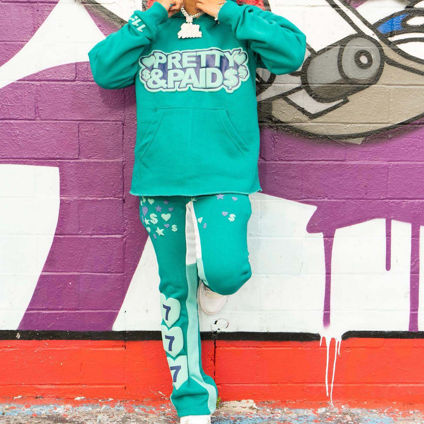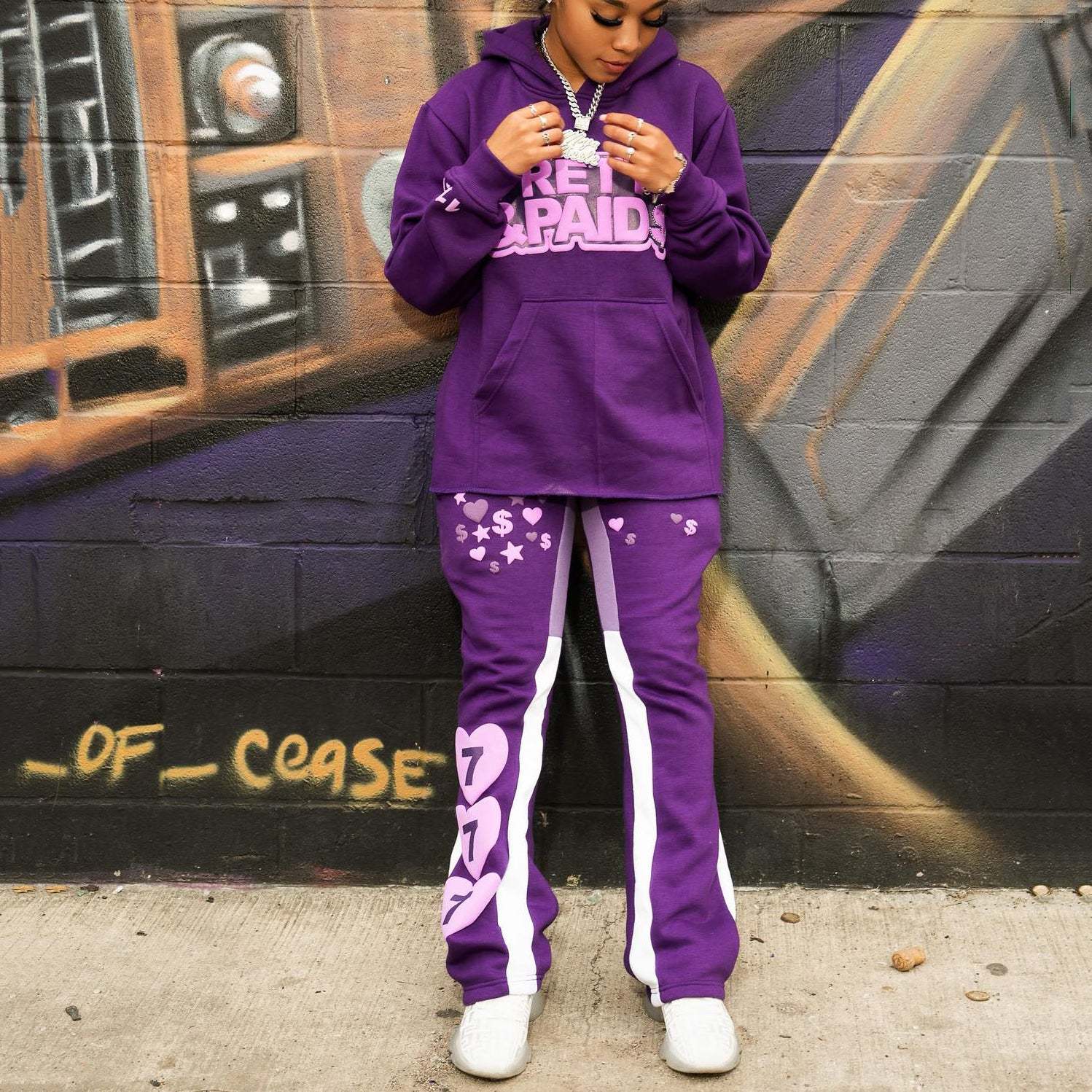 Love 777 casual street splicing trousers and hoodie two-piece suit