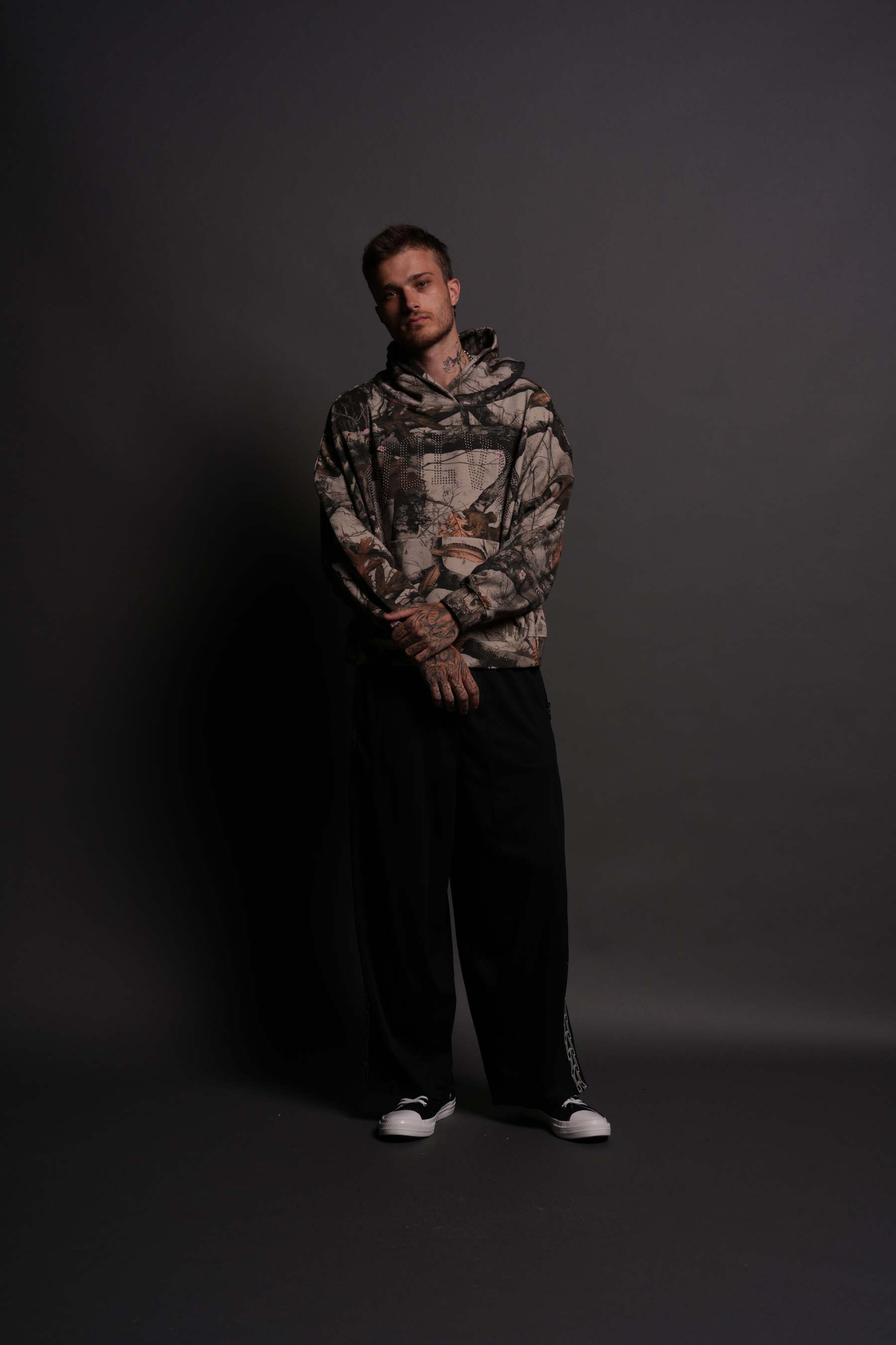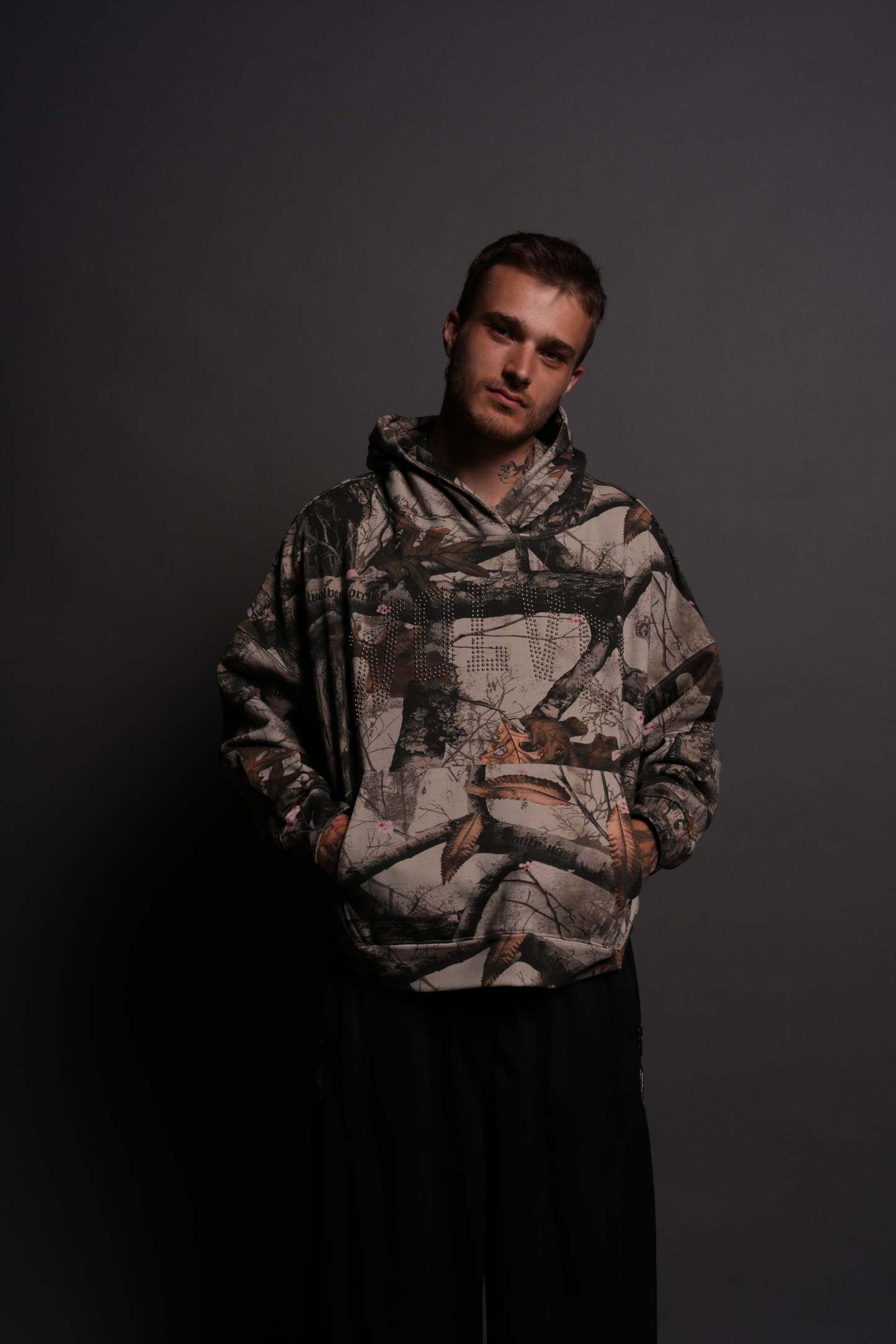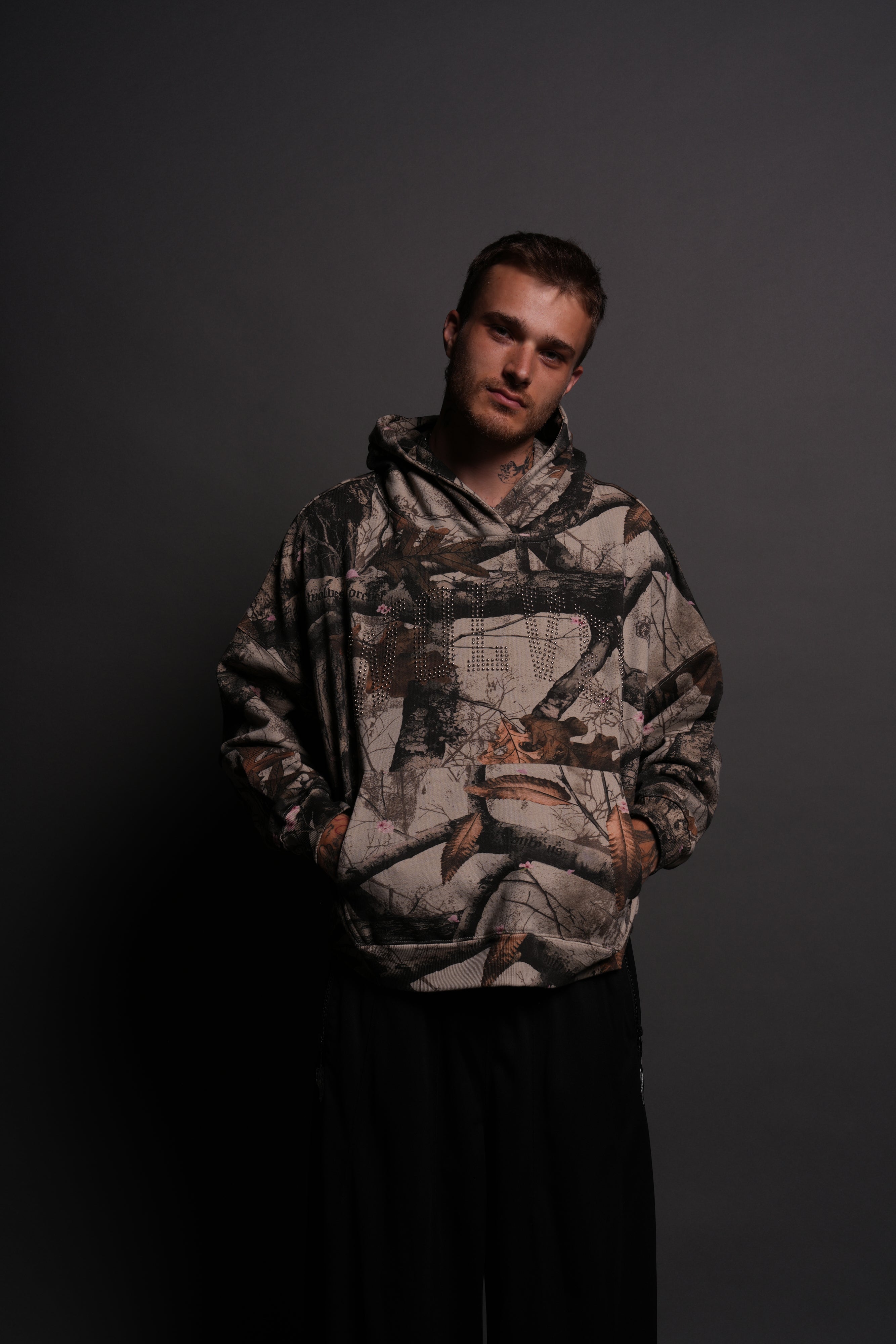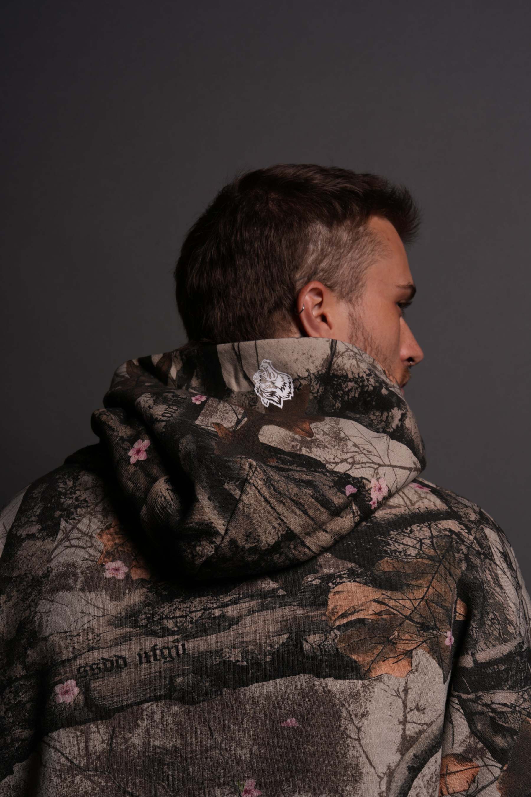 Loyalty Studded Grunge "Gage Box Cut" Hoodie in Cherry Blossom Woodland Camo