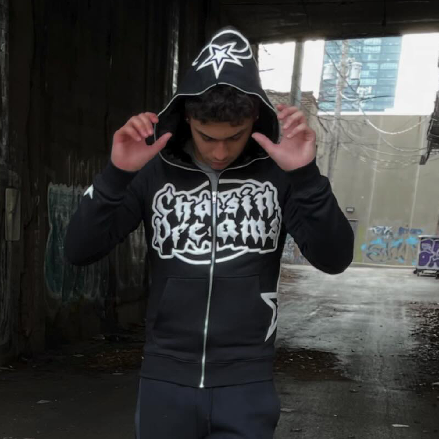 Lucky Star Puff Print full zip hoodie