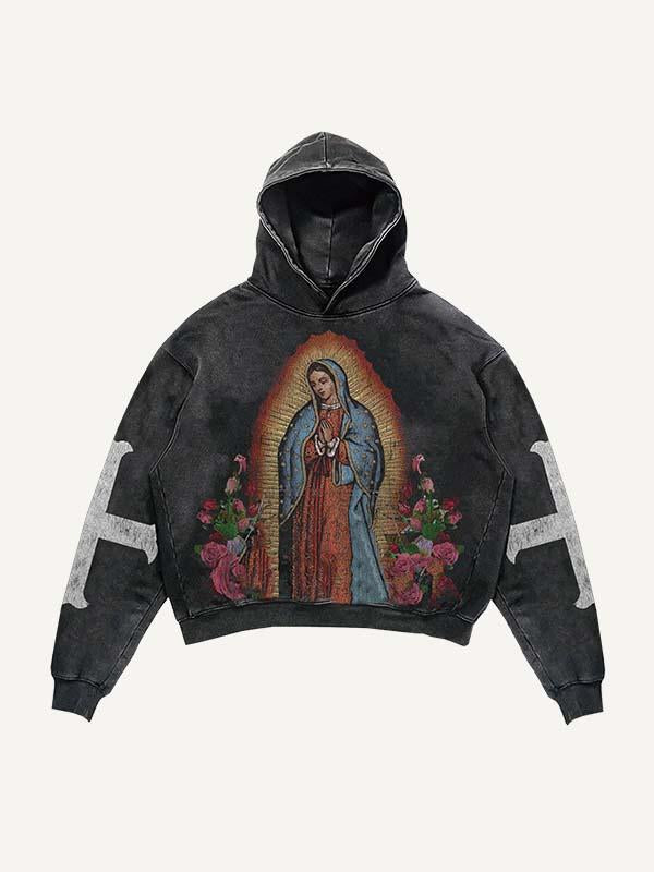 Mary&Cross&Floral&Letter Print Slant Pockets Hoodie