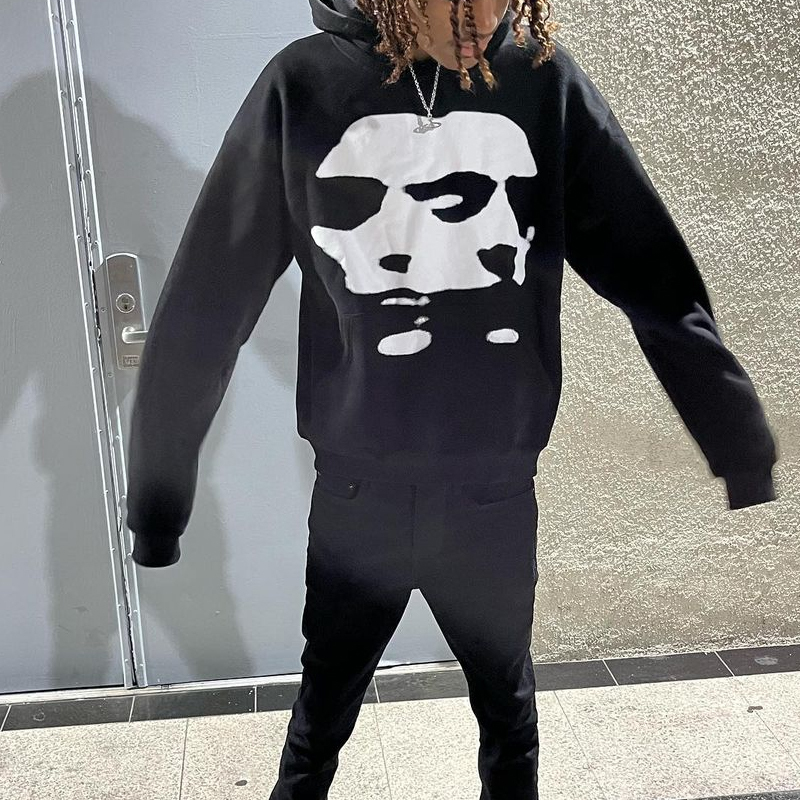 Scary Face Vintage Print Graphic Hoodie