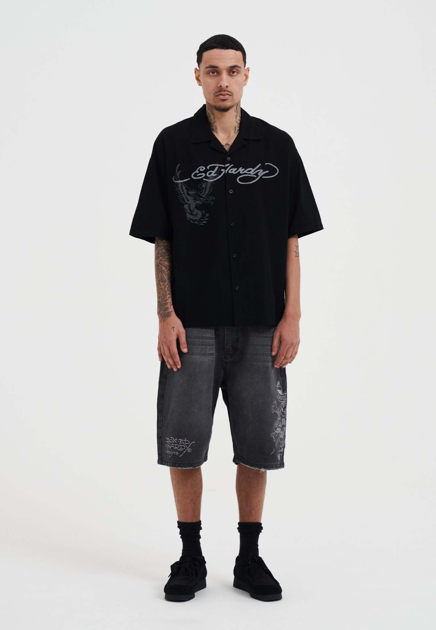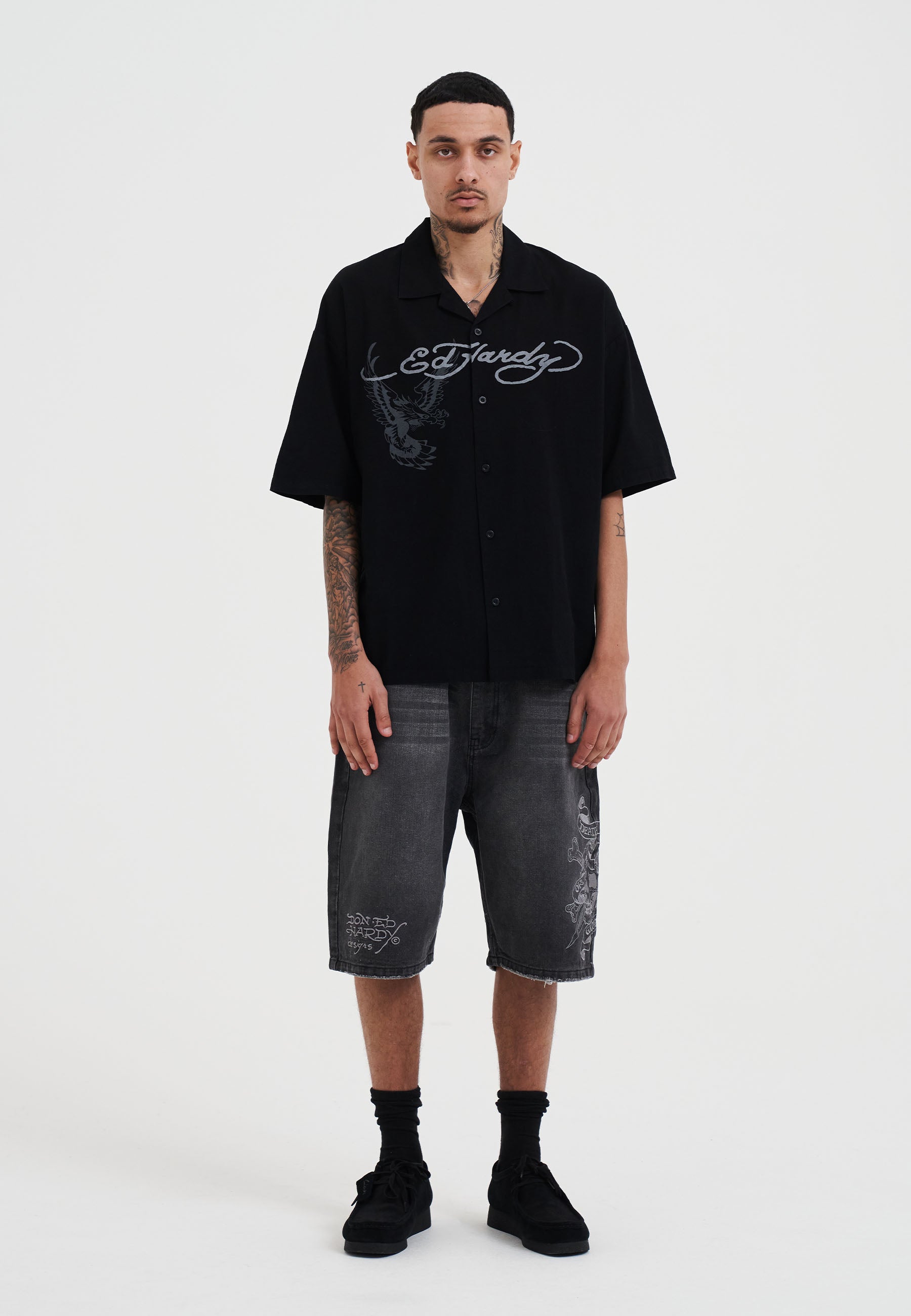 • Don Ed Hardy Designs logo embroidered on the front of the hem