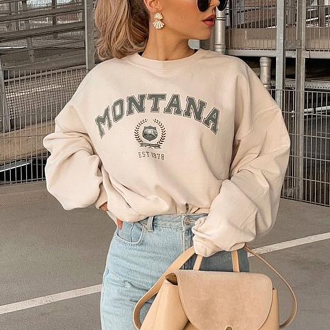 Montana Print Vintage Long Sleeve Casual Sweatshirt