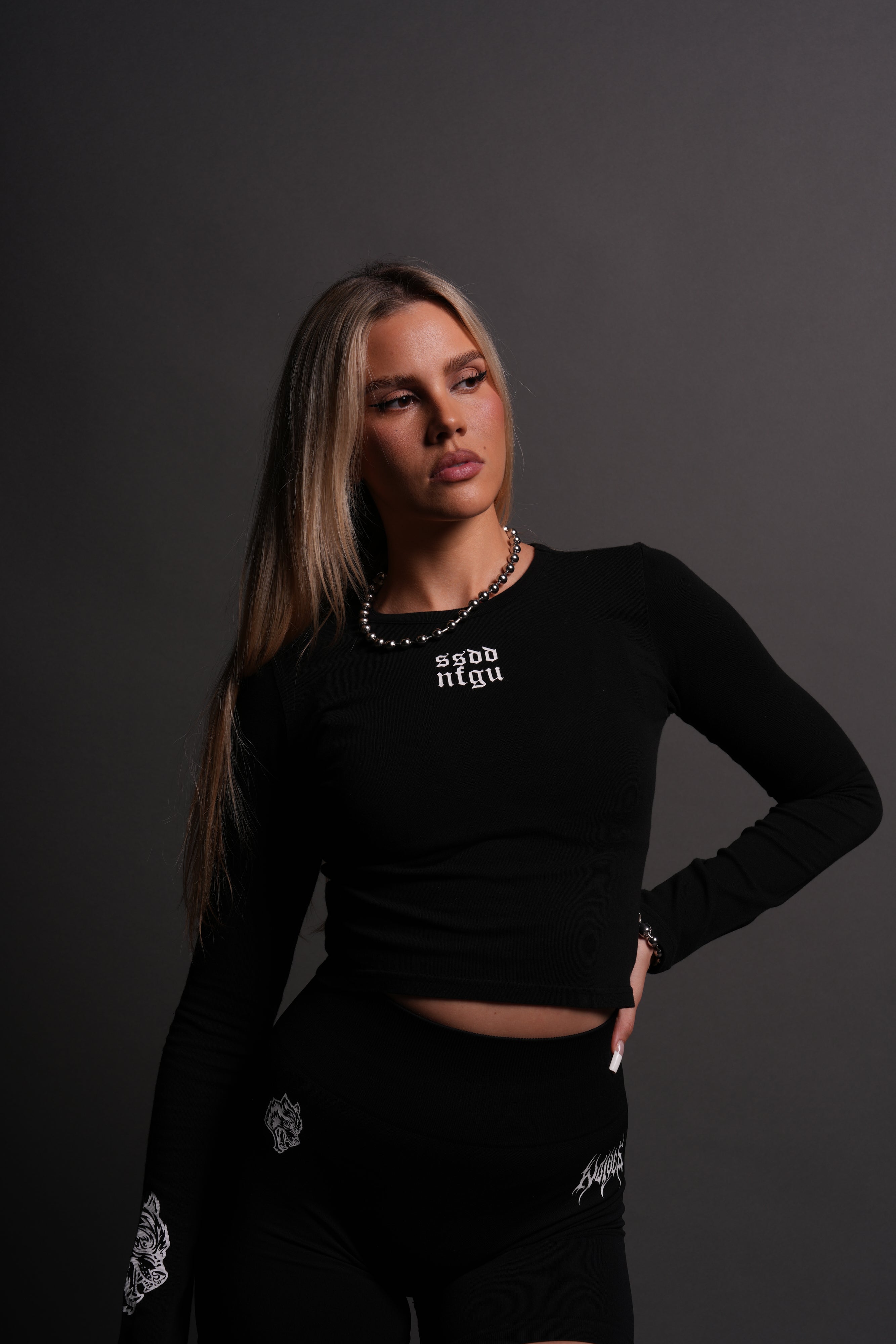 Moth Kanji L/S "Baby" Tee in Black