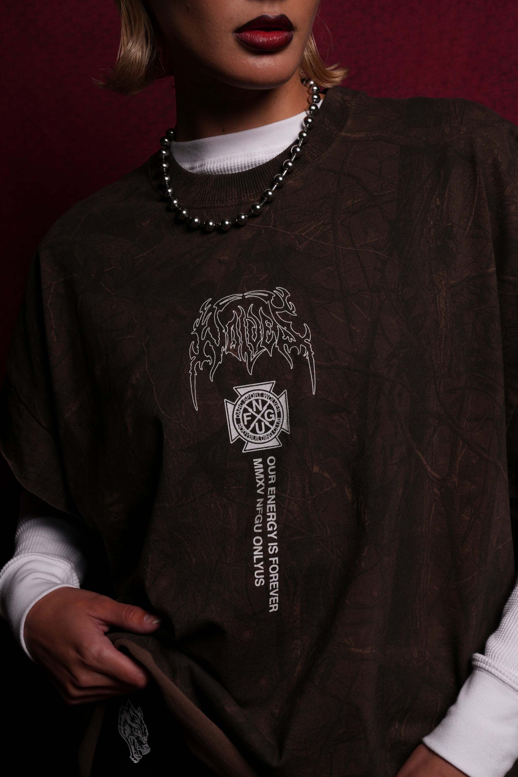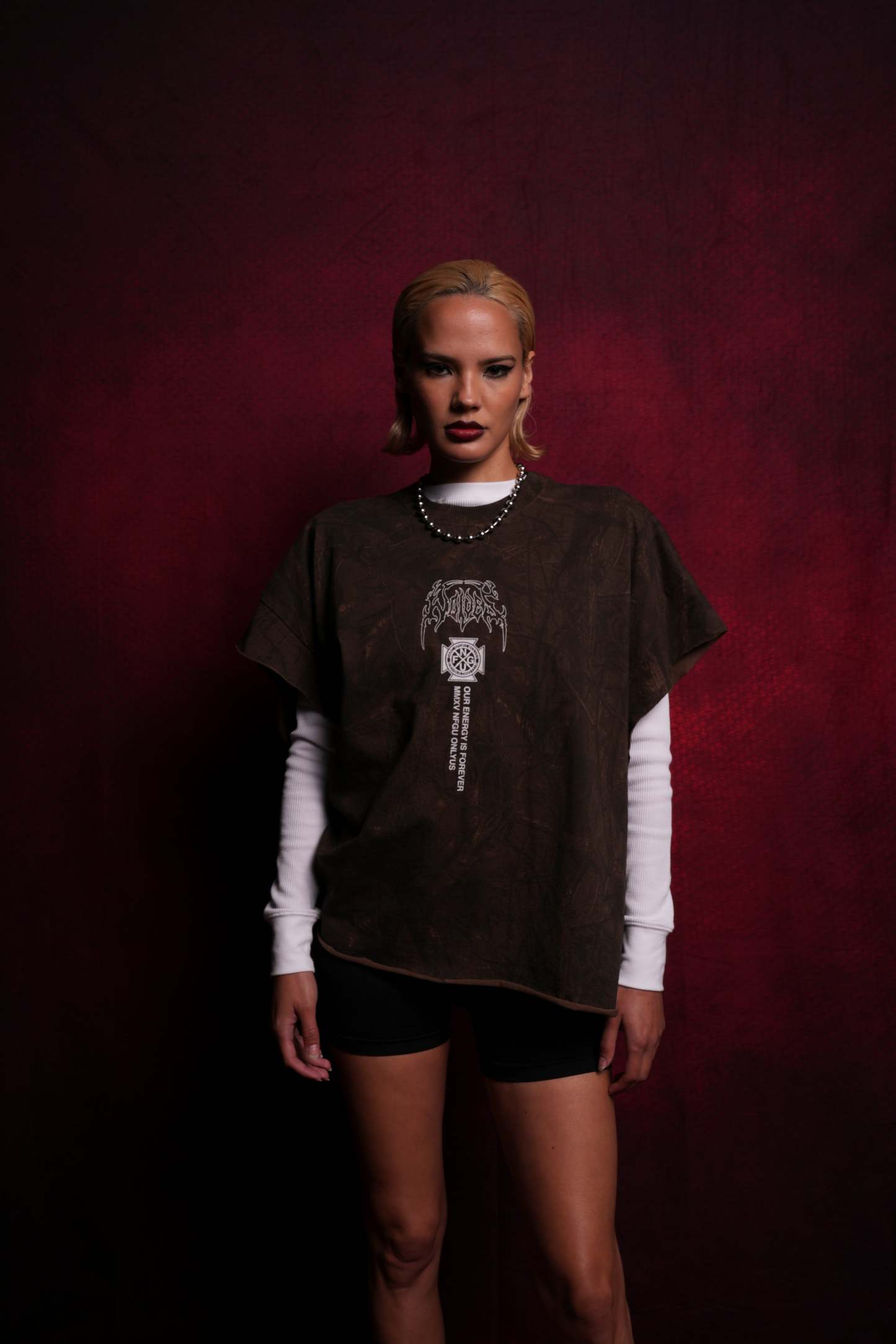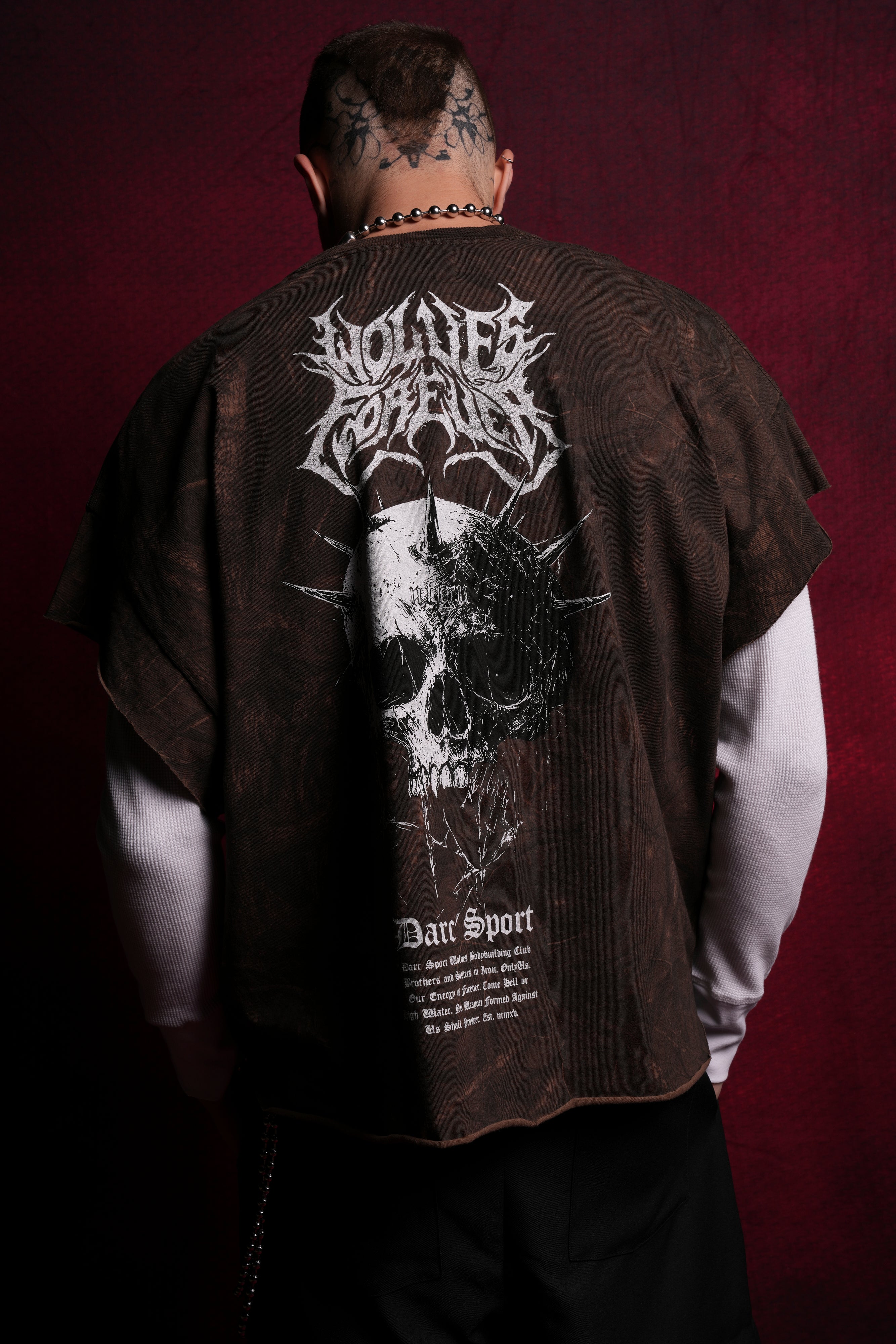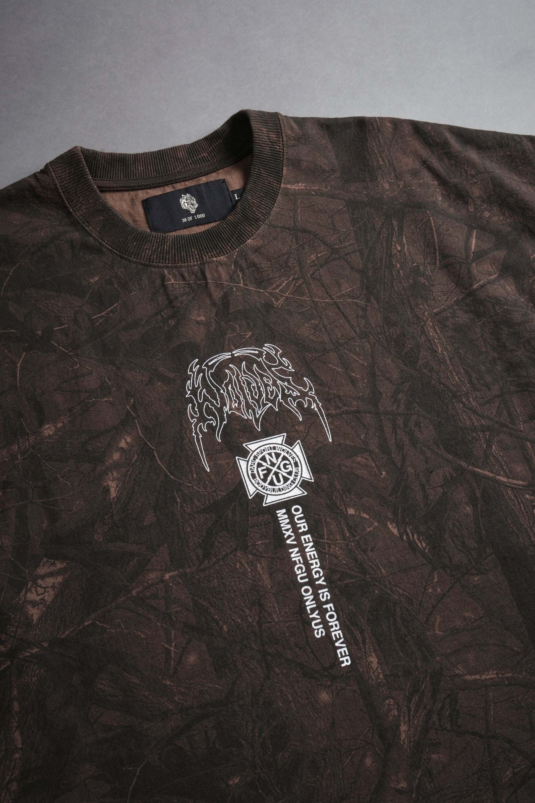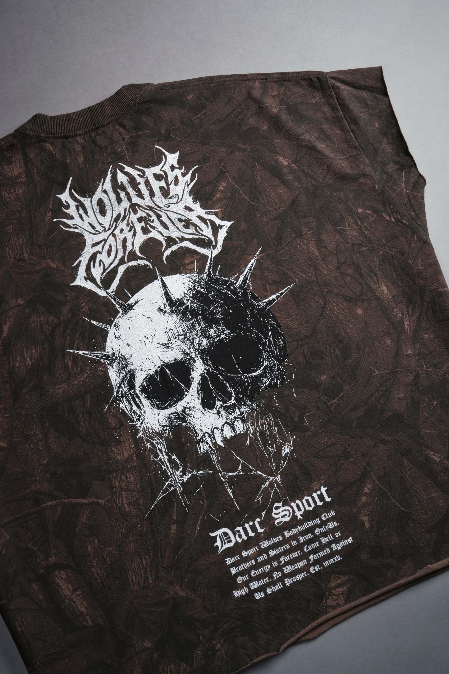 Mourning Star "Grunge" Cut Off Tee in Brown Driftwood Forest Camo