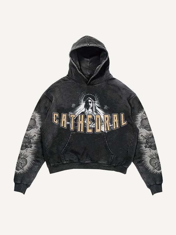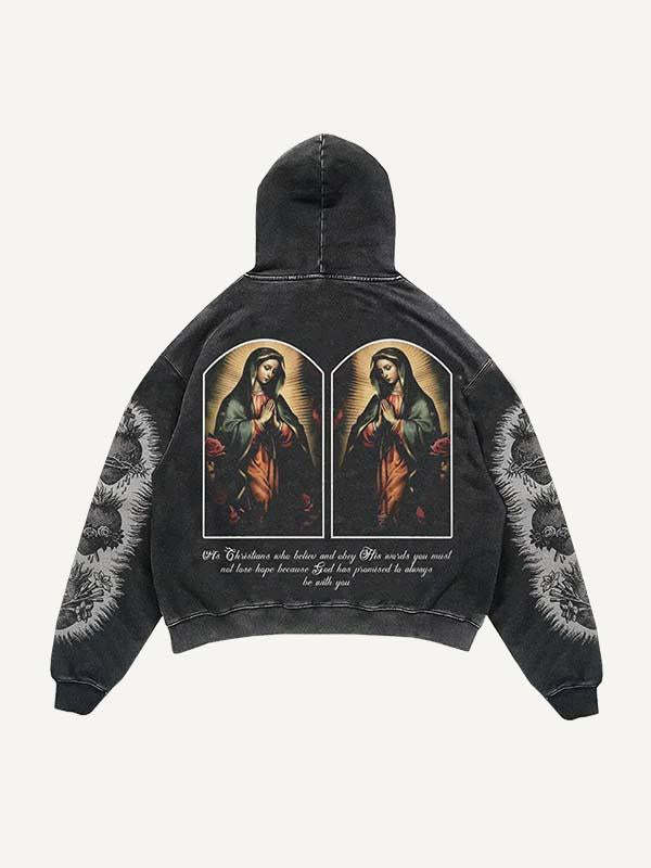 Mray&Pray&Letter Print Slant Pockets Hoodie
