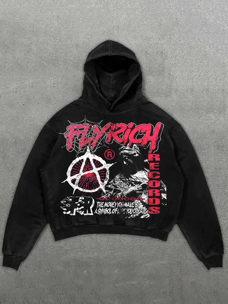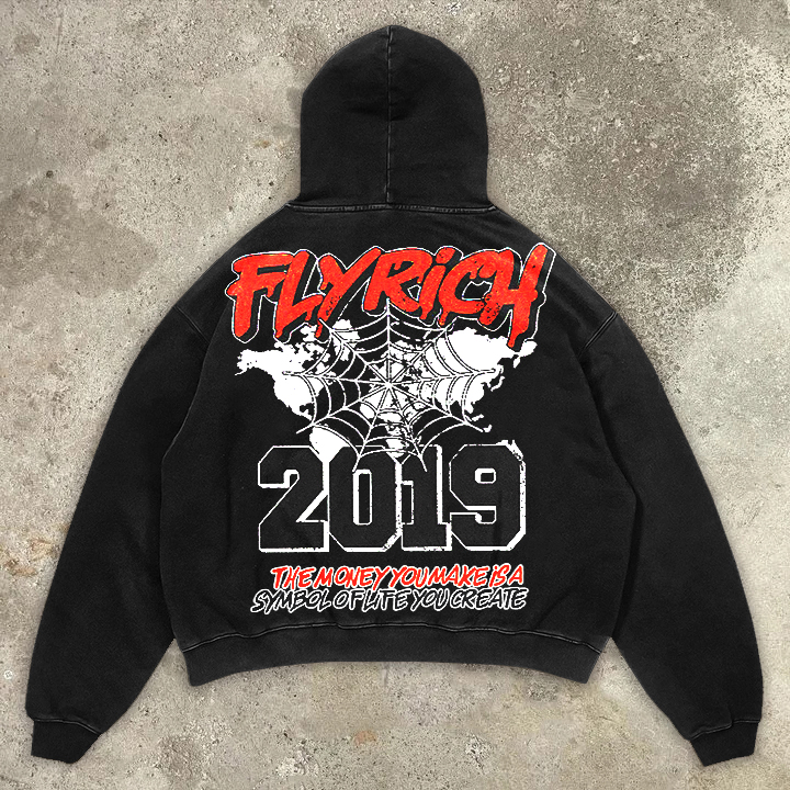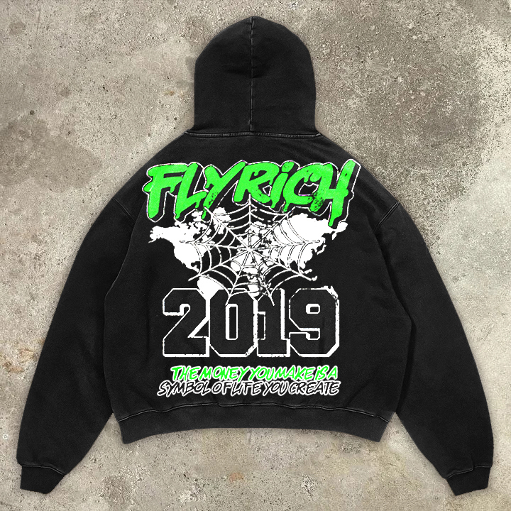 Mummy Fly Get Rich Vintage 2019 Graphic Casual Street Washed Hoodie