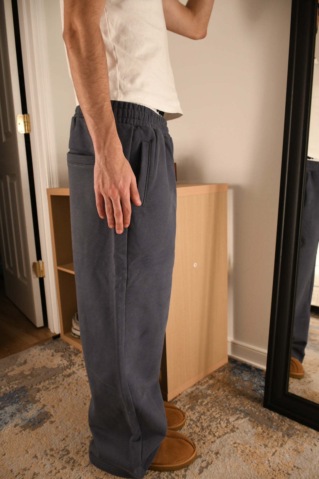 Introducing our new Navy Sweats, made with 100% cotton for ultimate comfort. The baggy fit allows for maximum movement, while the 460 gsm weight provides both warmth and durability. Upgrade your loungewear game with these must-have sweatpants!
