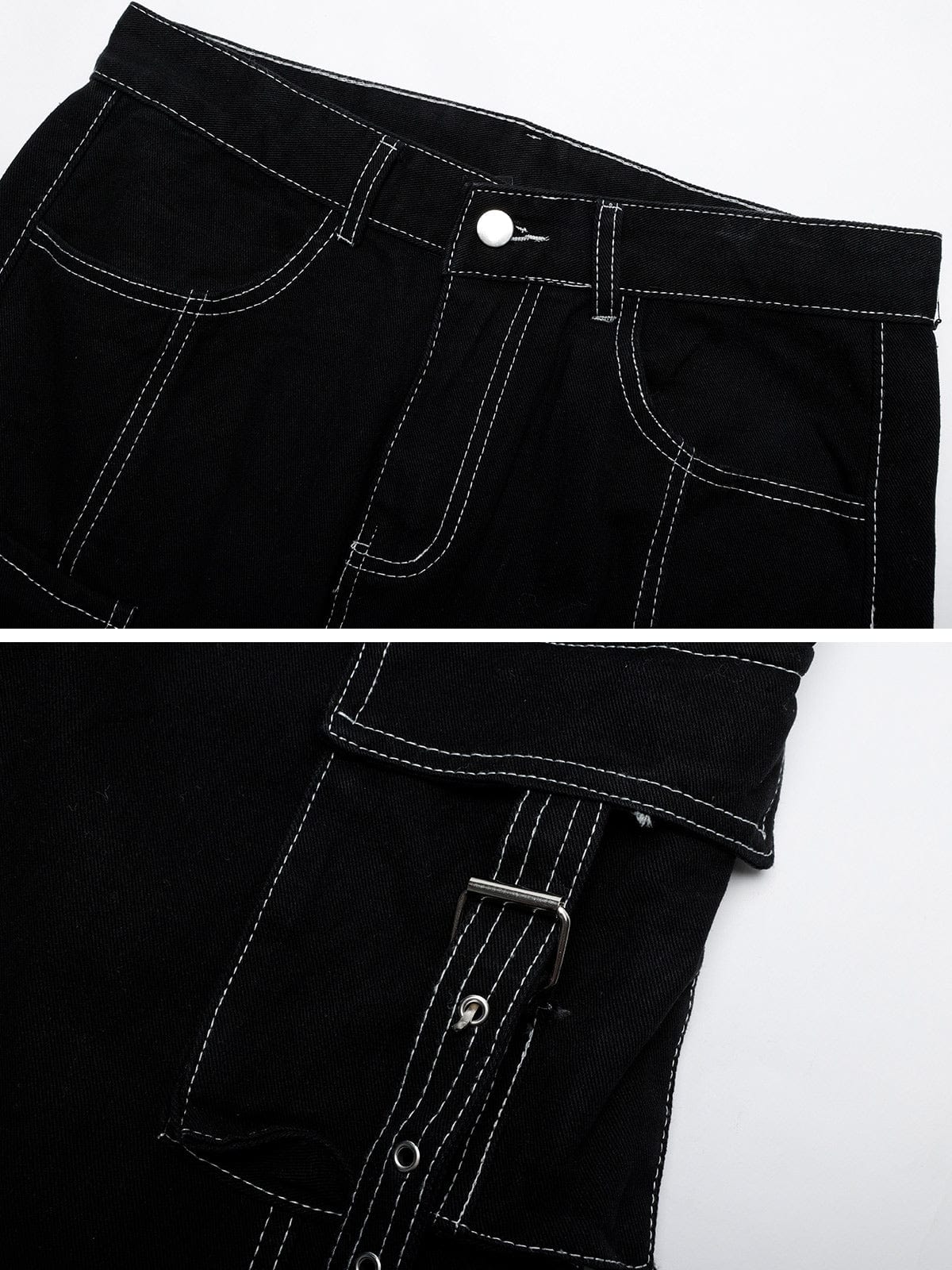 NEV Double Stitch Waistbelt Buckle-Adorned Jeans