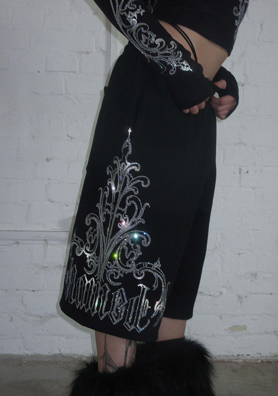 NOCTURNAL RHINESTONE OVERSIZED SWEATSHORTS BLACK