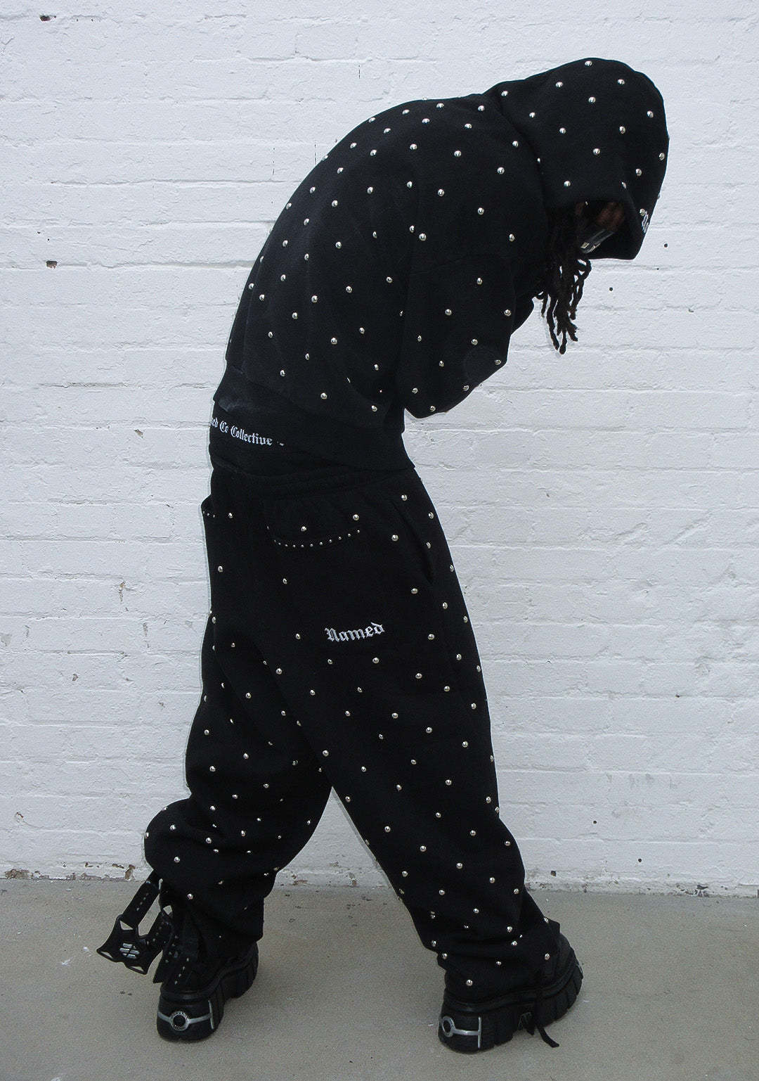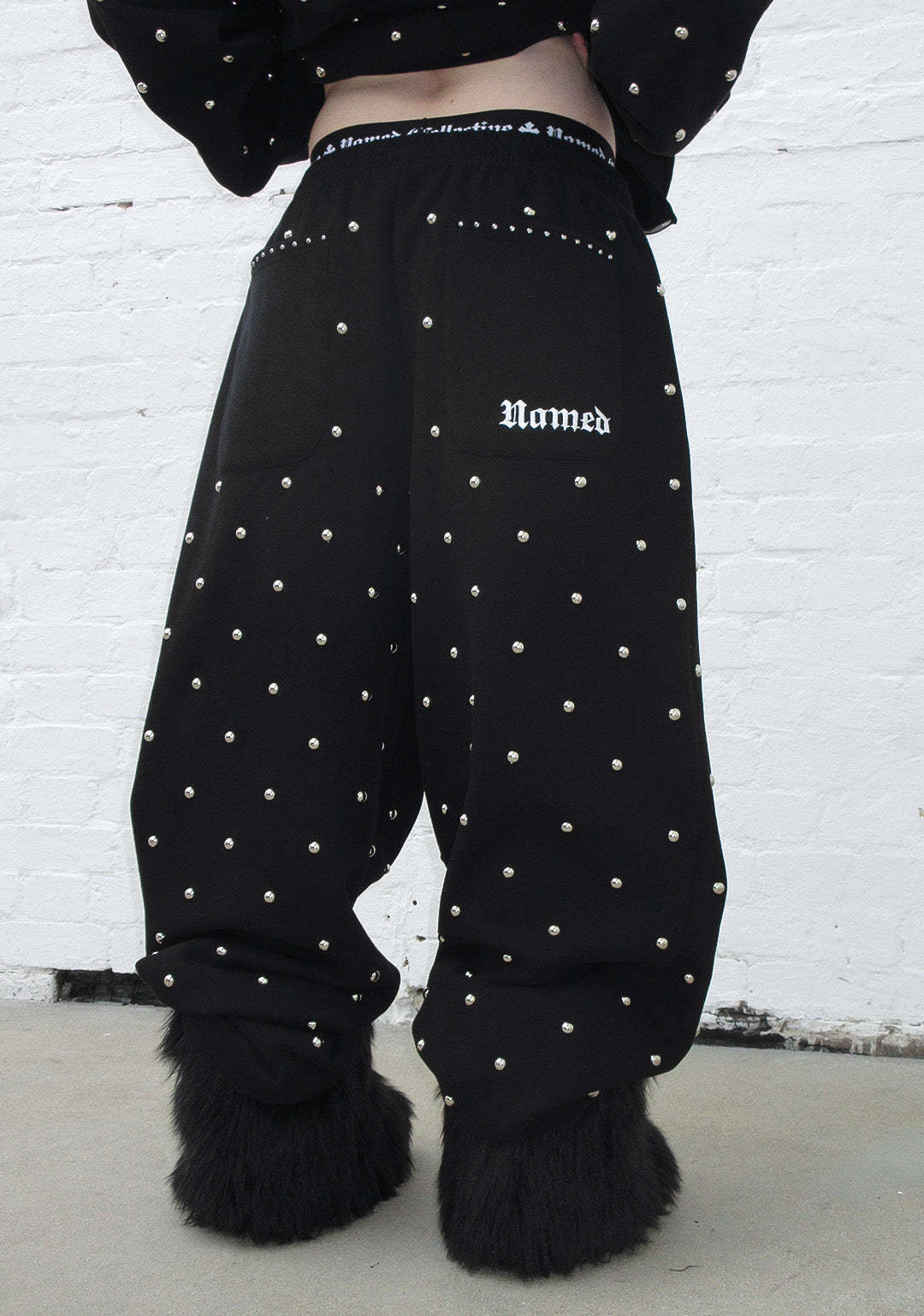 NOVA STUDDED POLKA DOT OVERSIZED SWEATPANTS BLACK