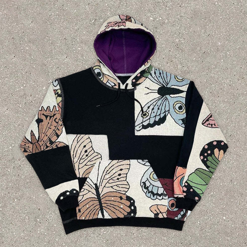 Panelled Contrast Fashion Street Long Sleeve Hoodie