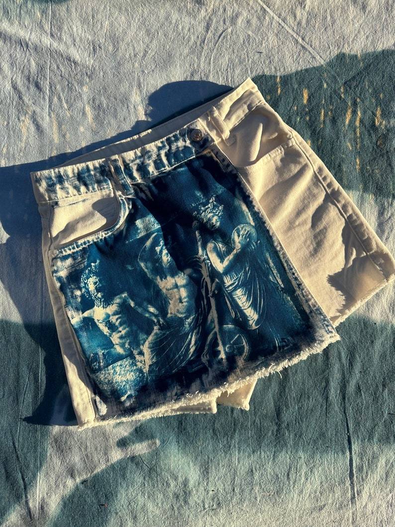 We use hight-quality fabrics and papers to make the prints. First, we coat the surface with a light-sensitive emulsion and then expose it to in direct sunlight. Any part of the surface that is exposed will react and change color. Finally we rinse it in water and stabilize the print.
