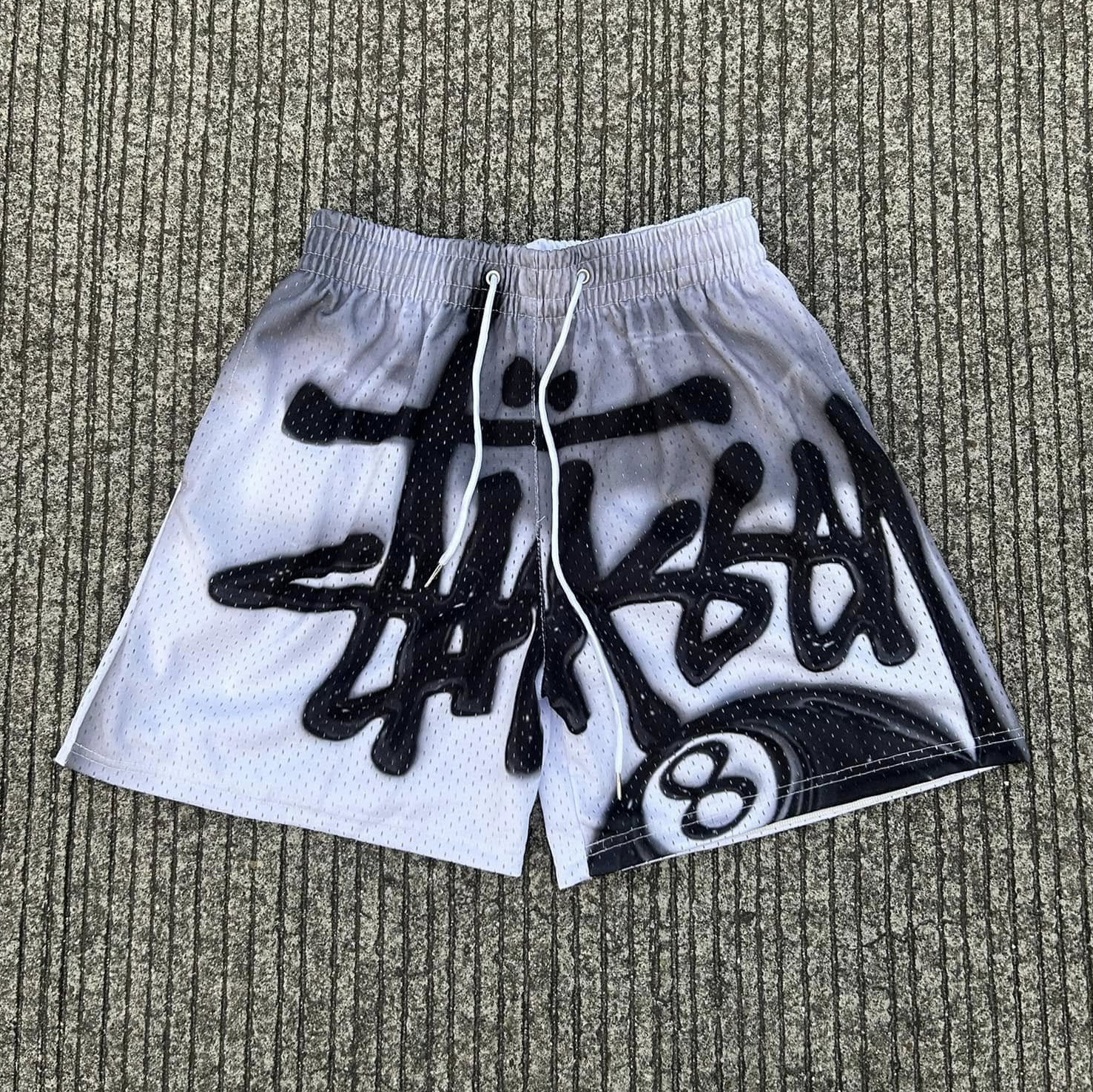 Personalized Billiard No.8 Letters Print Mesh Shorts