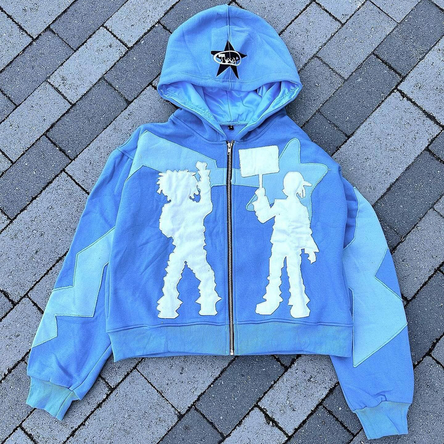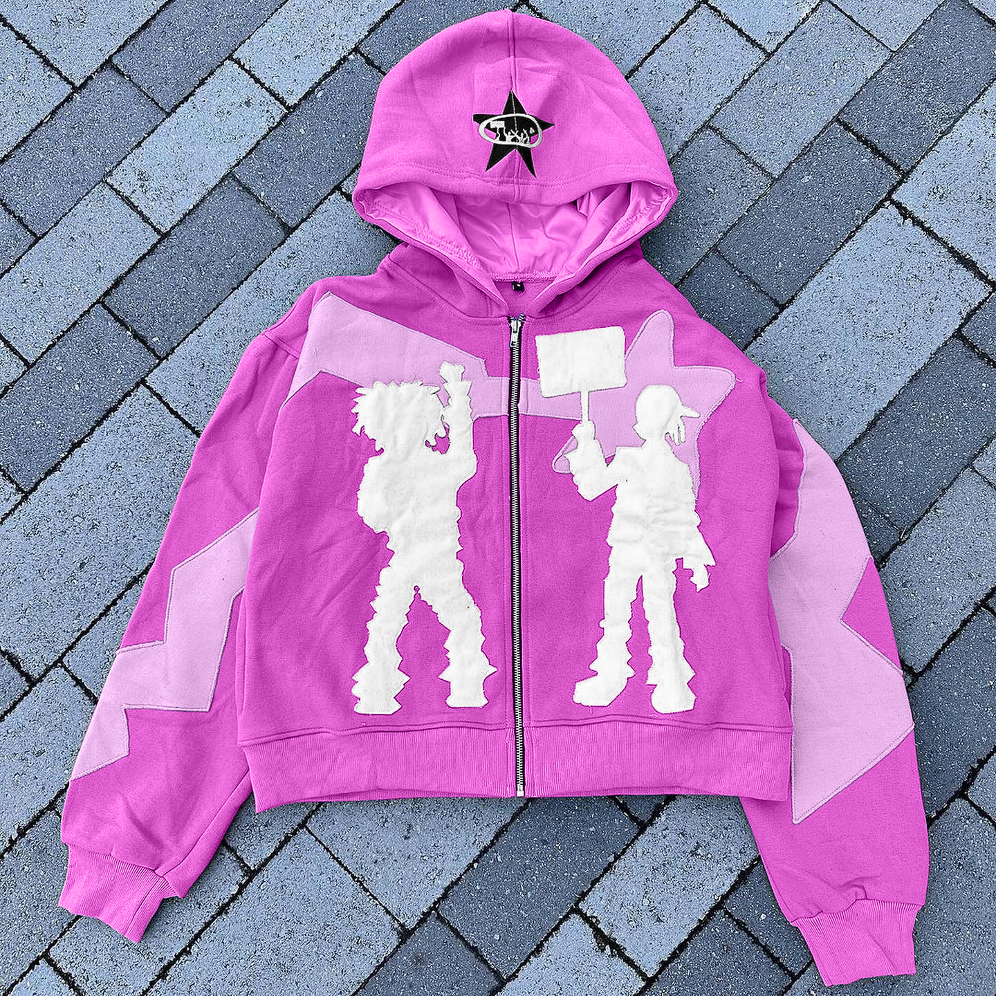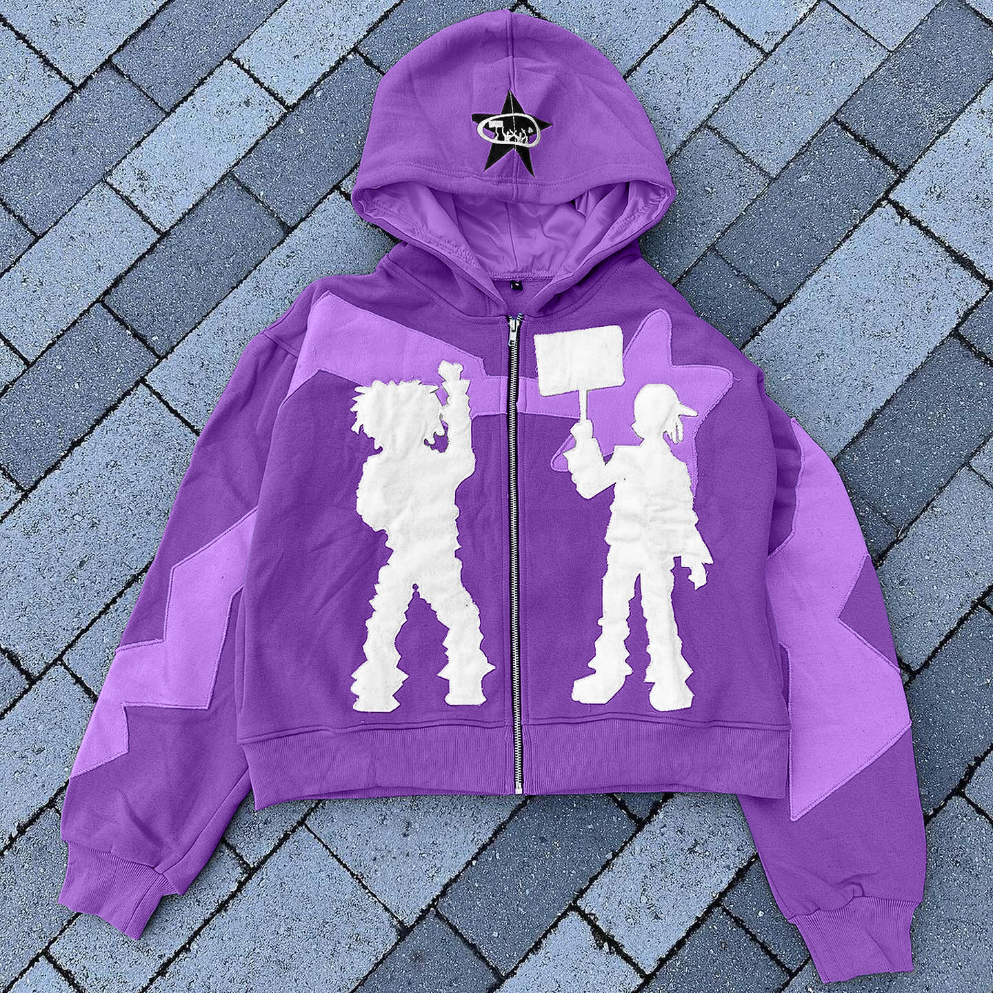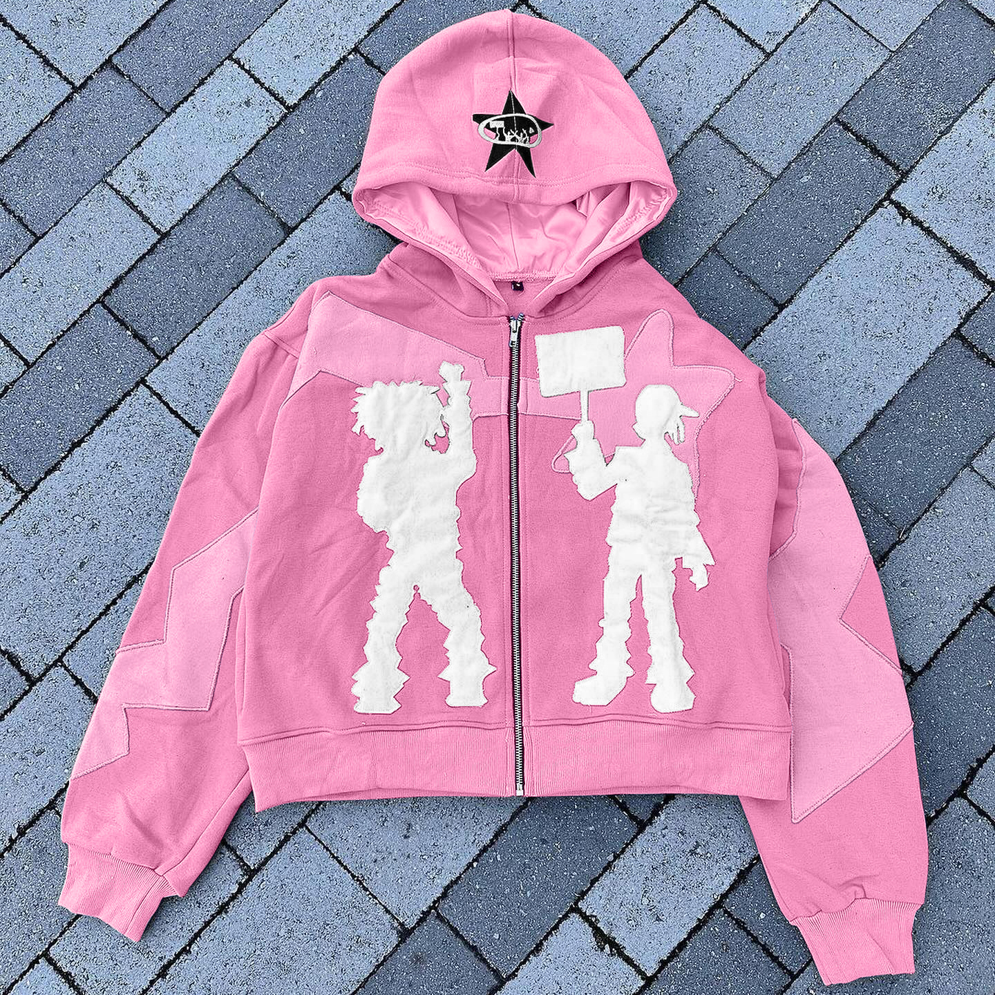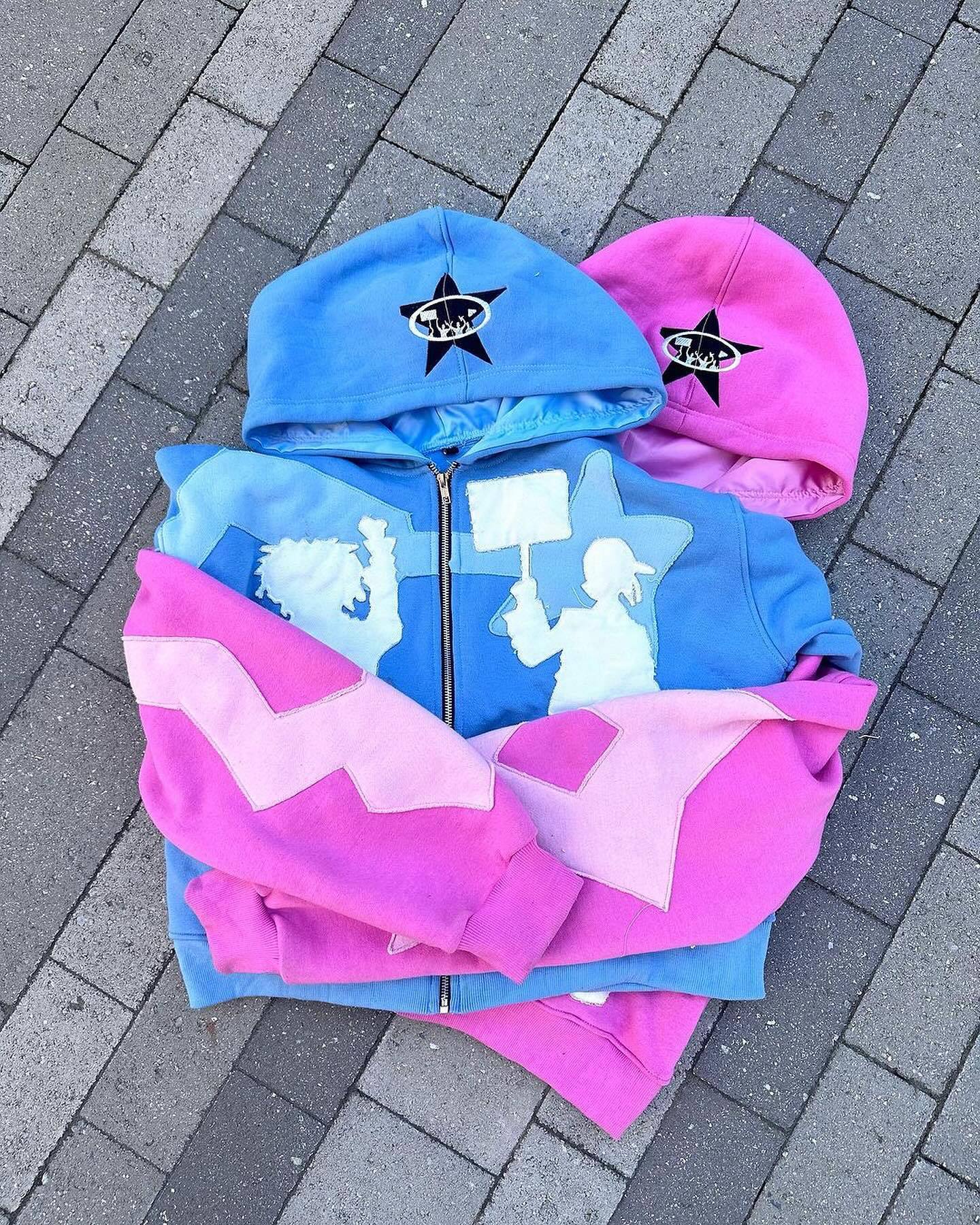 Personalized patchwork contrast color stitching zipper sweatshirt