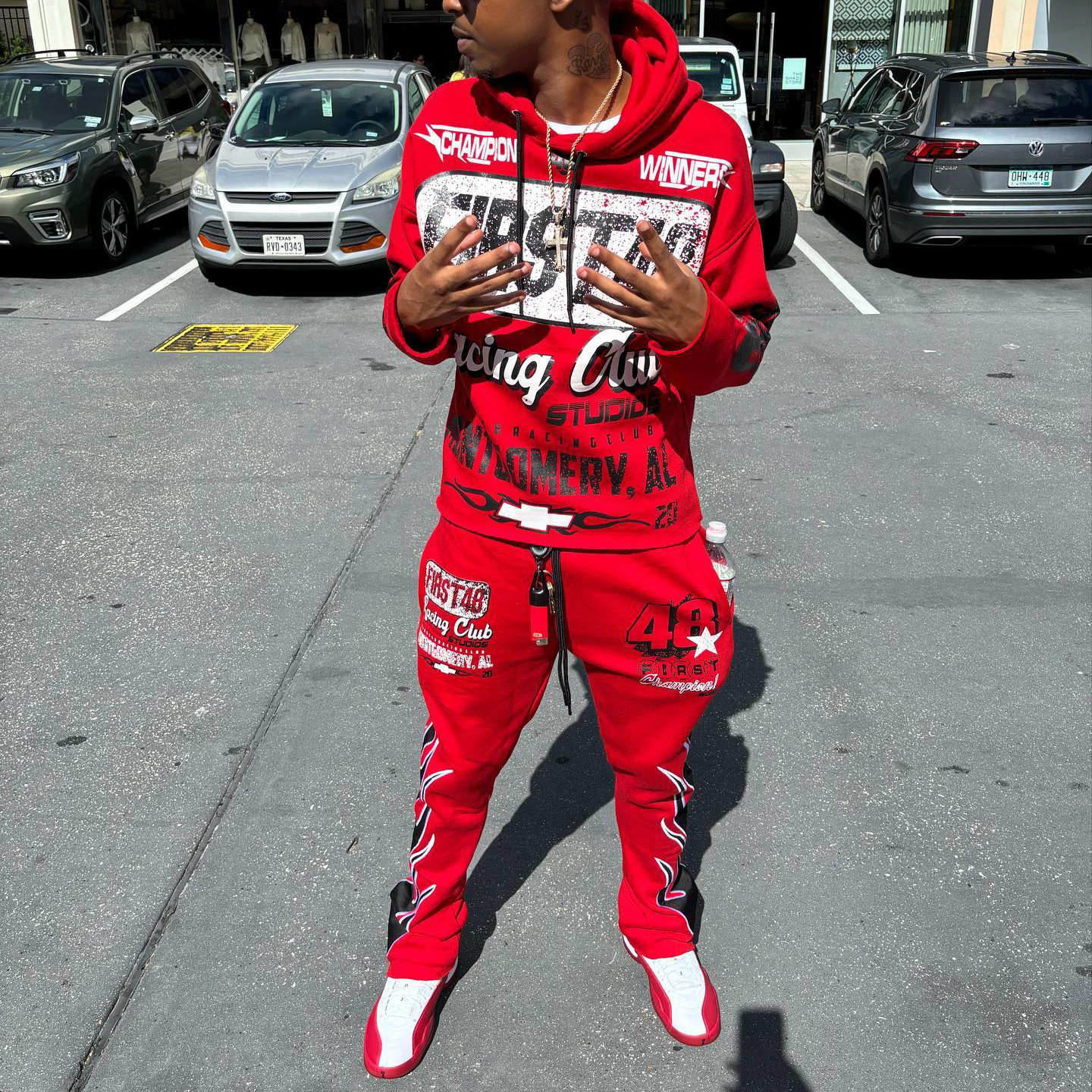 Personalized retro racing pattern hoodie set