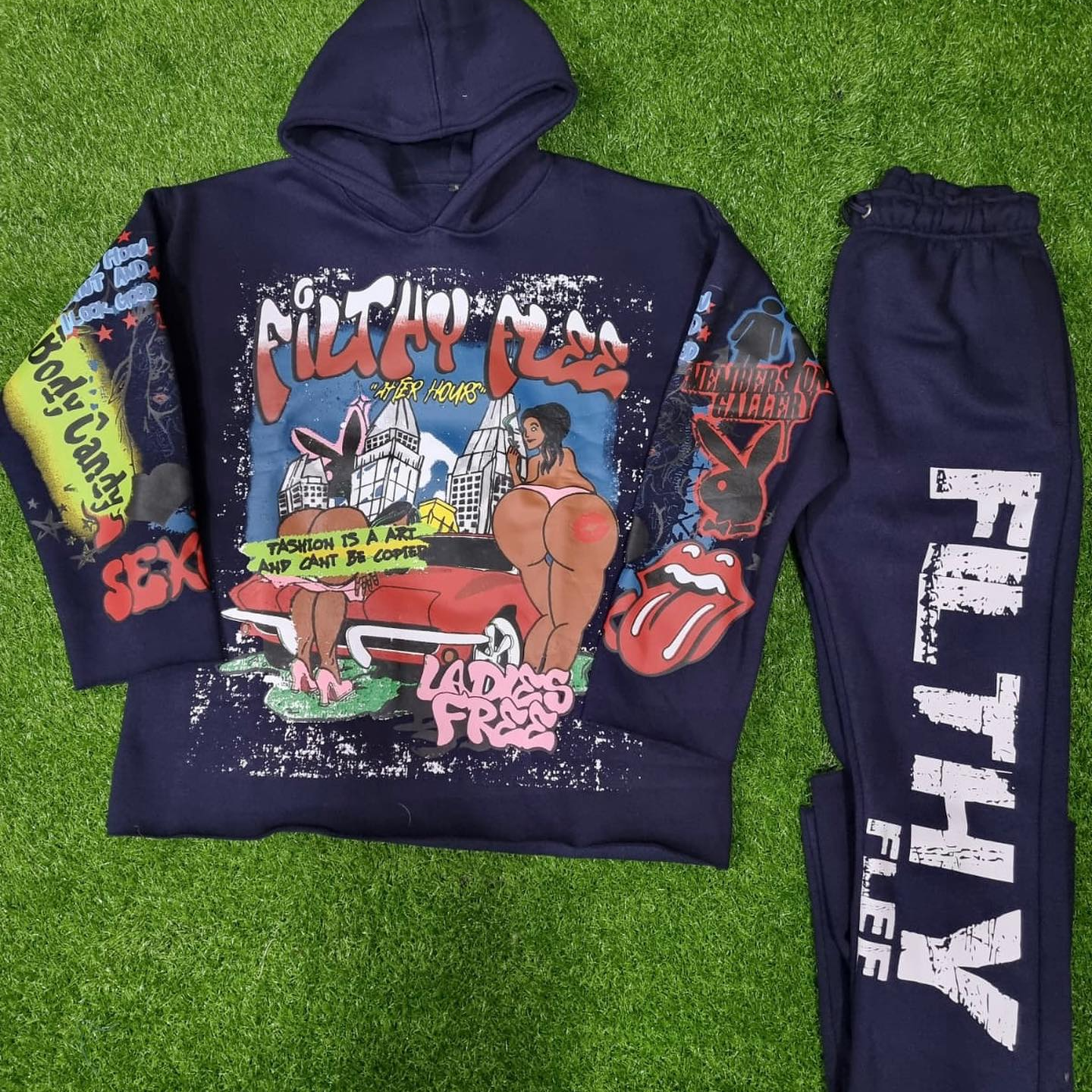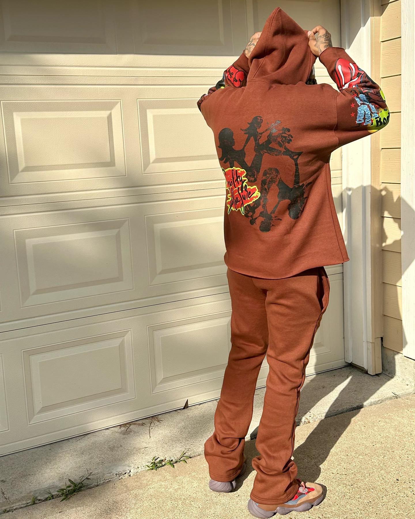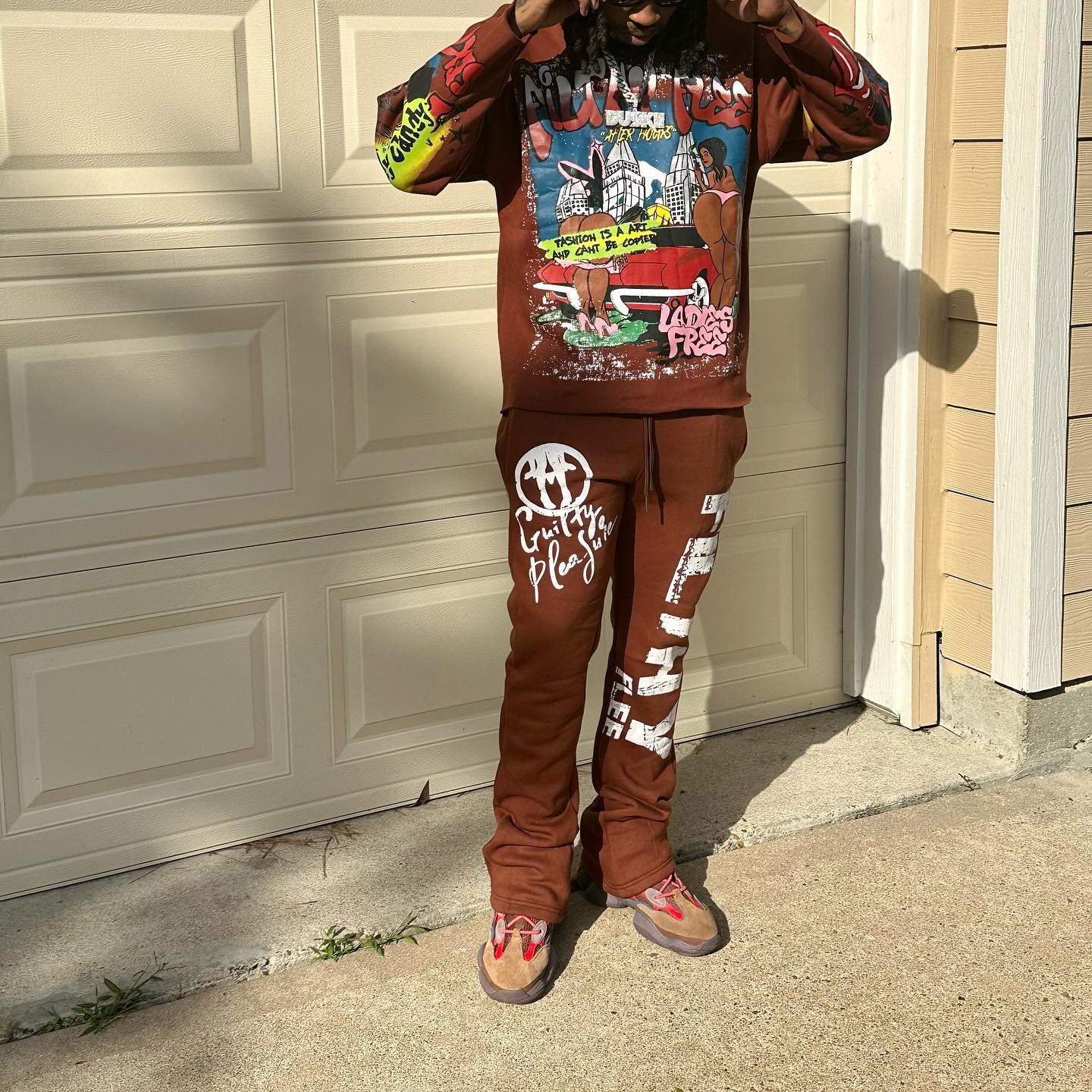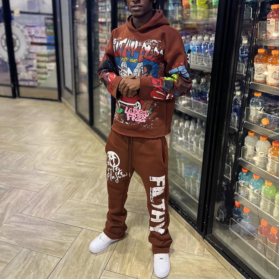 Personalized street style printed sweatshirt pants two-piece set