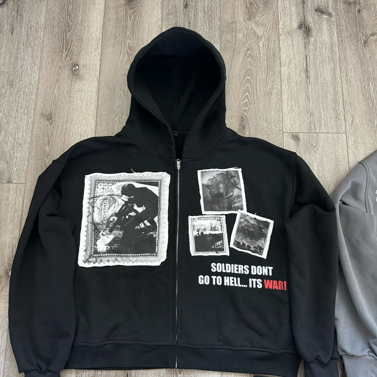 Personalized zip-up patch hoodie with embroidered letters
