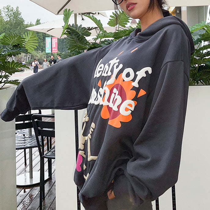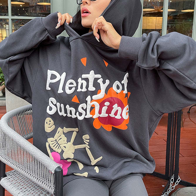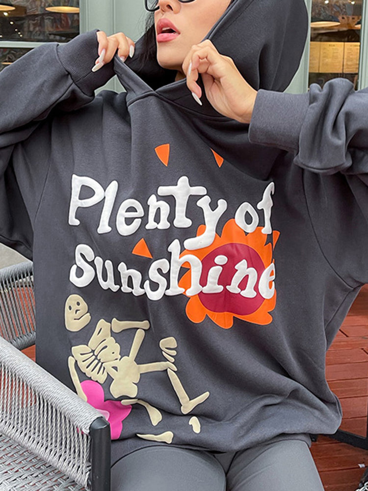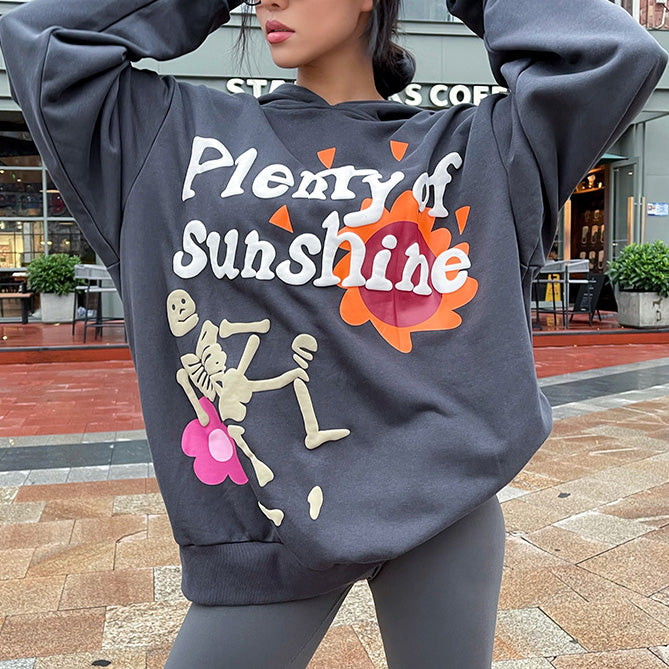 Plent Of Sunshine Skeleton Puff Print Loose Hoodie