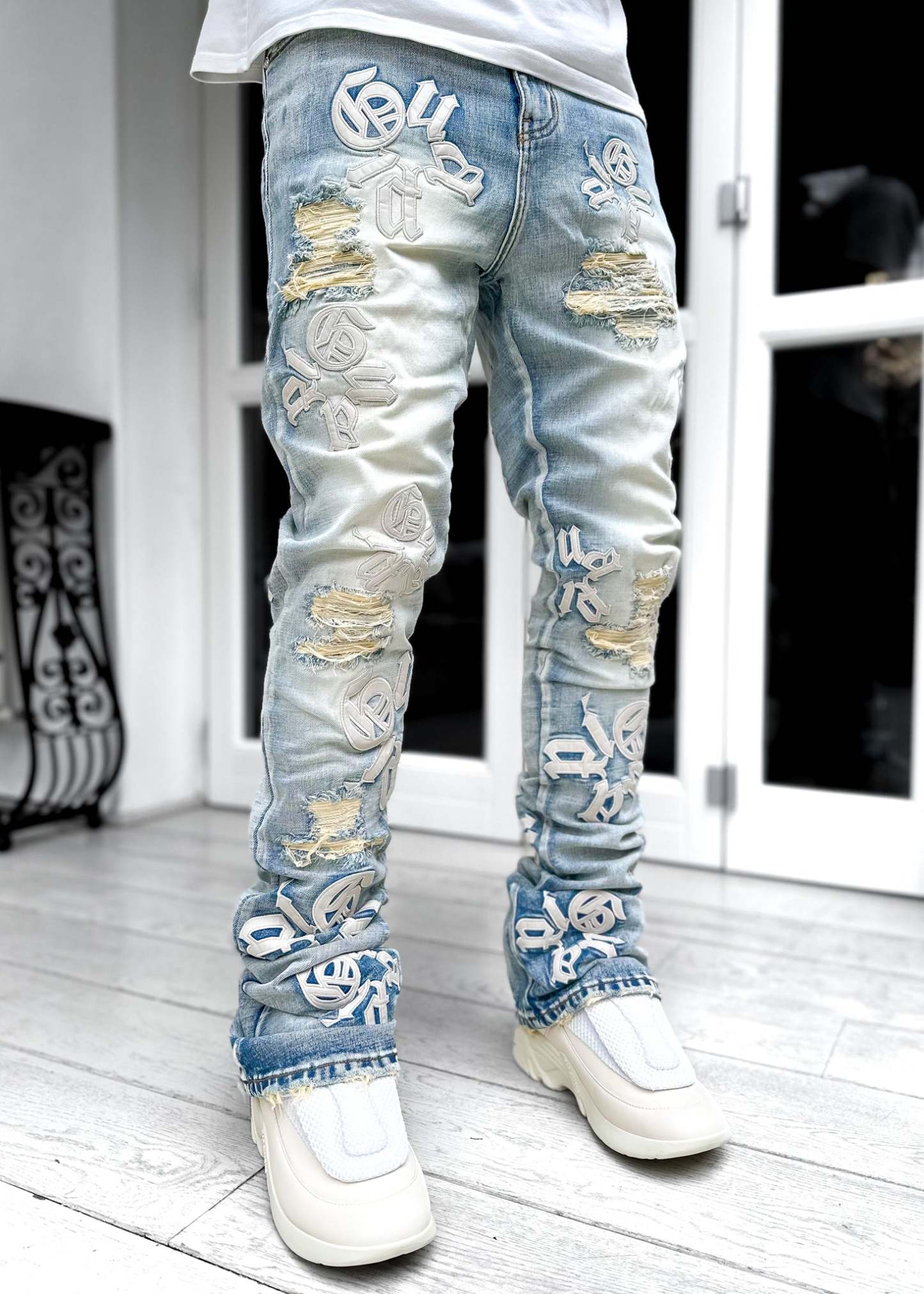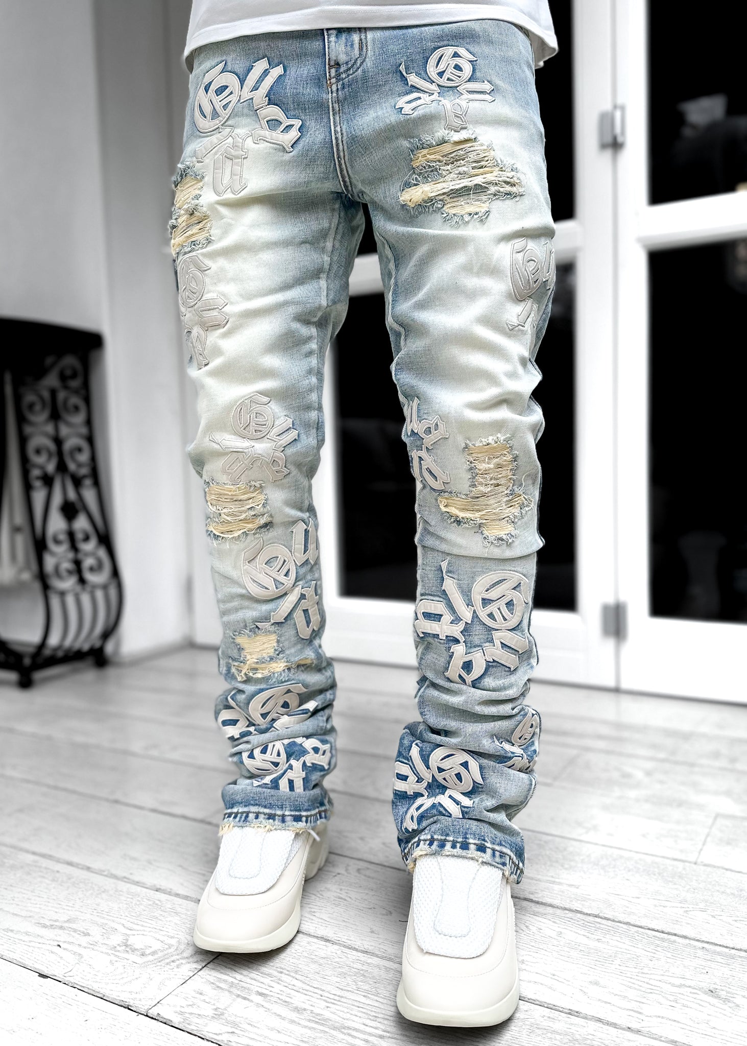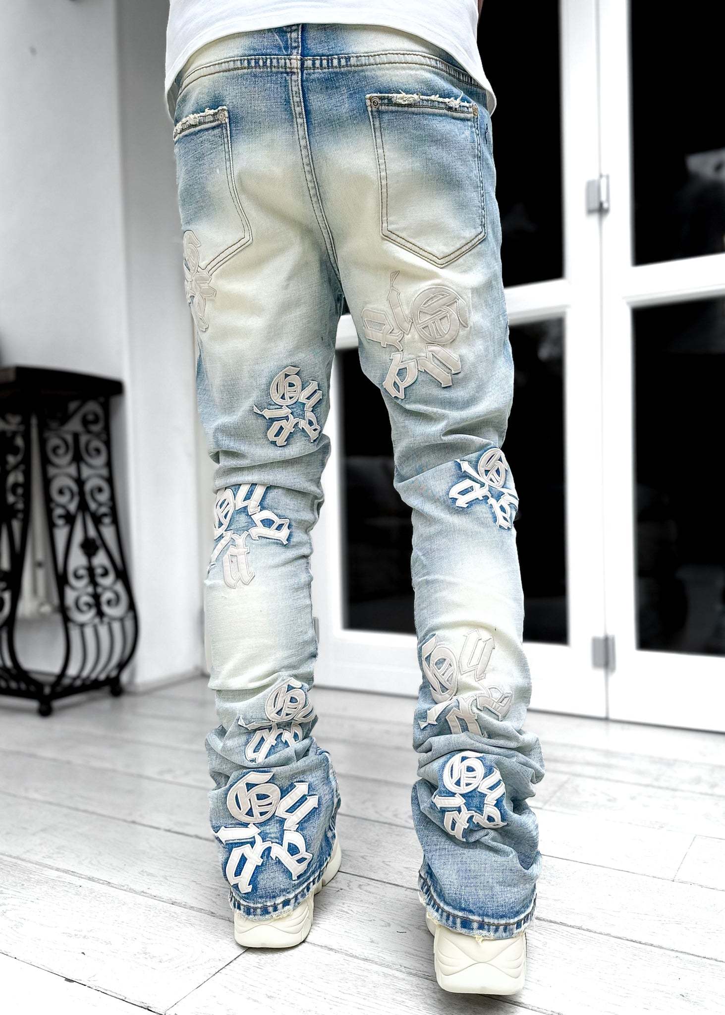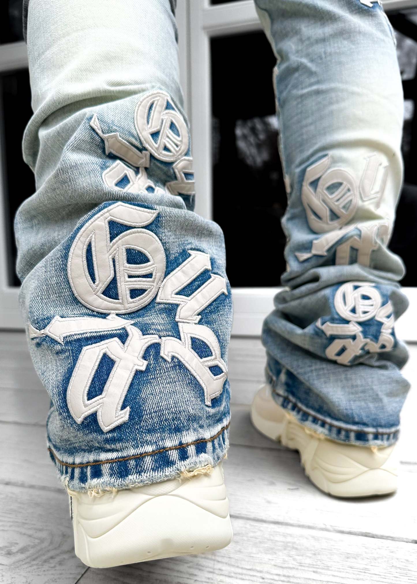 Guapi Powder Blue Logos Stacked Denim