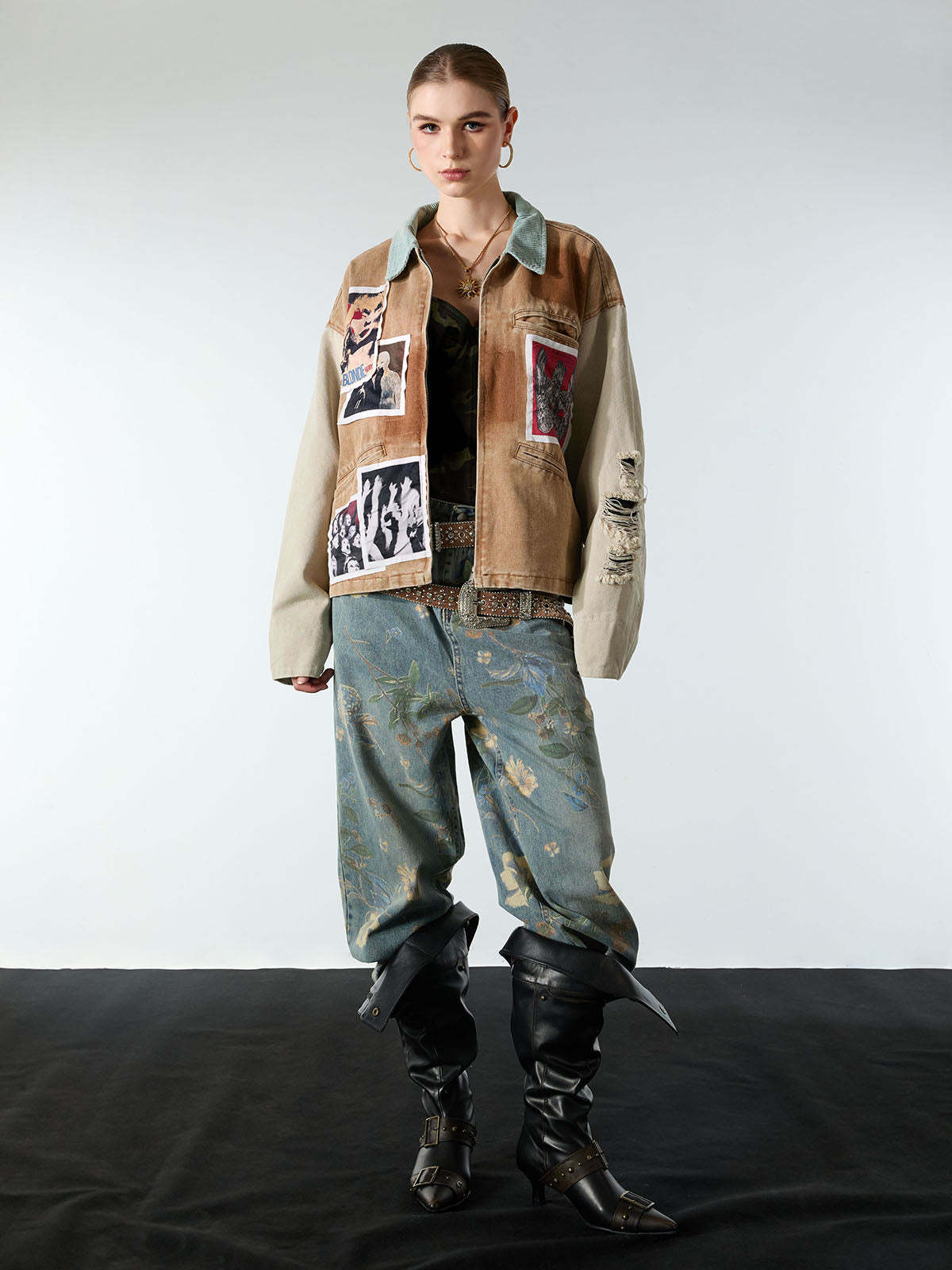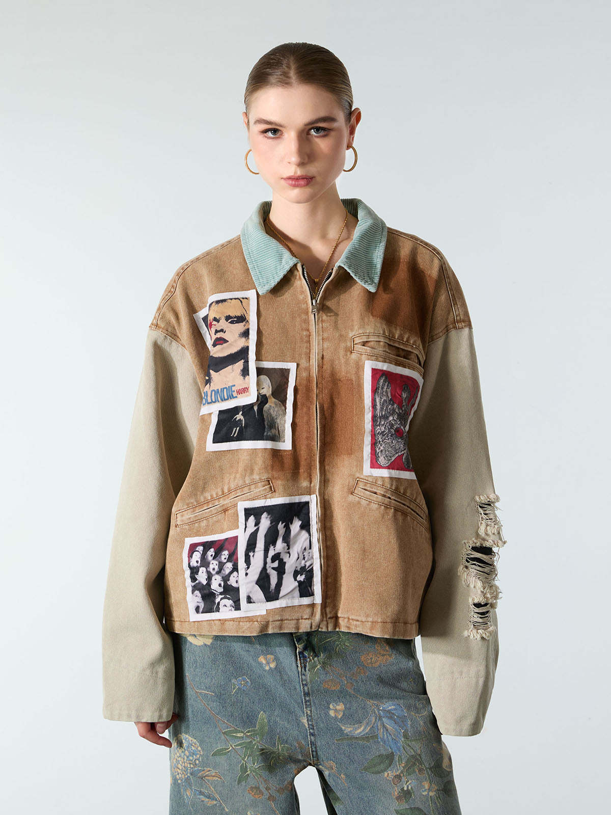 Punk Retro Collage Print Distressed Heavy Jacket - 2539