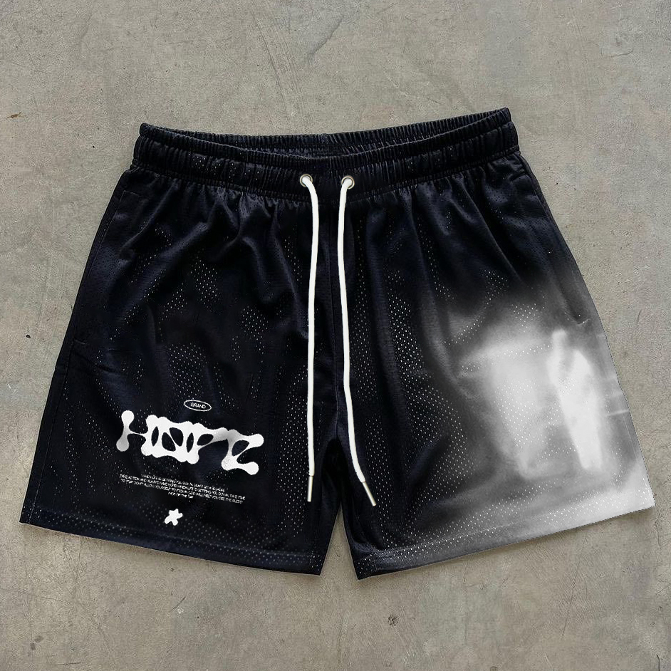 Relaxed statement-print stretch-mesh shorts