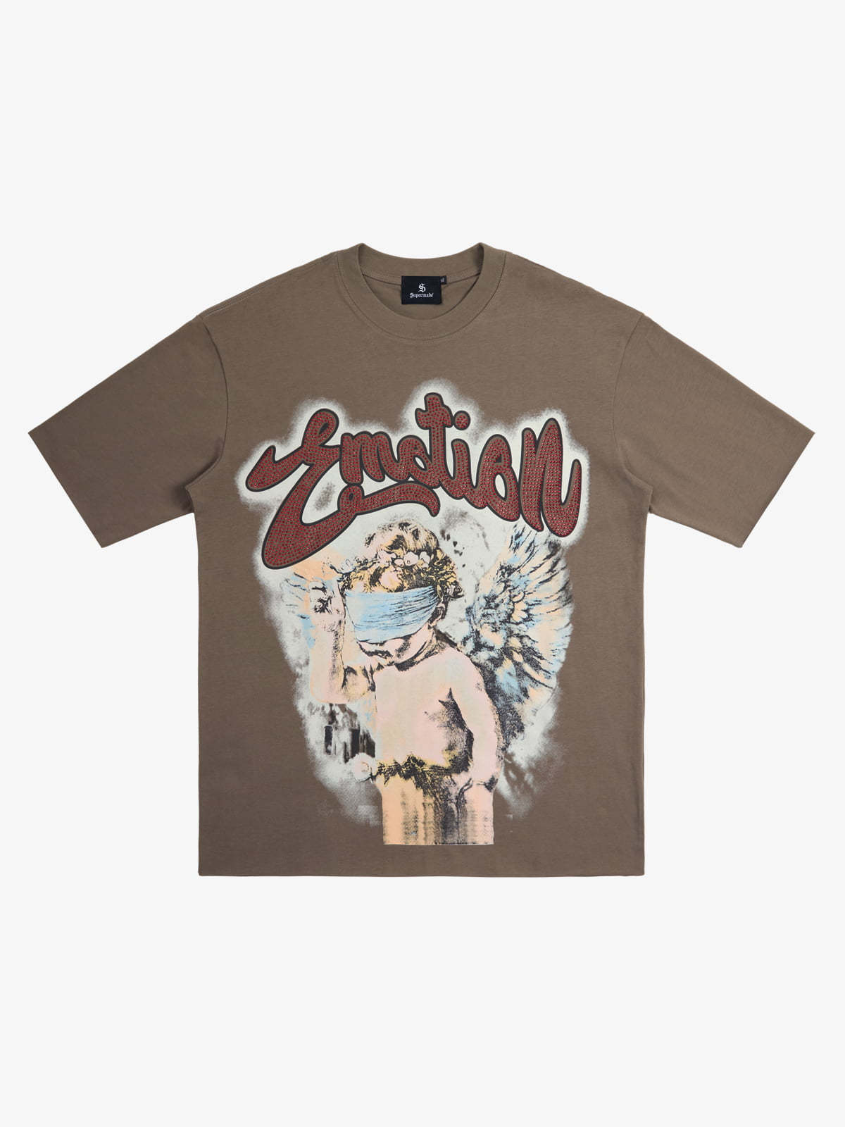 Retro Blindfold Angel Rhinestone Letter Graphic T-Shirt