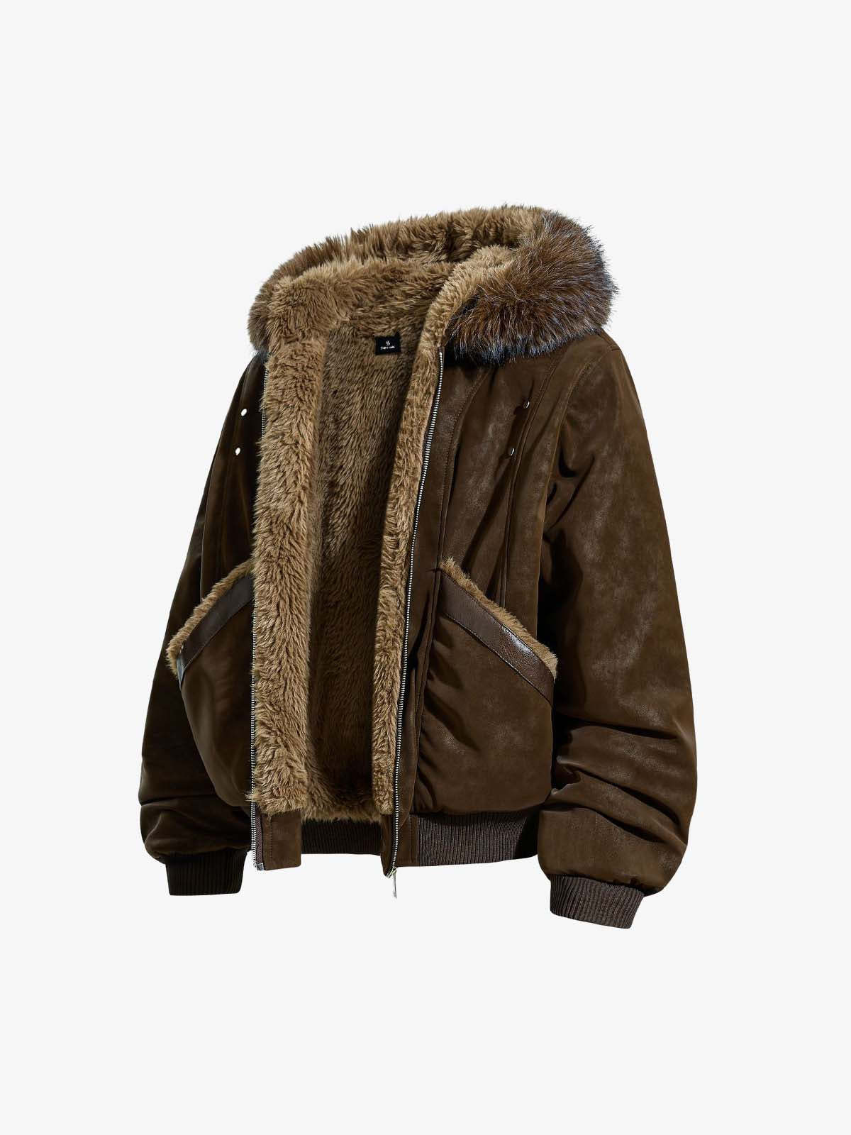 Retro Detachable Faux Fur Collar Suede Fleece Hoodie Jacket