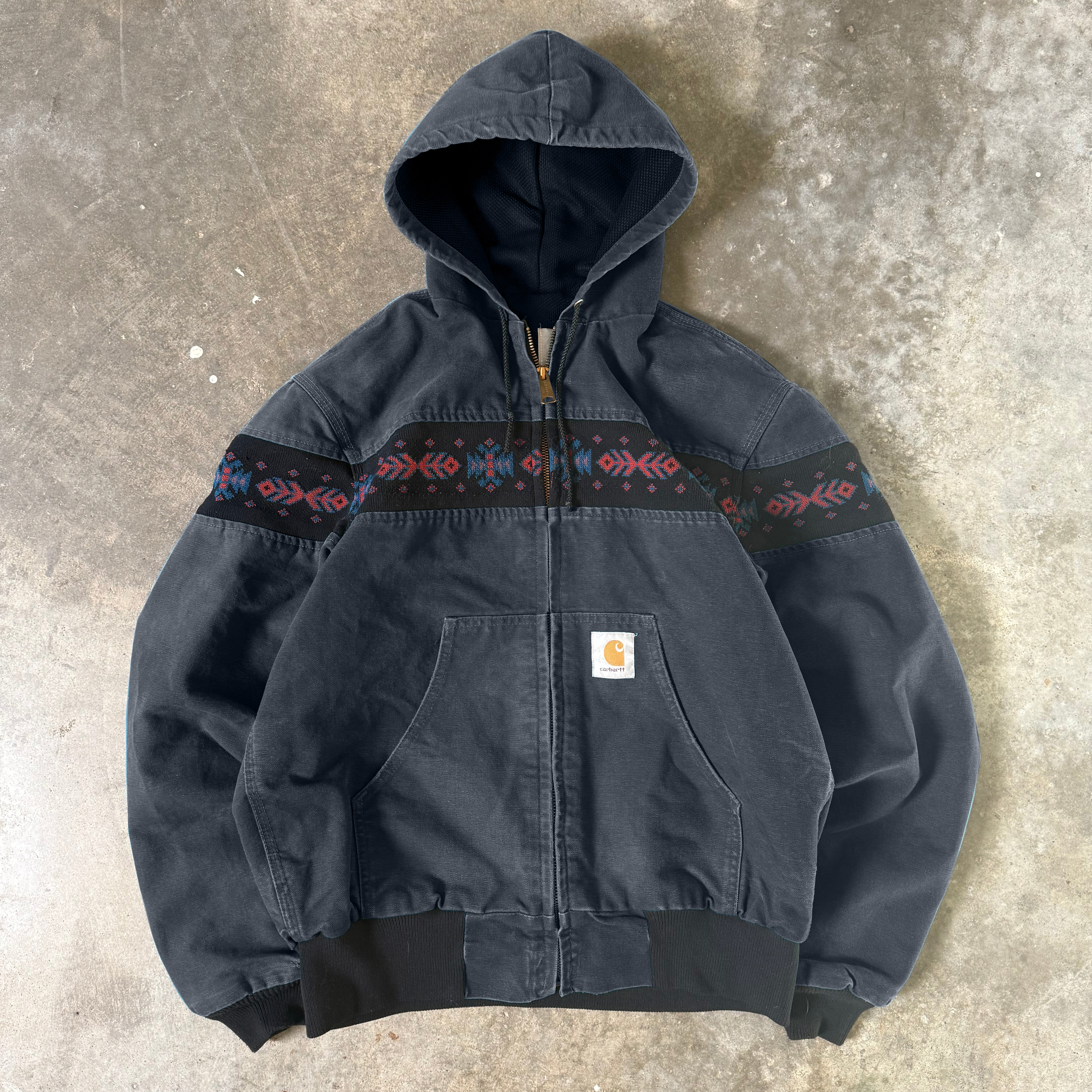 Retro ethnic pattern contrast zip-up anorak