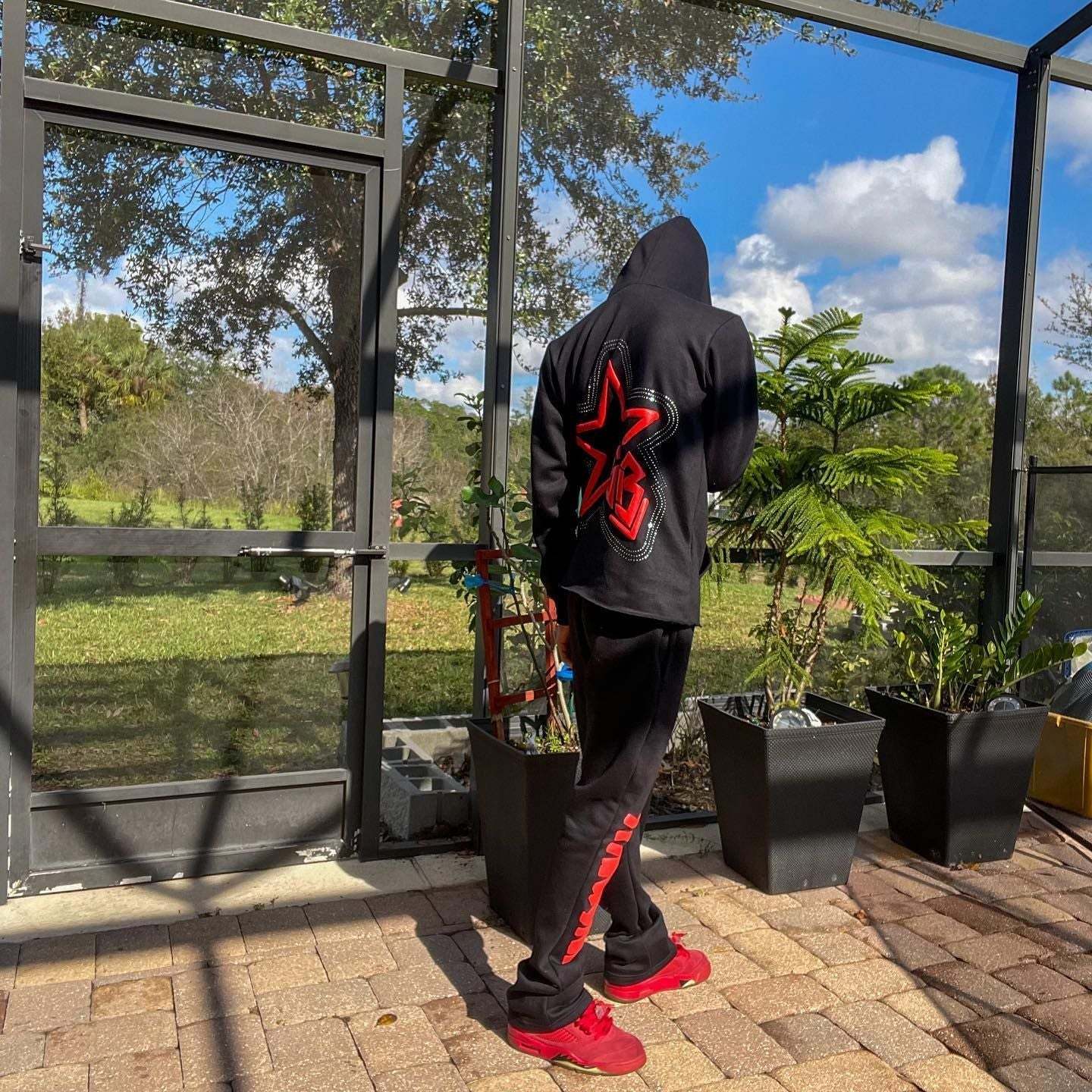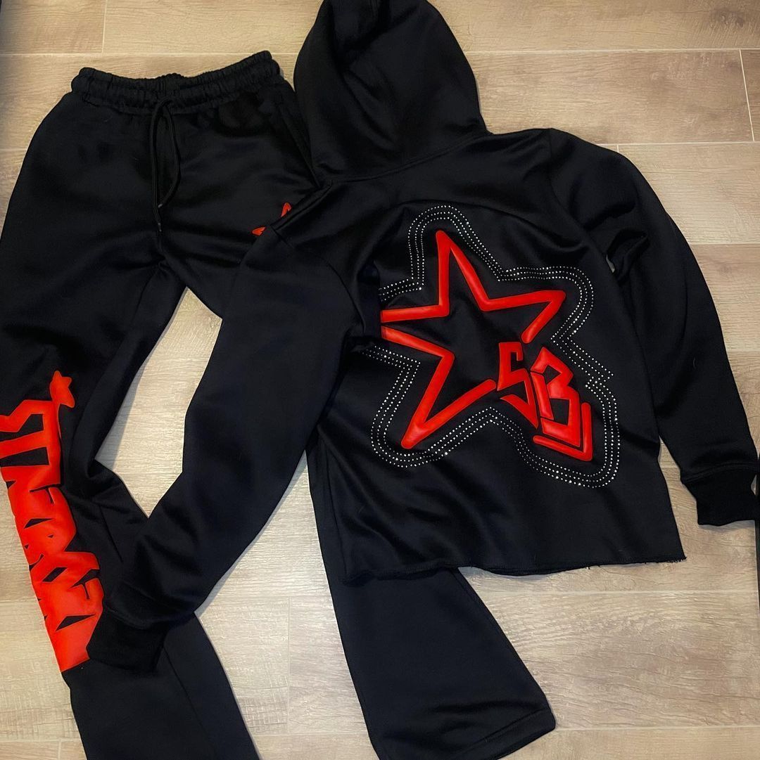 Retro fashion printed street hoodie set
