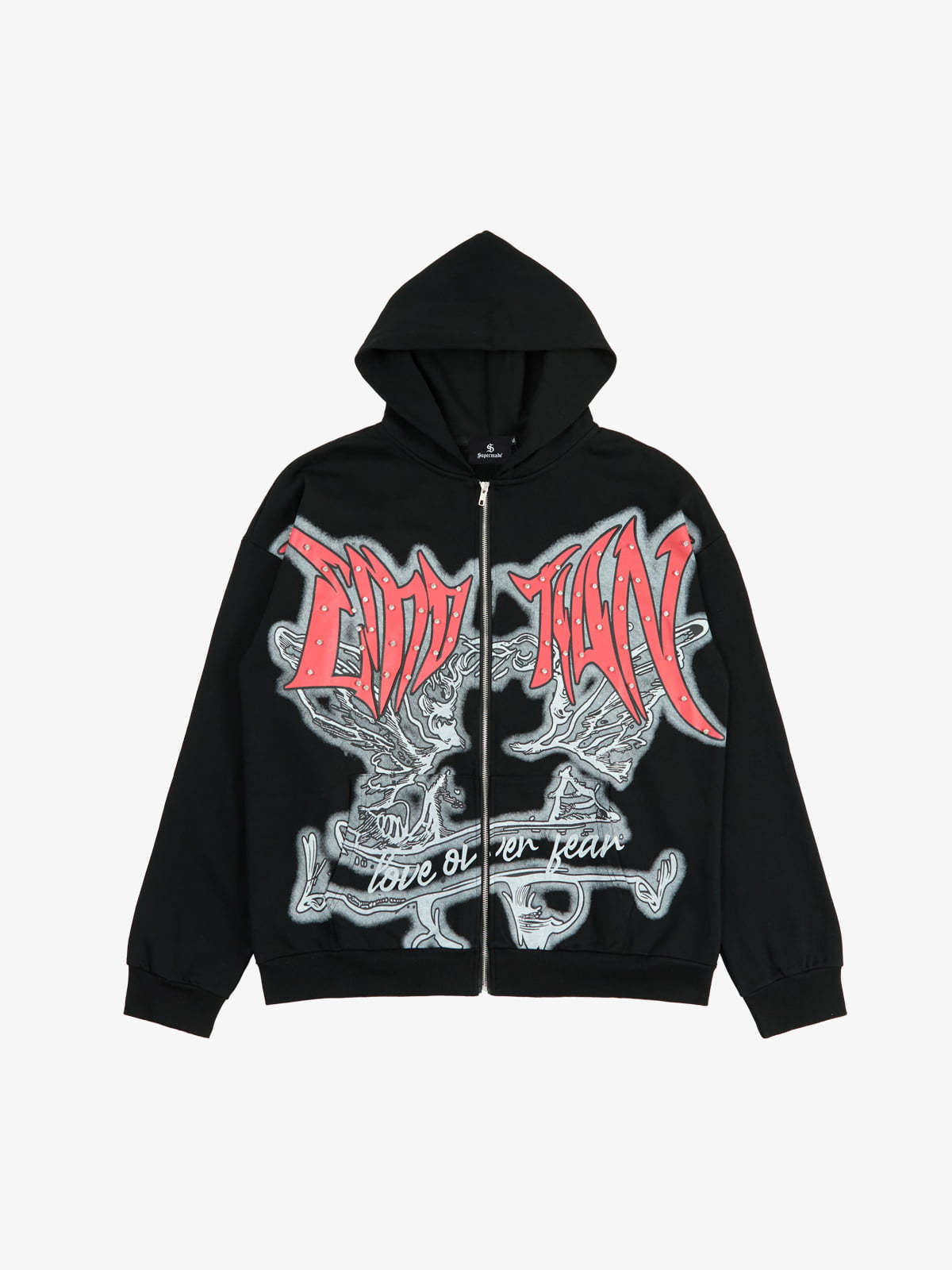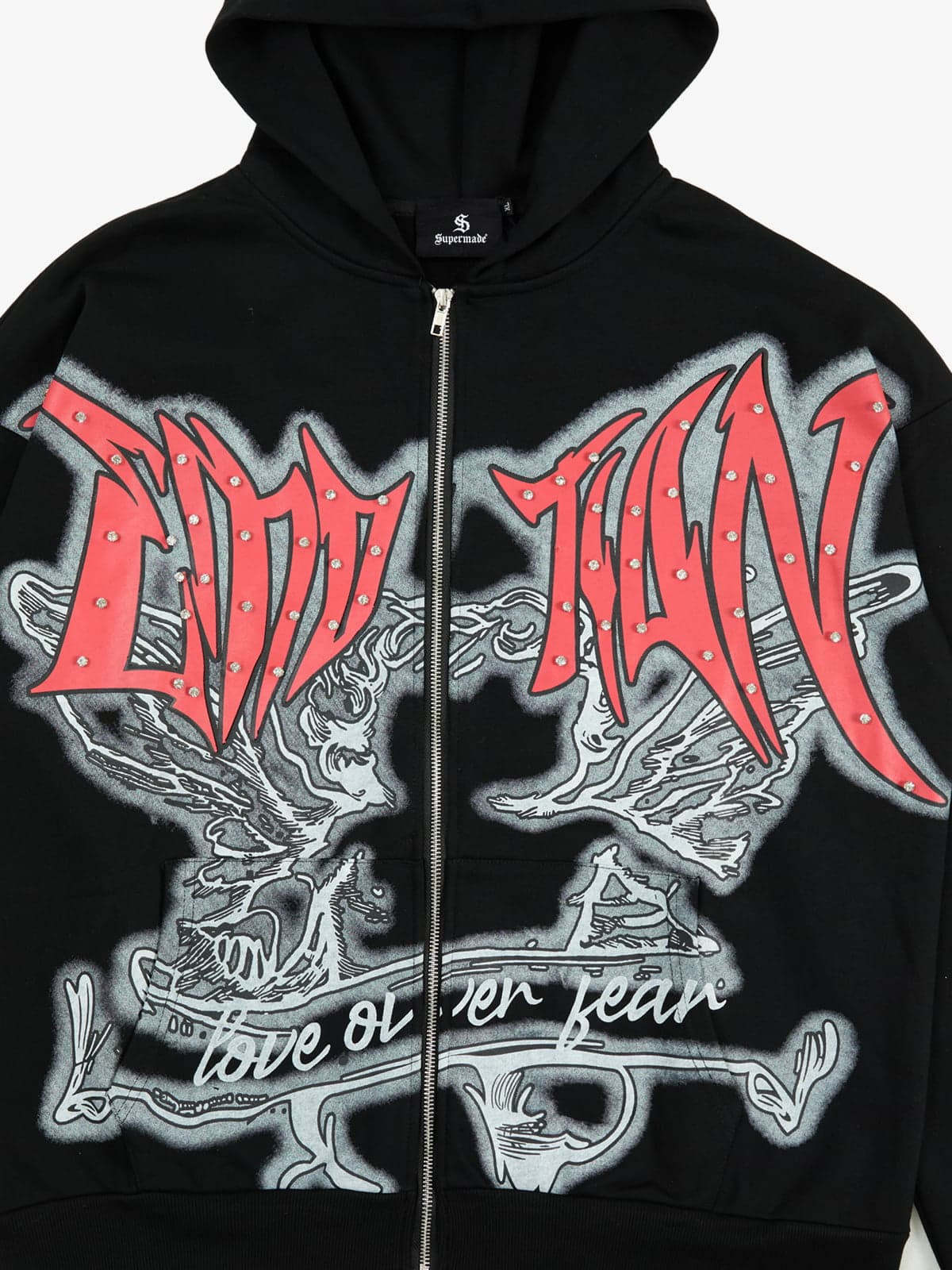 Retro Gothic Print Rhinestone Zip-Up Hoodie