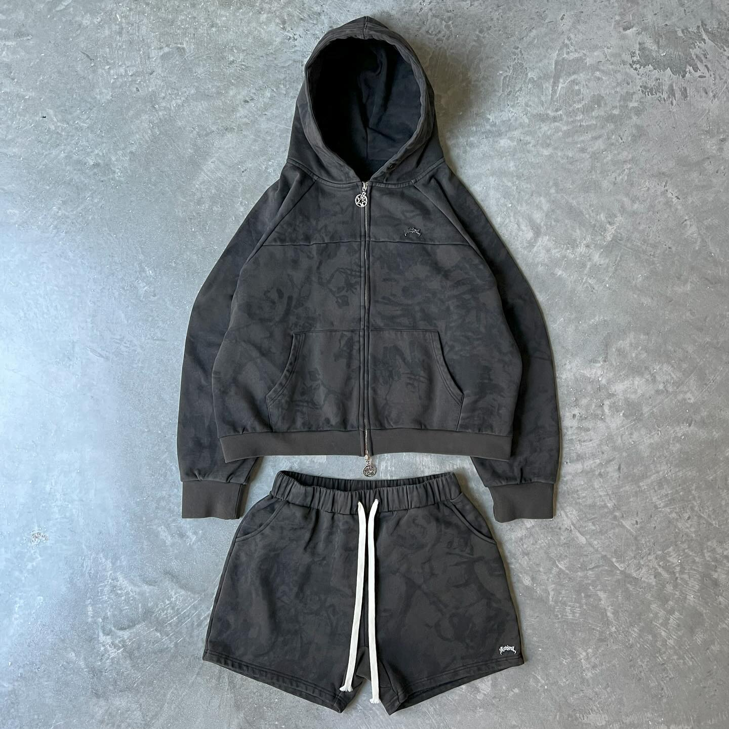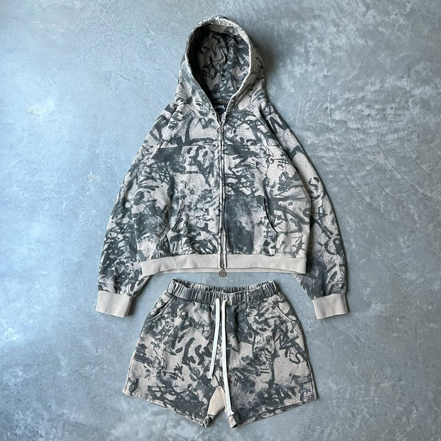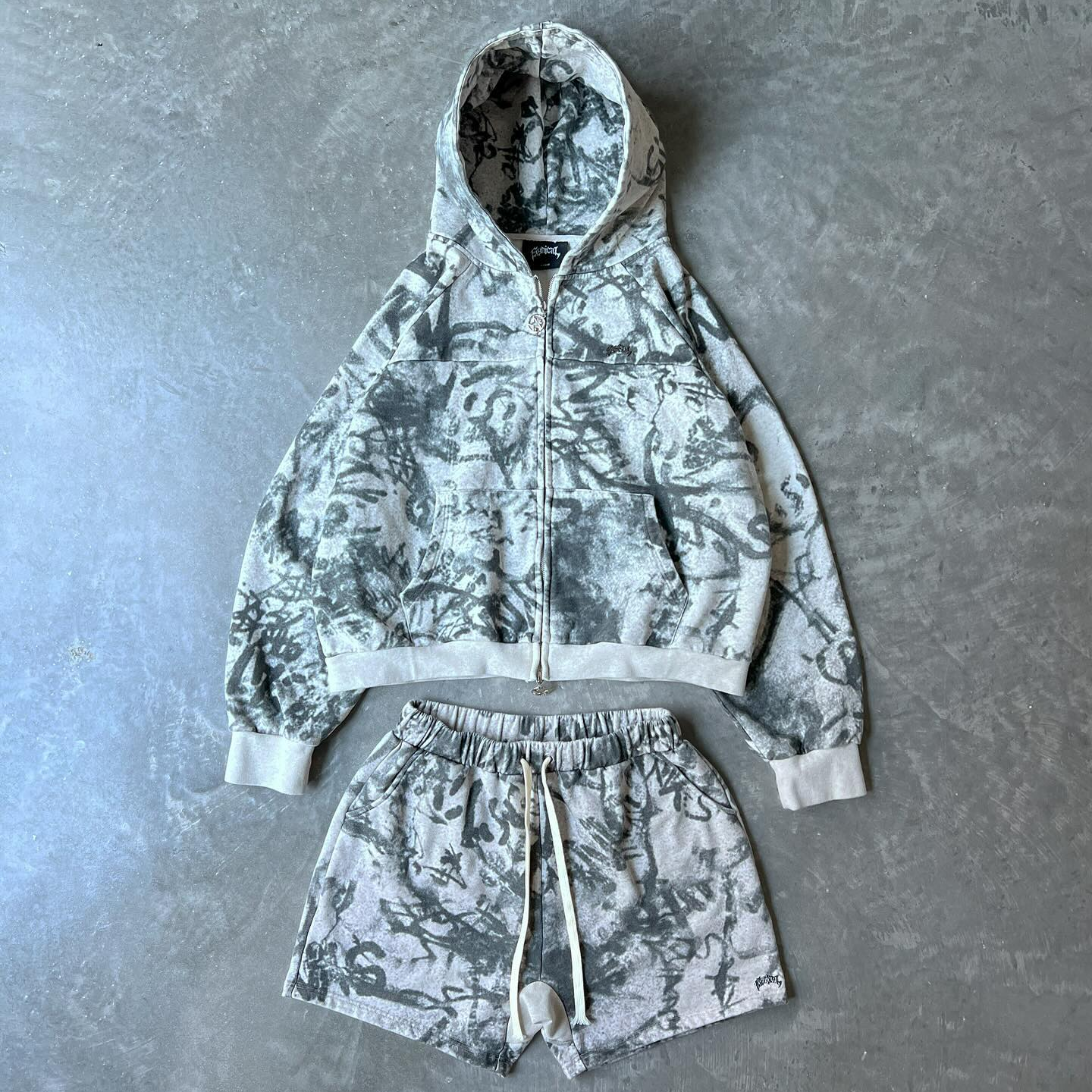 Retro Graffiti Zip-Up Hoodie Set
