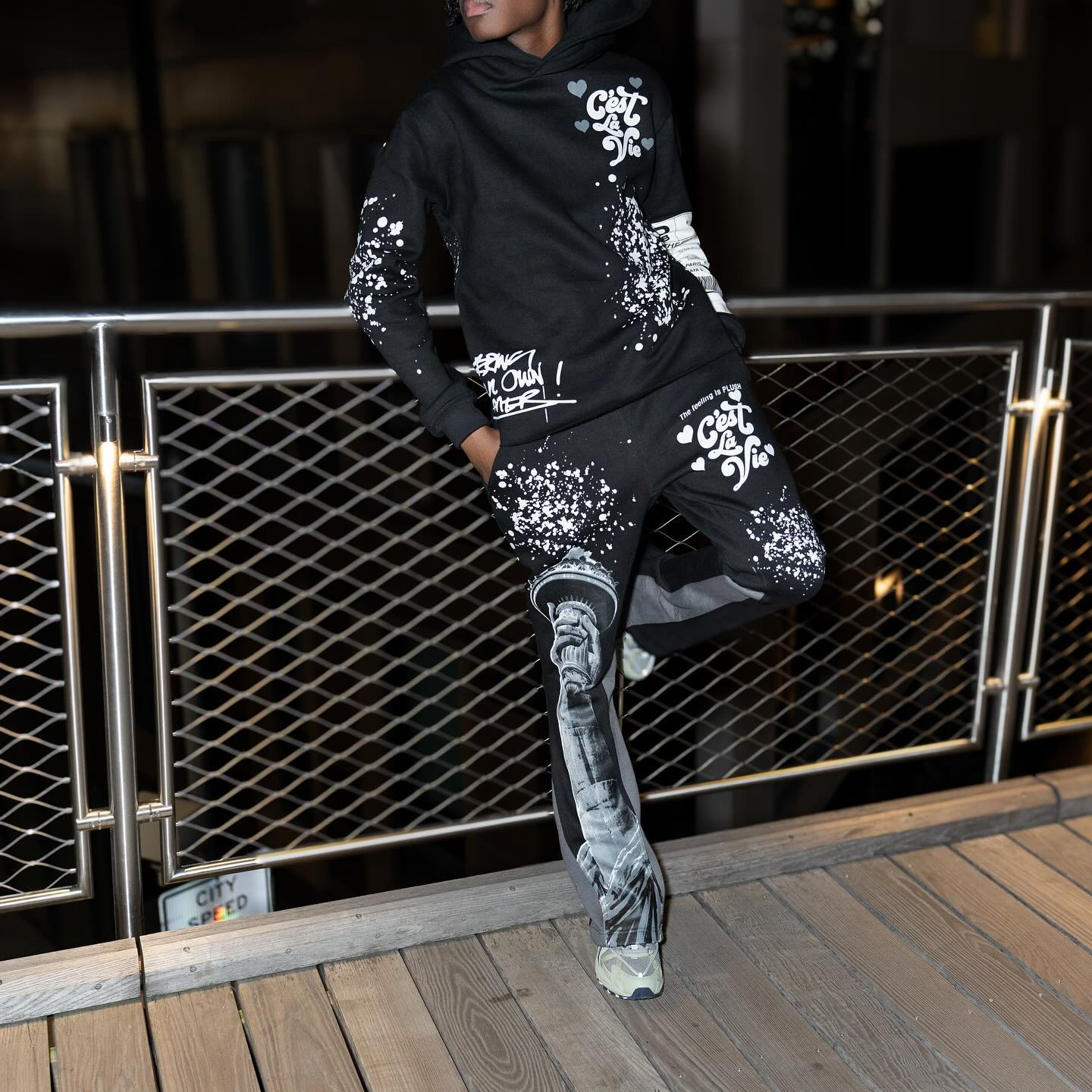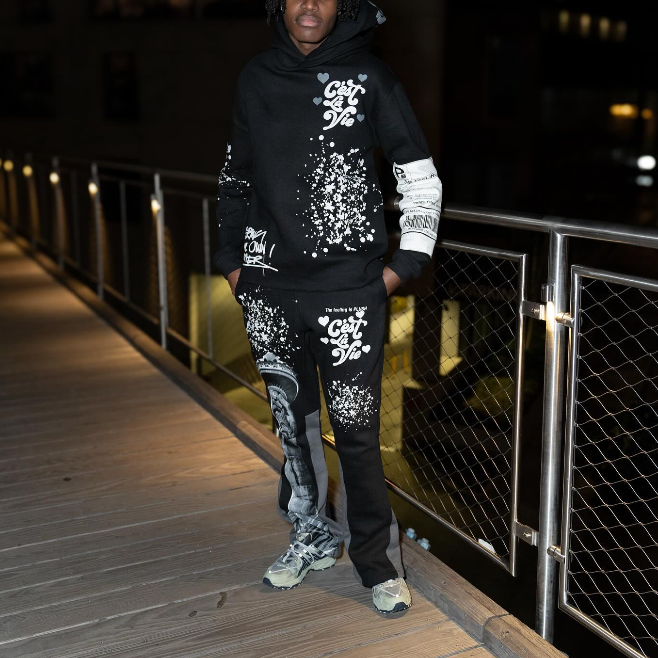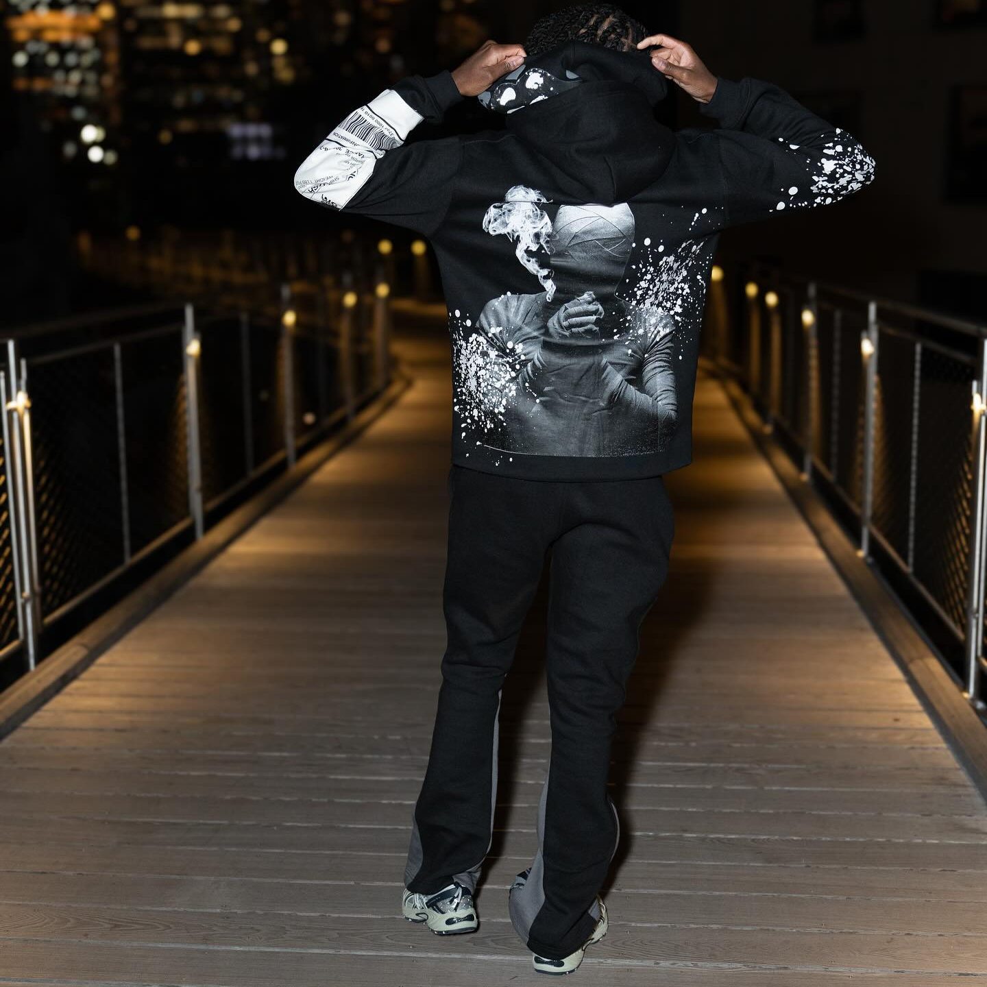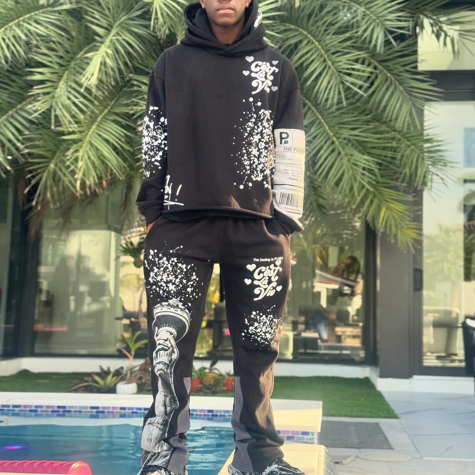 Retro letter splash print hoodie set