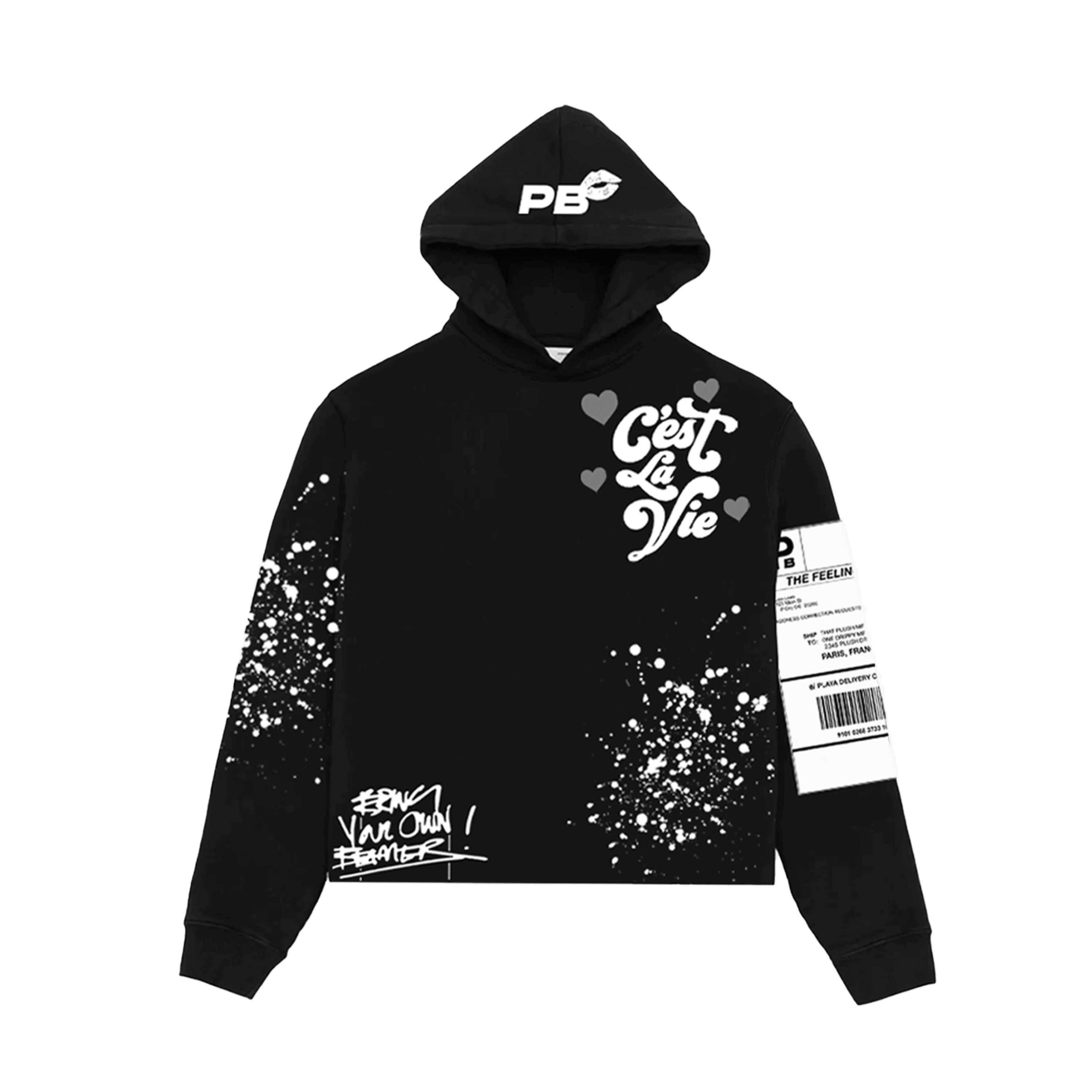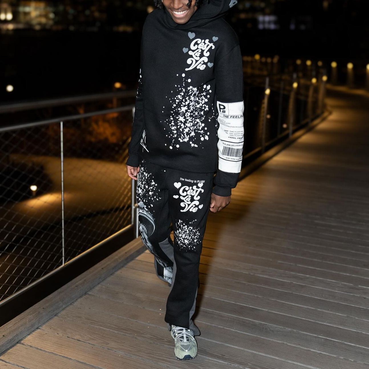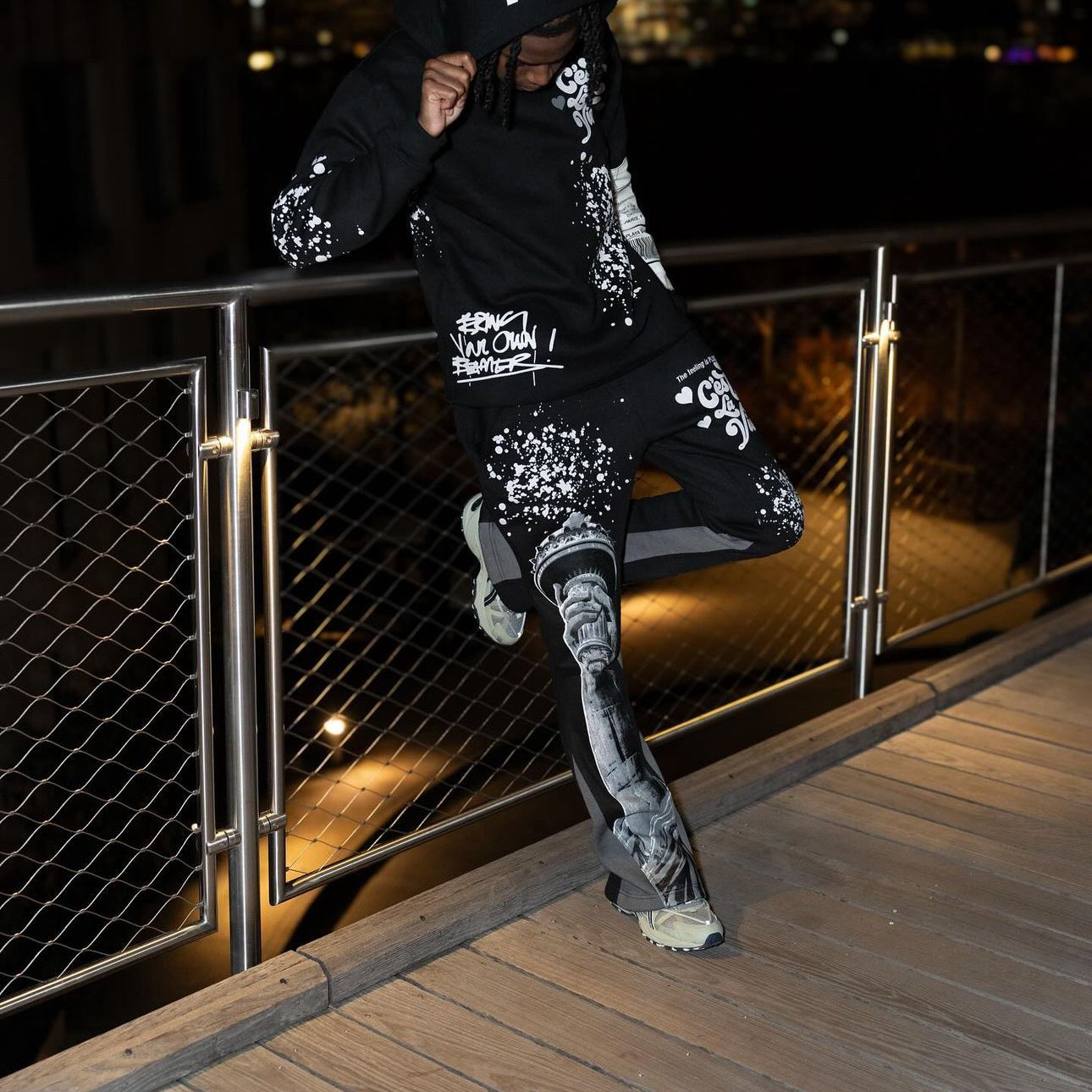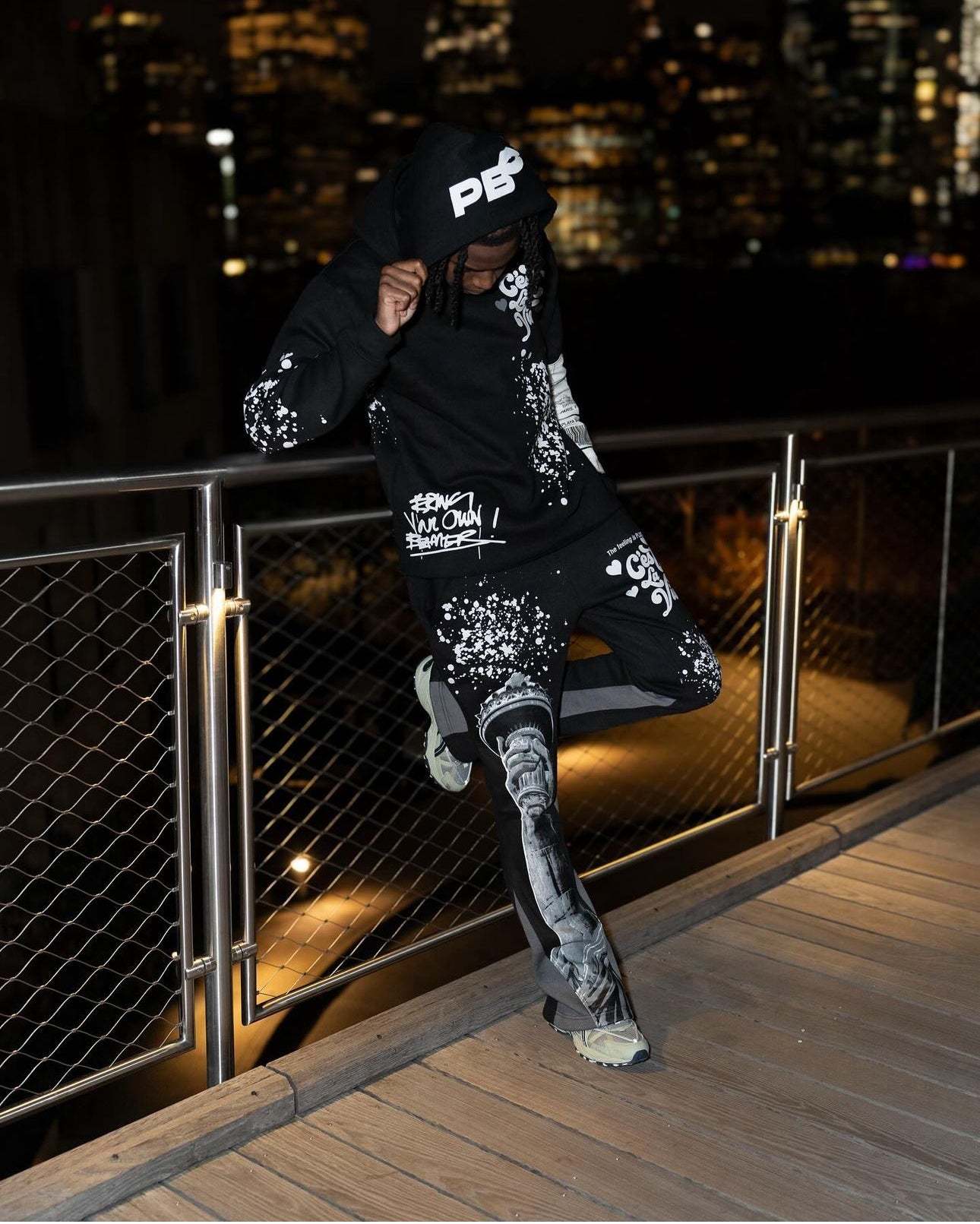 Retro letter splash print hoodie set