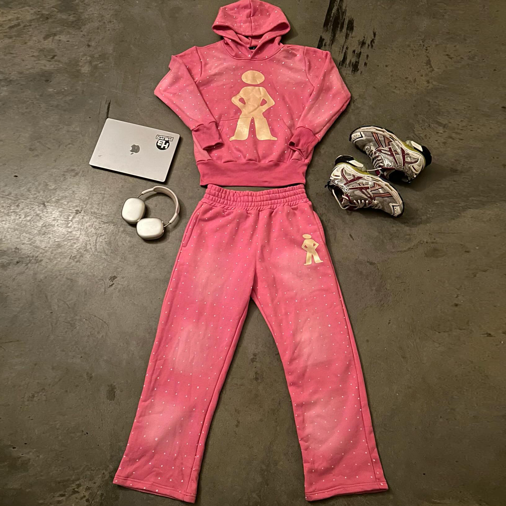 Retro Polka Dot Print Sweatshirt Set