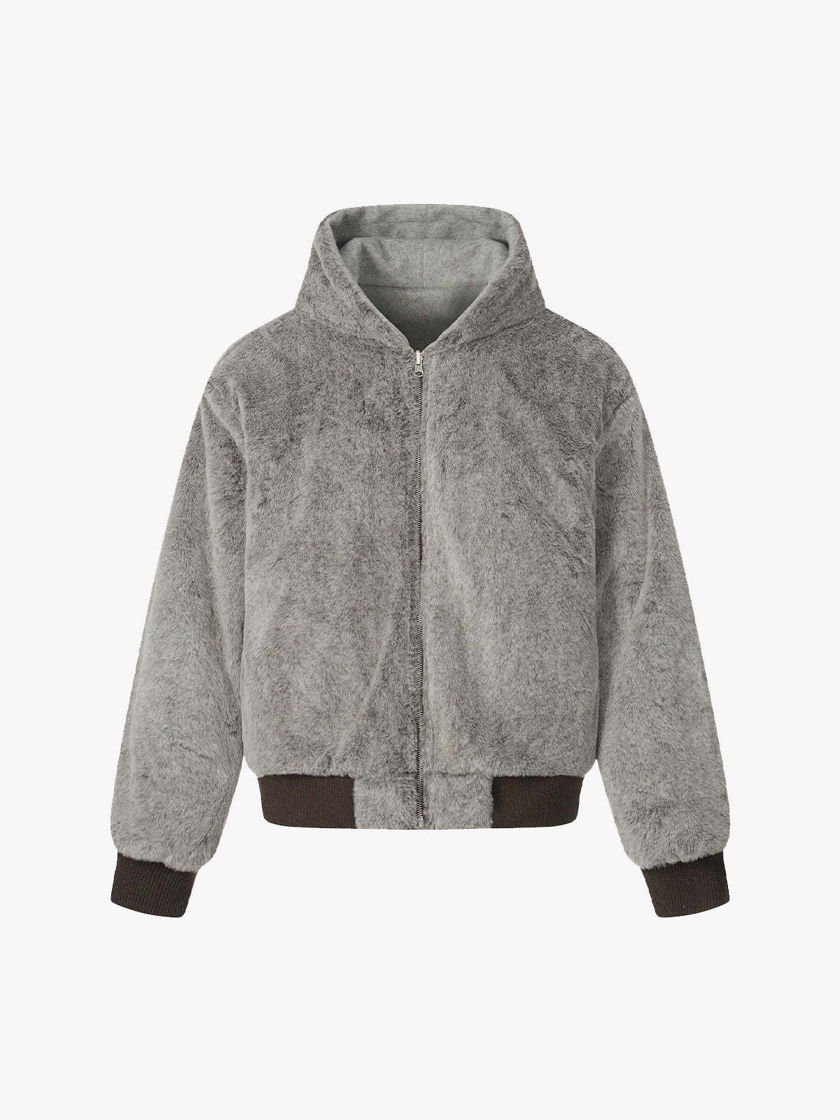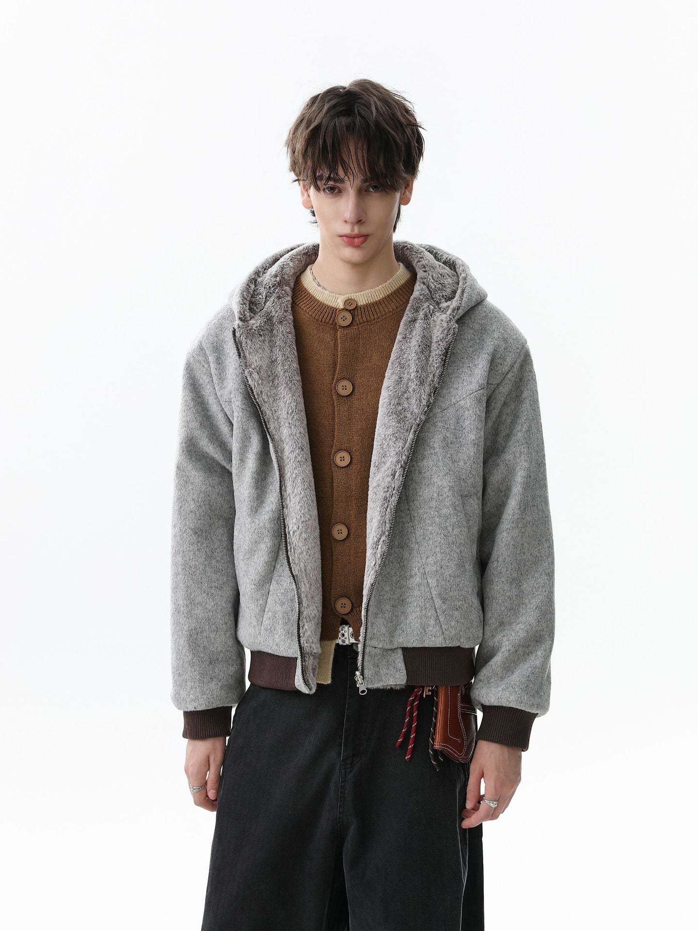 Retro Reversible Fleece Lined Zip-up Hooded Jacket