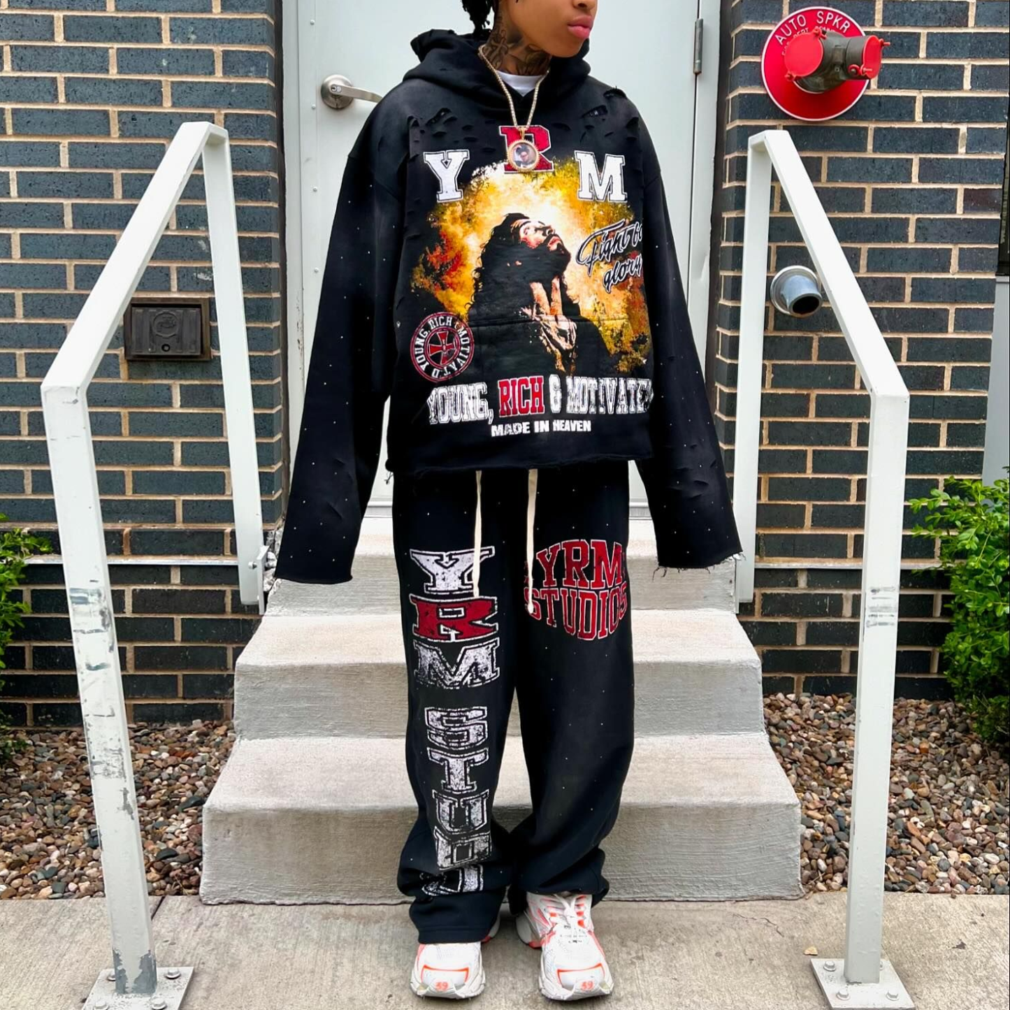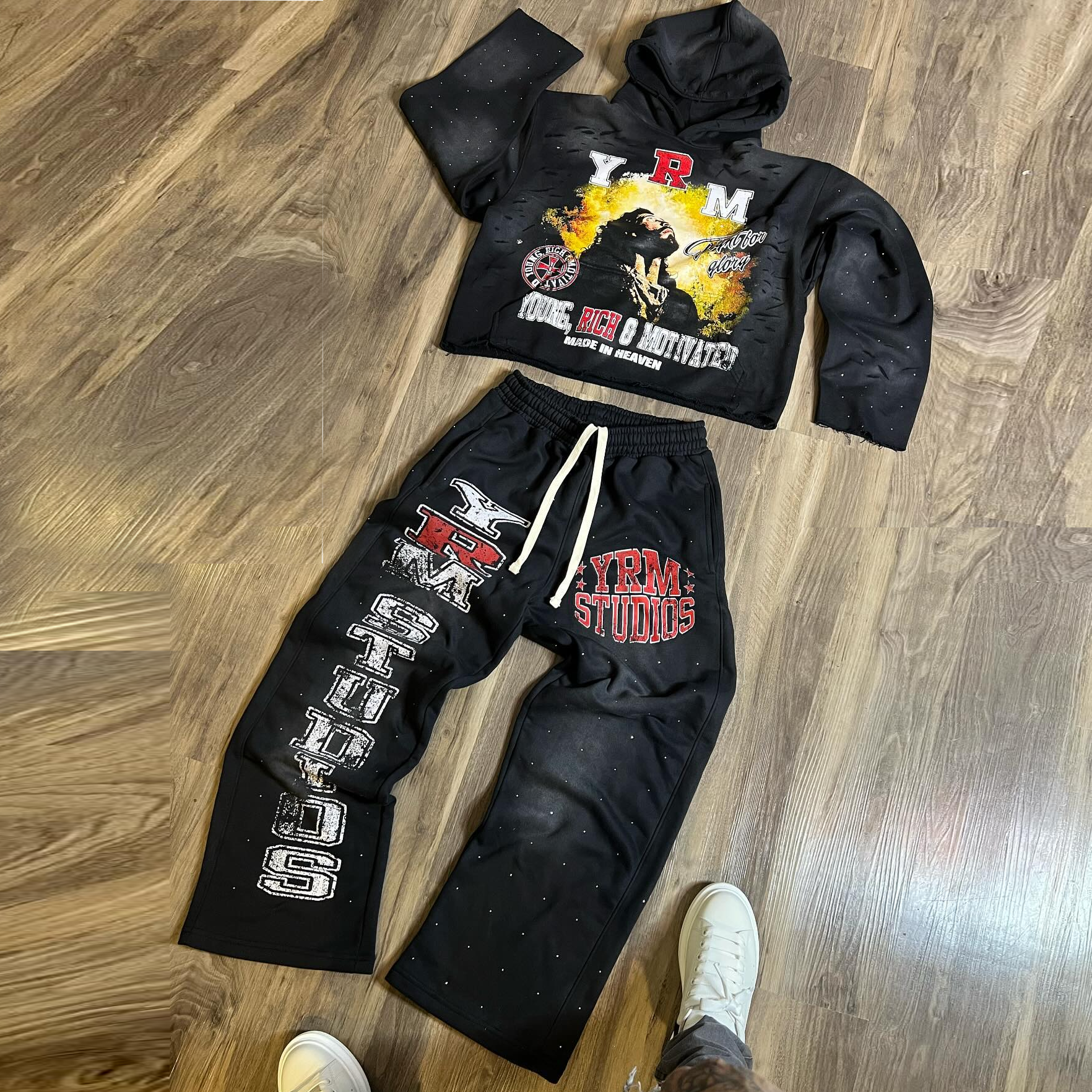 Retro solid color printed sweatshirt suit