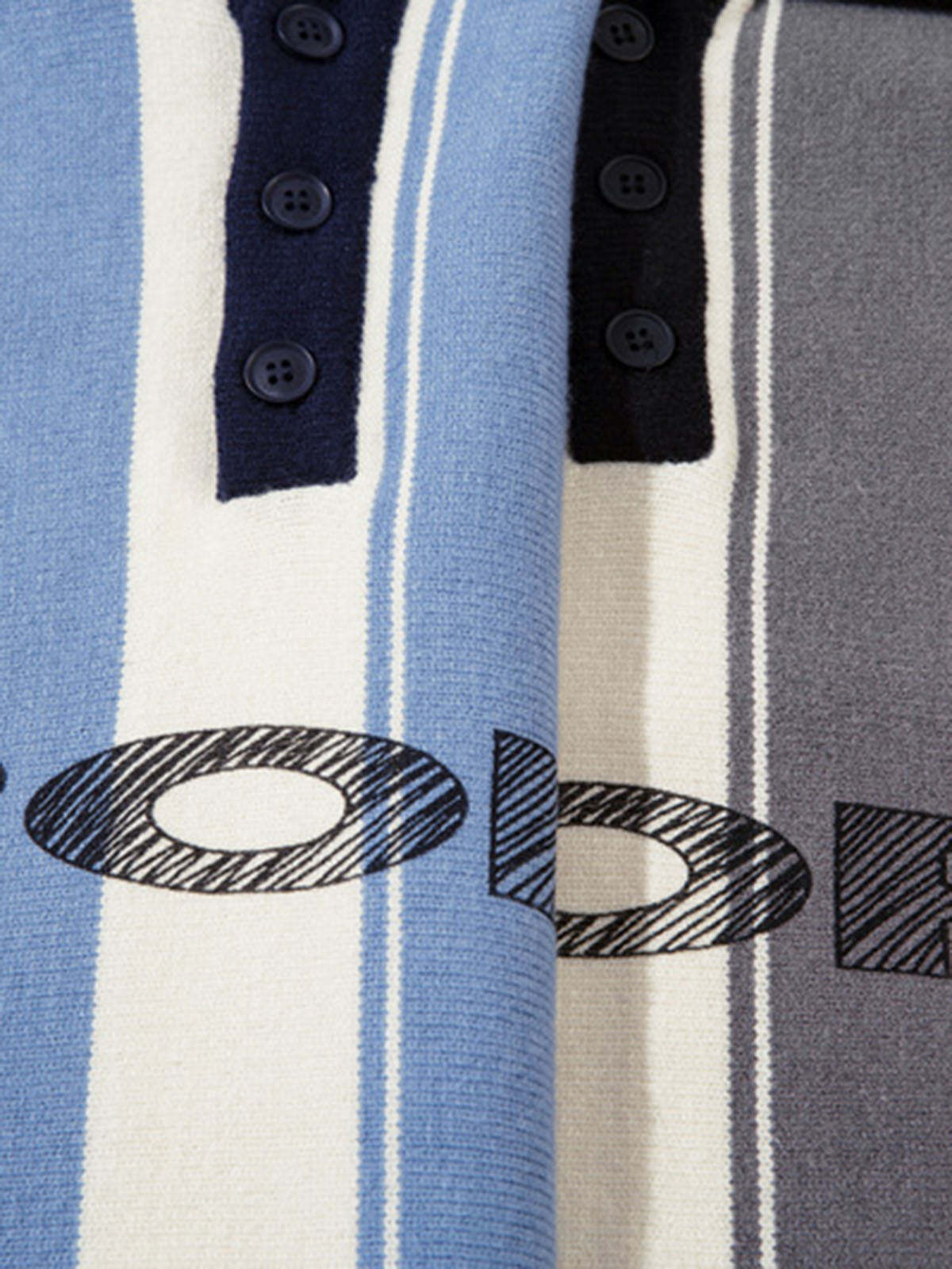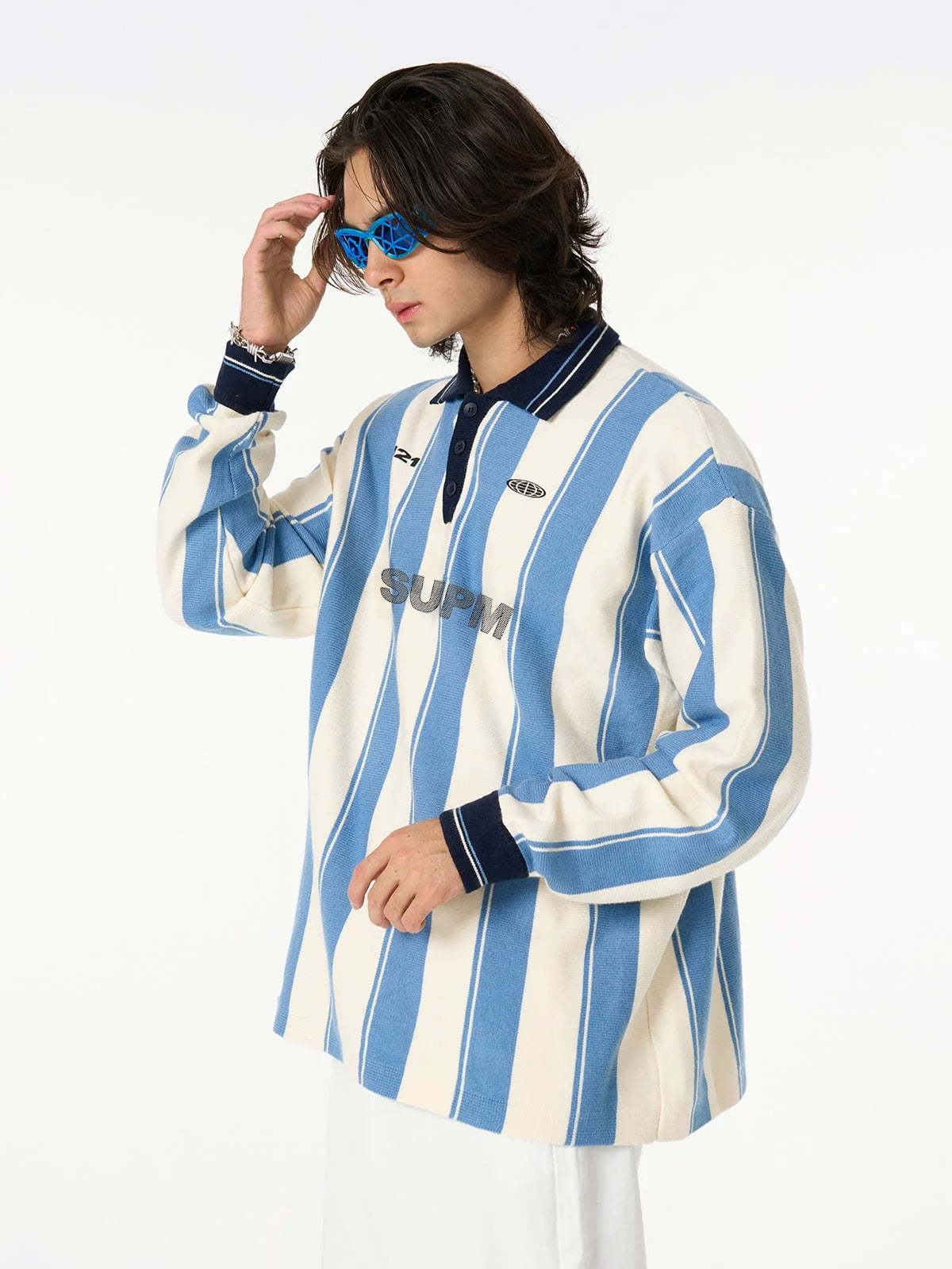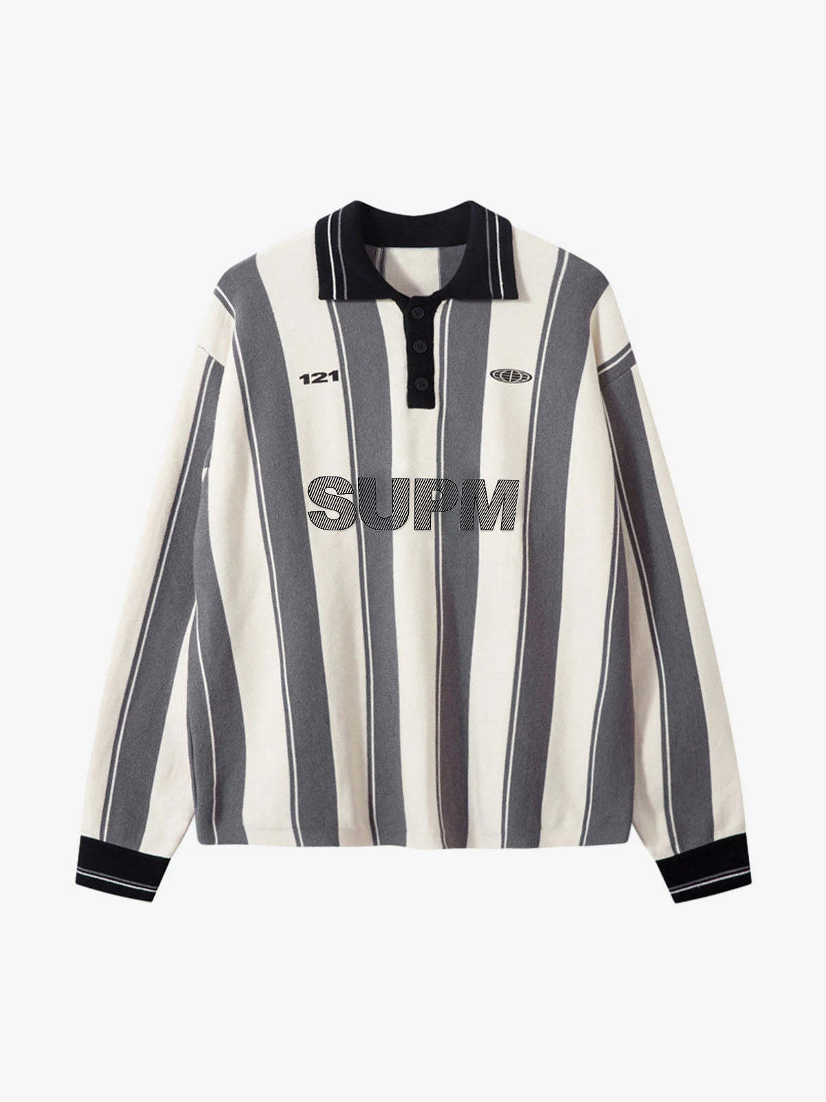 Retro Striped Polo Collar Sports Jersey Knit Sweater
